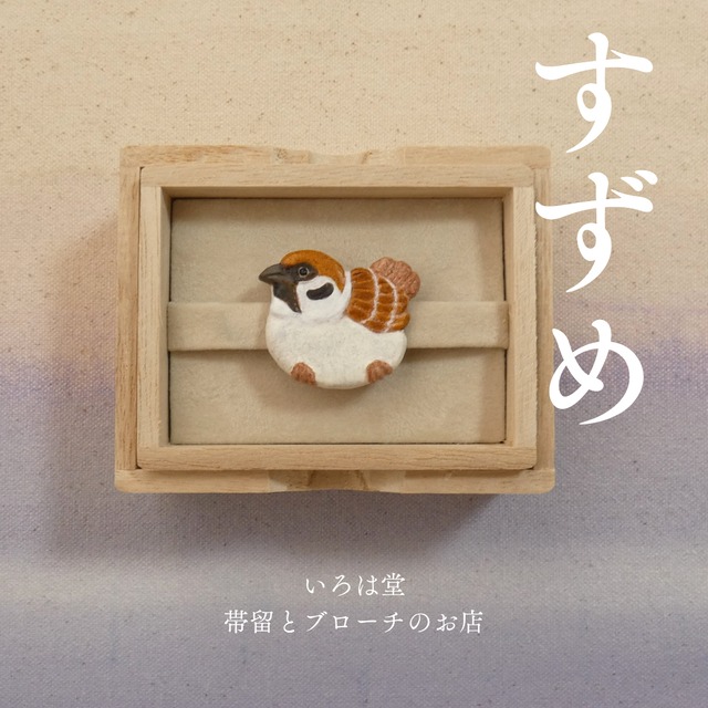 オーブン陶土で作った【スズメの帯留めとブローチ】です。 お色はベージュ・ブラック・ブラウンの三色展開です。 ※現品お渡しの商品です。 ※金具はオプションより「ブローチピン」と「帯留金具」からお選びいただけます。 ◆素材 オーブン陶土/陶器用絵具/コート剤/ブローチピンor帯留金具 ◆サイズ 本体:縦3cm×横3.5cm/ブローチ金具:幅2.5cm/帯留金具:直径2cm ◆ご購入前の注意事項◇ 注意事項は【ショップ情報】欄に記載しておりますので、ご購入の前に必ずご一読いただきますようお願い致します。↓ https://irohadou168.base.shop/about