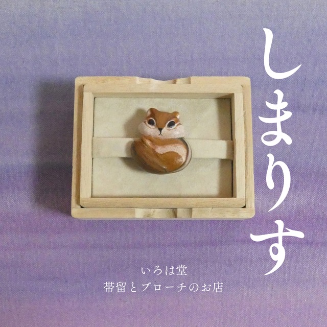 シマリス 帯留め ブローチ 帯留 りす リス しまりす いろは堂 和装小物 ハンドメイド