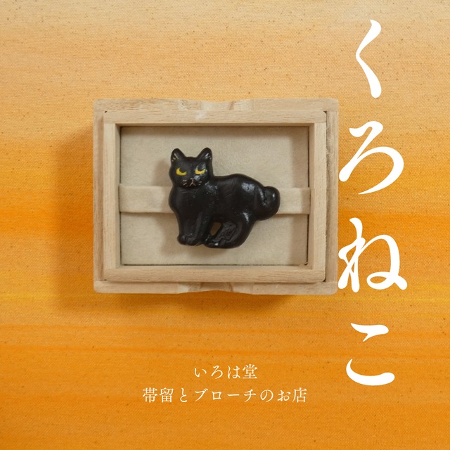 黒猫 帯留め ブローチ 帯留 くろねこ クロネコ 猫 ネコ ねこ 黒ネコ 黒ねこ ハンドメイド 和装小物 【いろは堂】 秋 ハロウィン