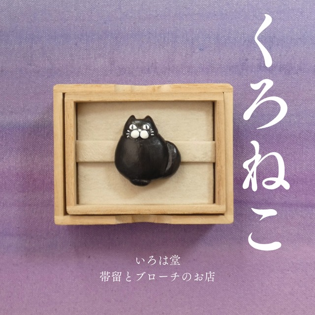 猫 帯留め 帯留 ネコ ねこ 黒猫 くろねこ いろは堂 和装小物 ハンドメイド