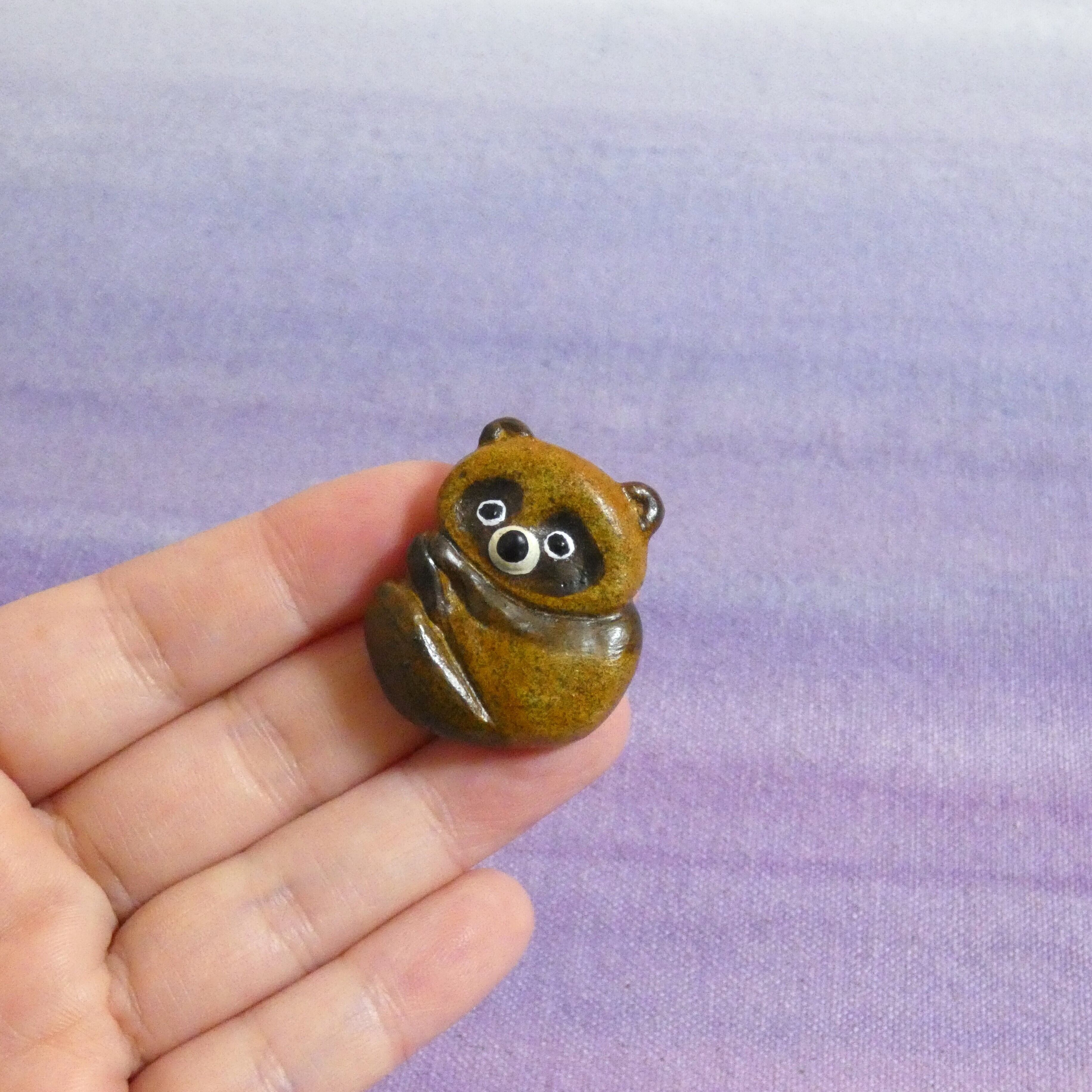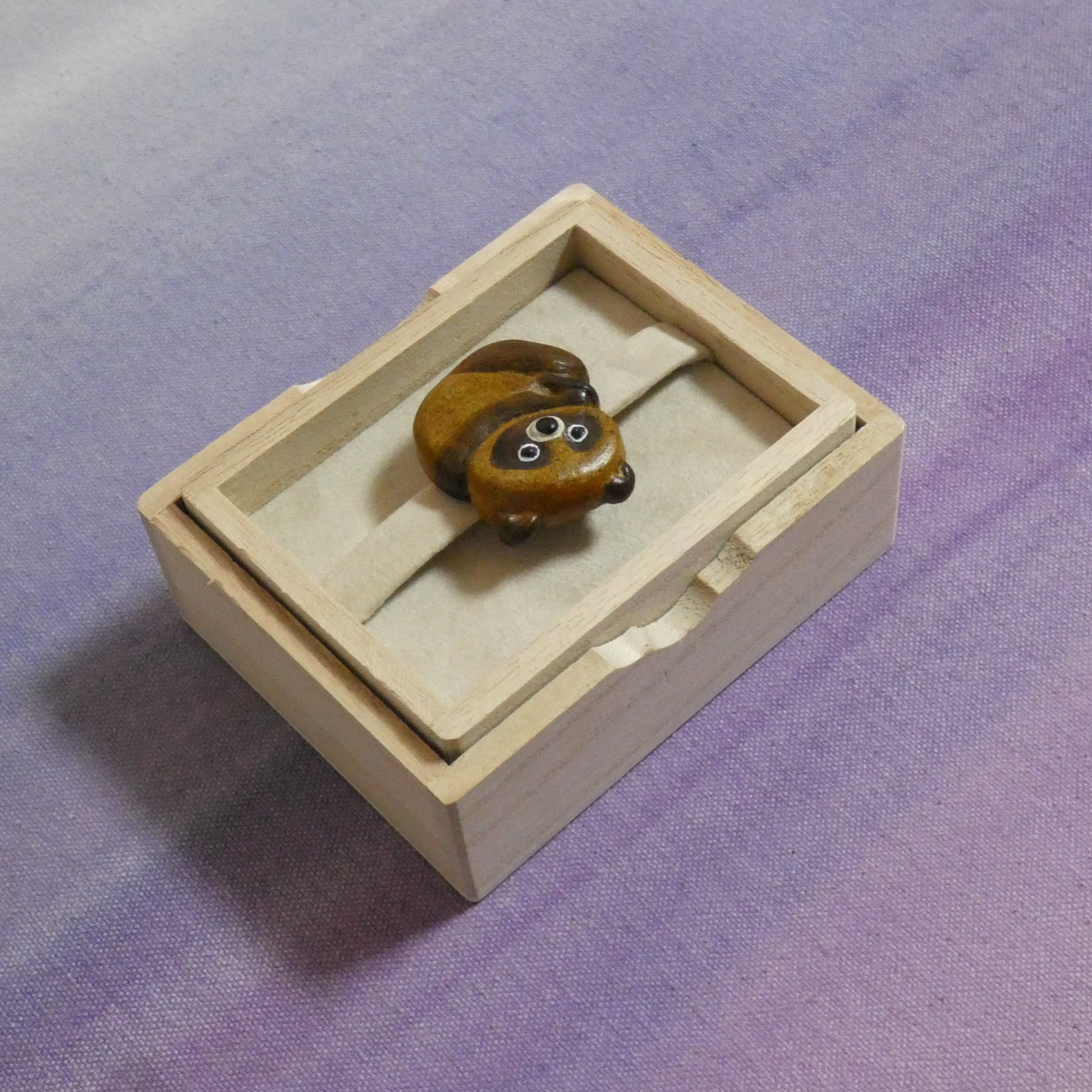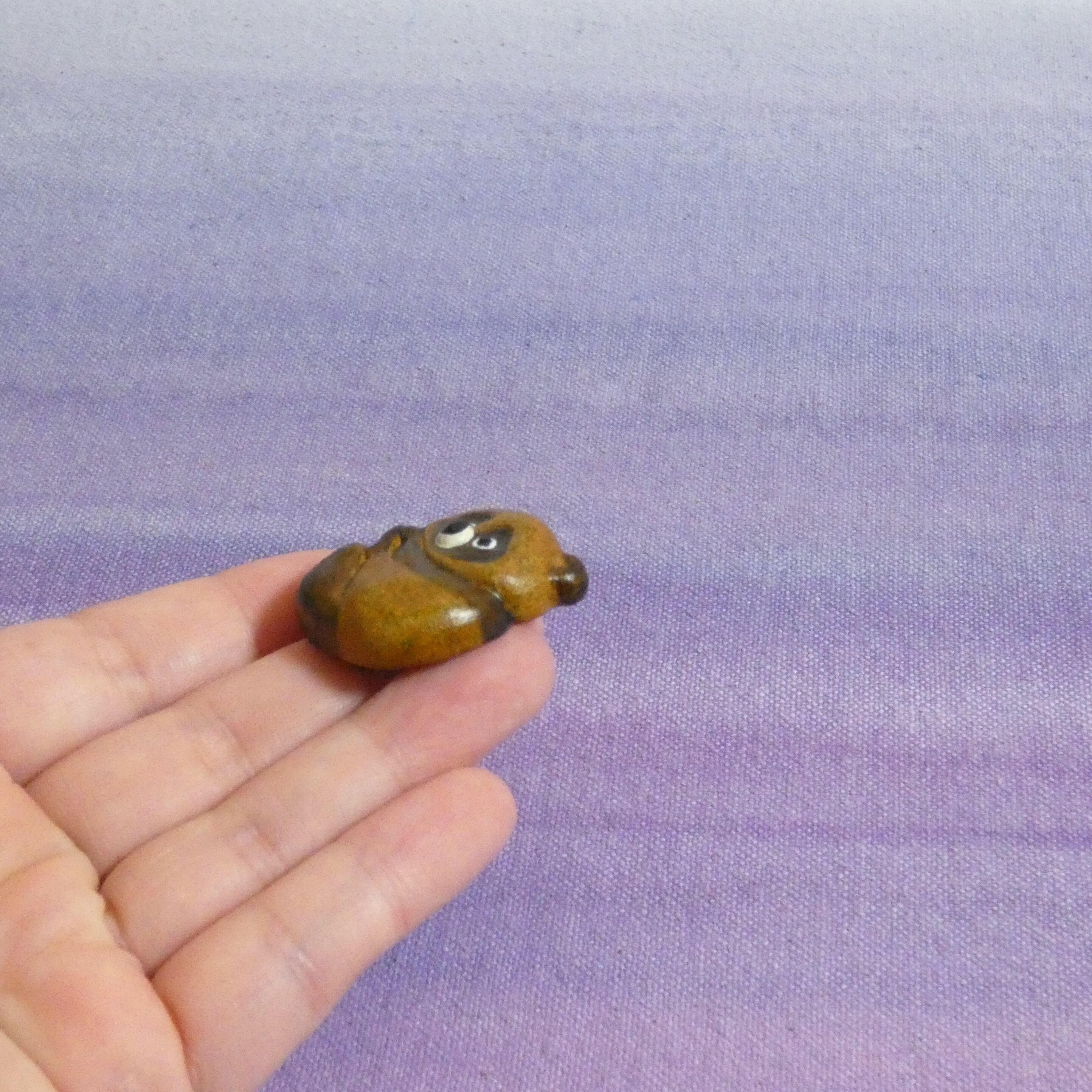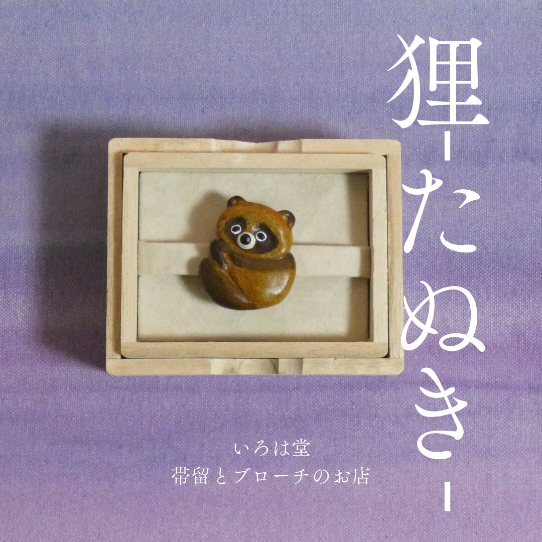 オーブン陶土で作った【タヌキの帯留めとブローチ】です。