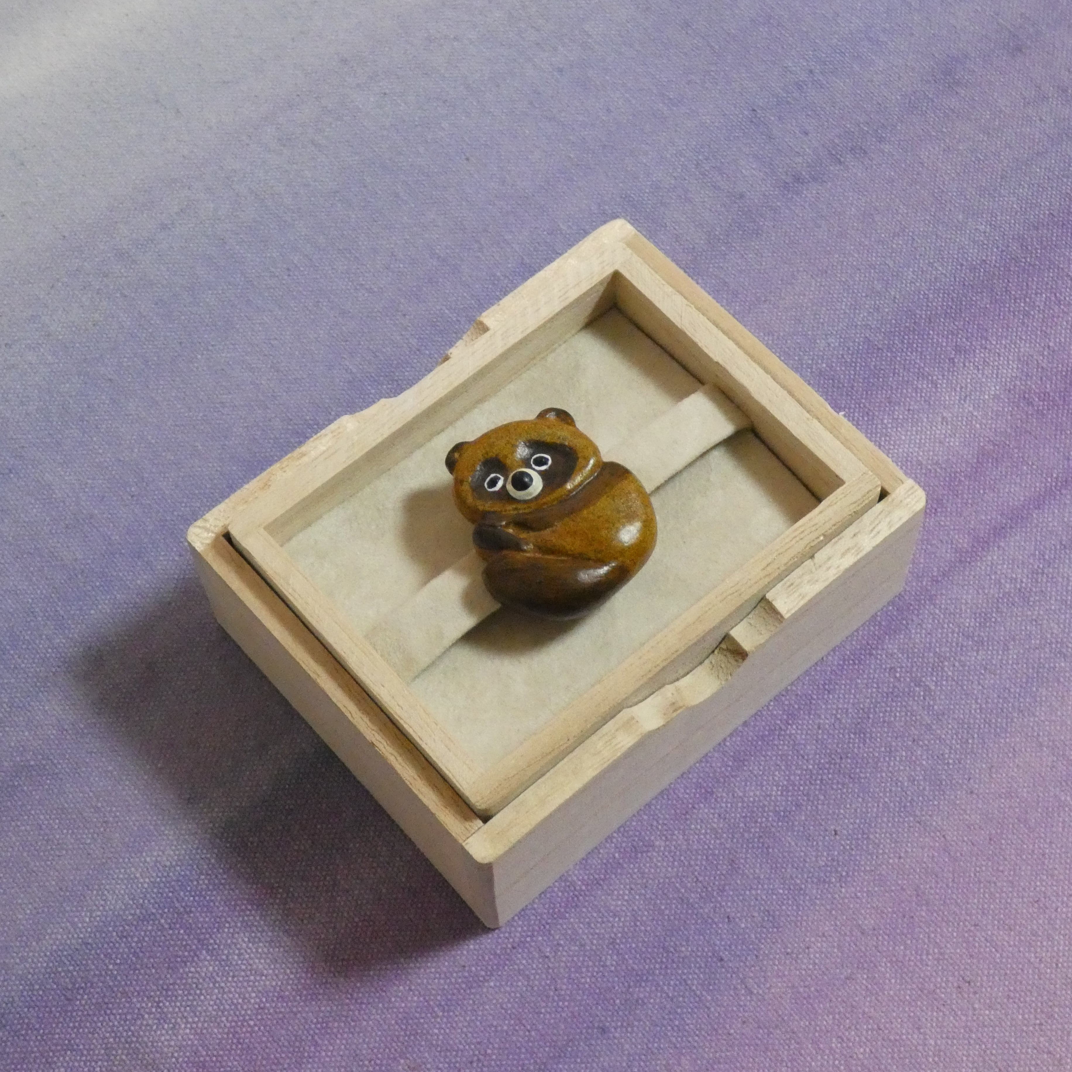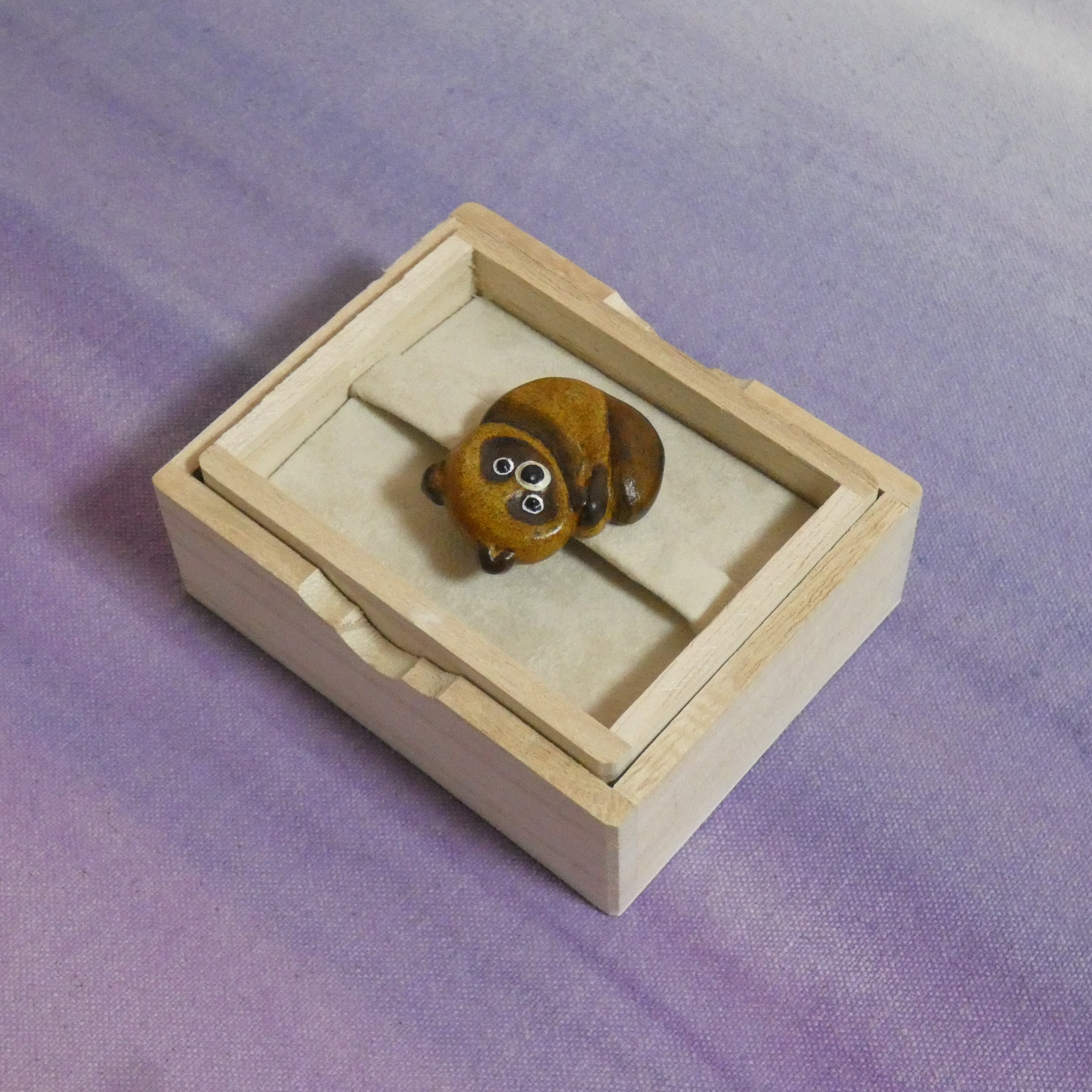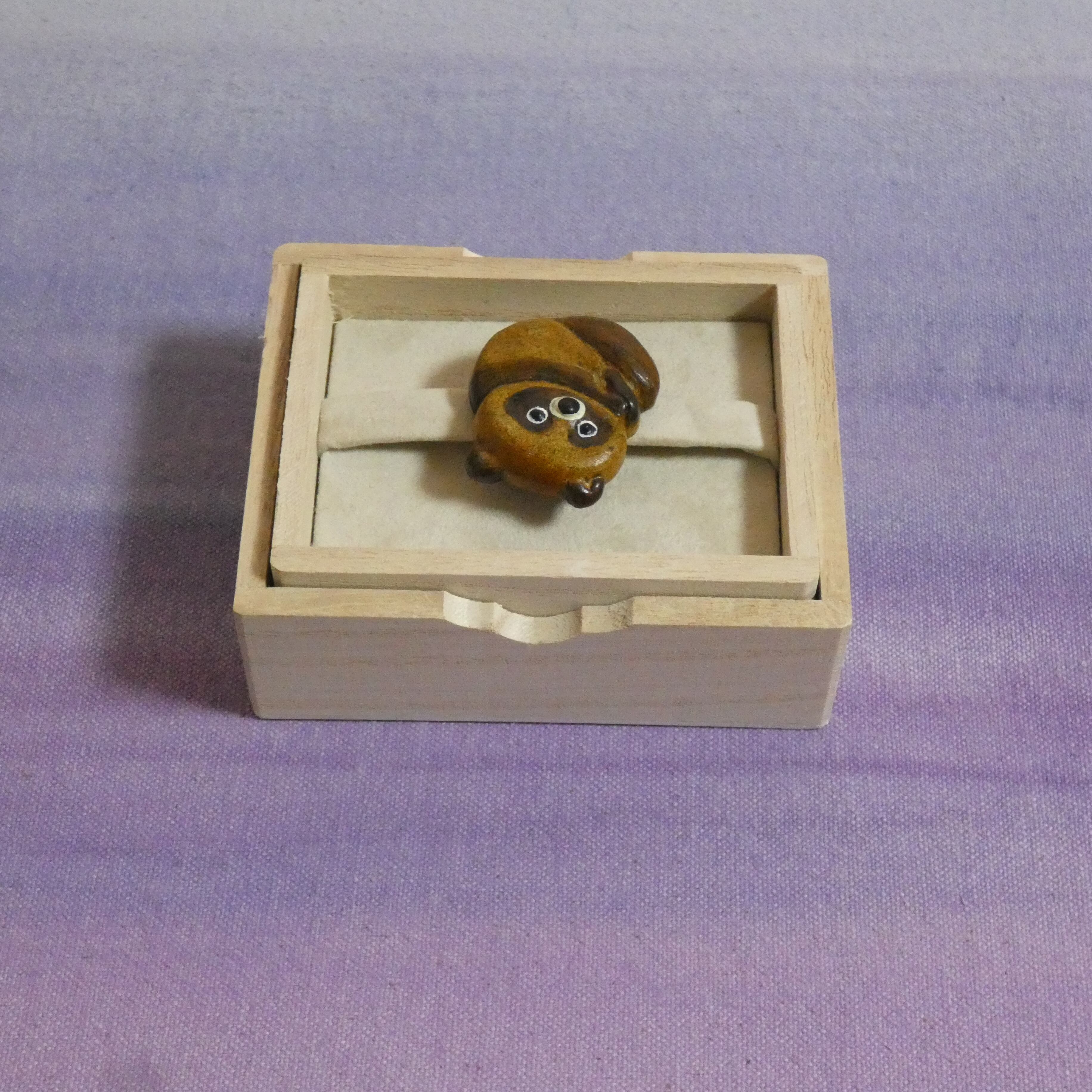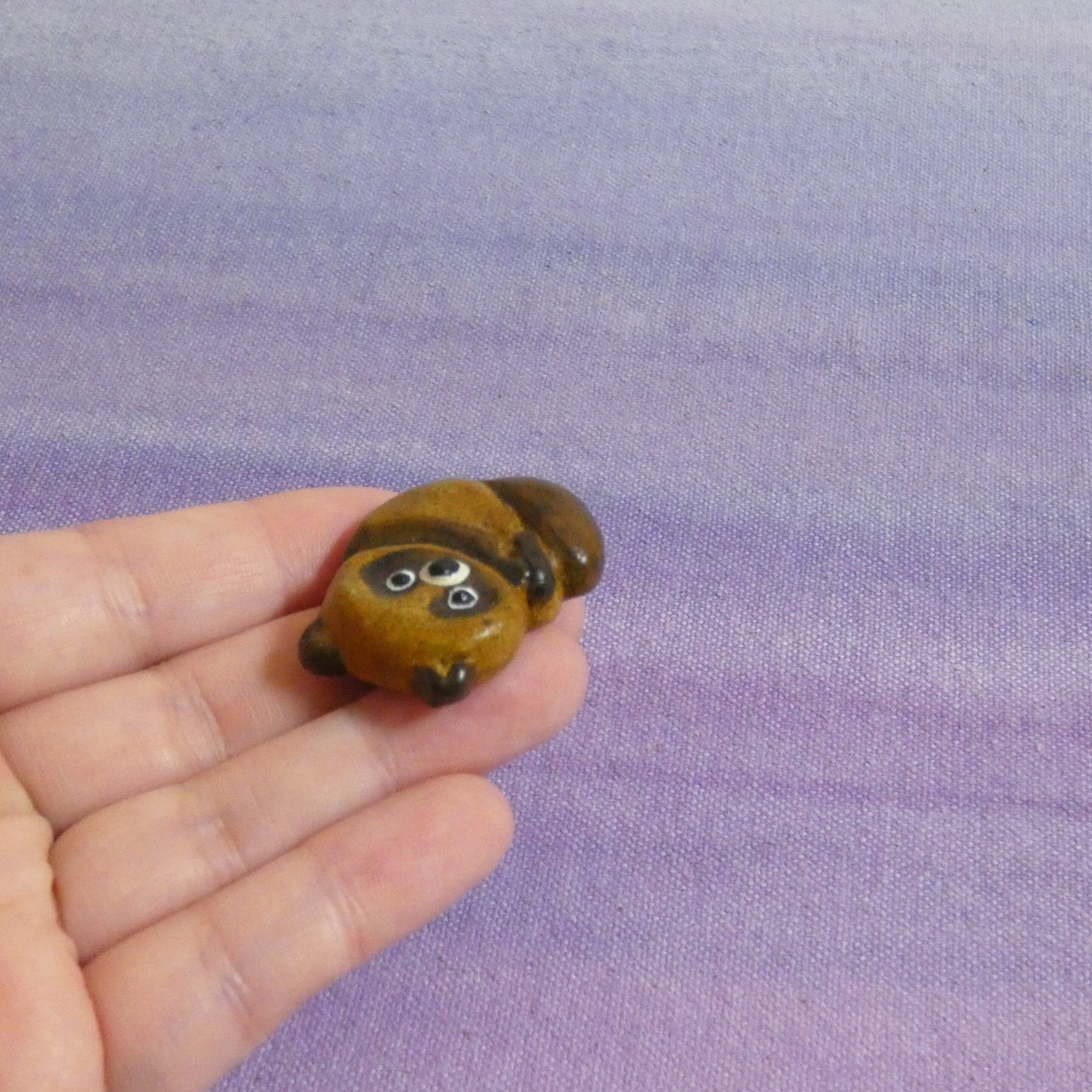オーブン陶土で作った【タヌキの帯留めとブローチ】です。