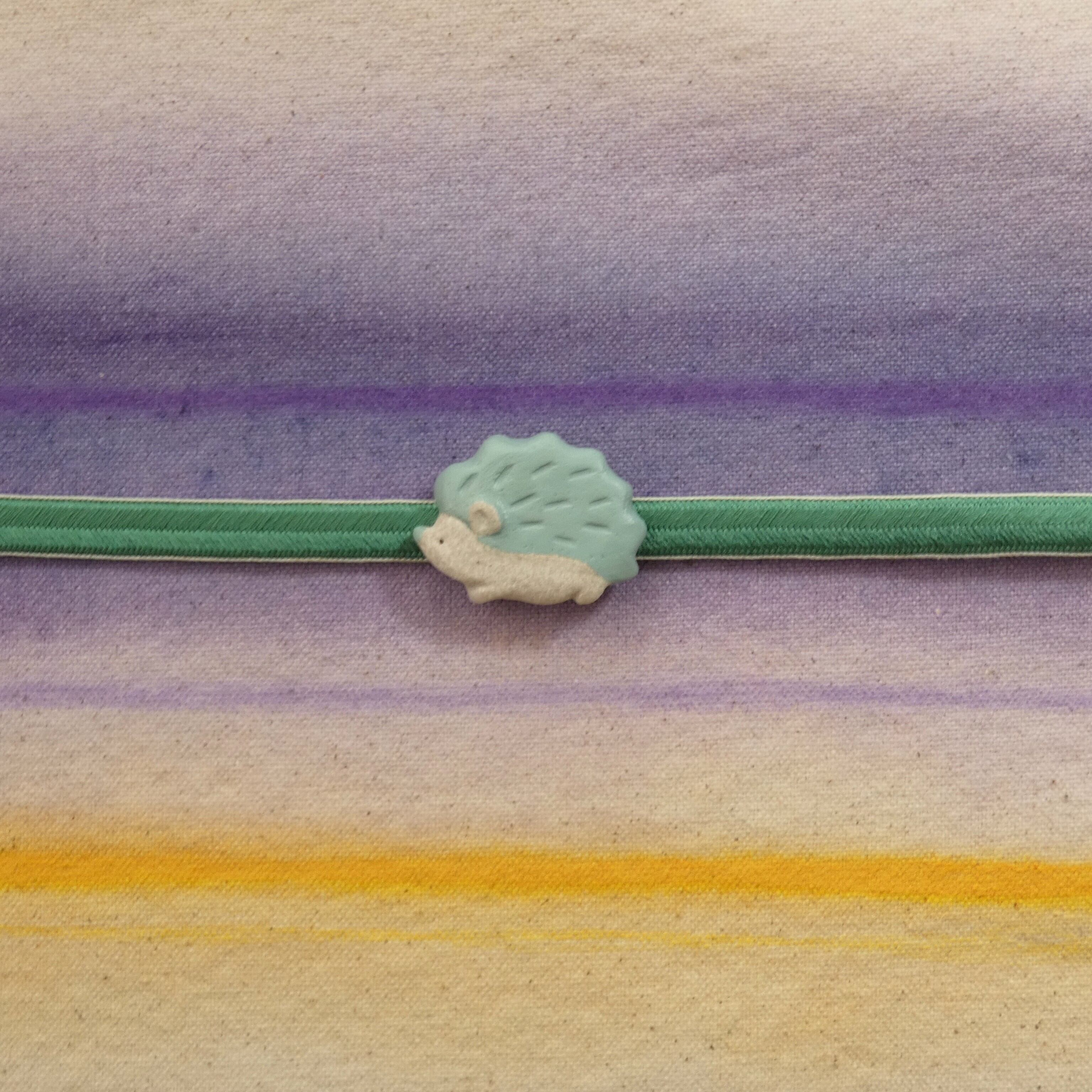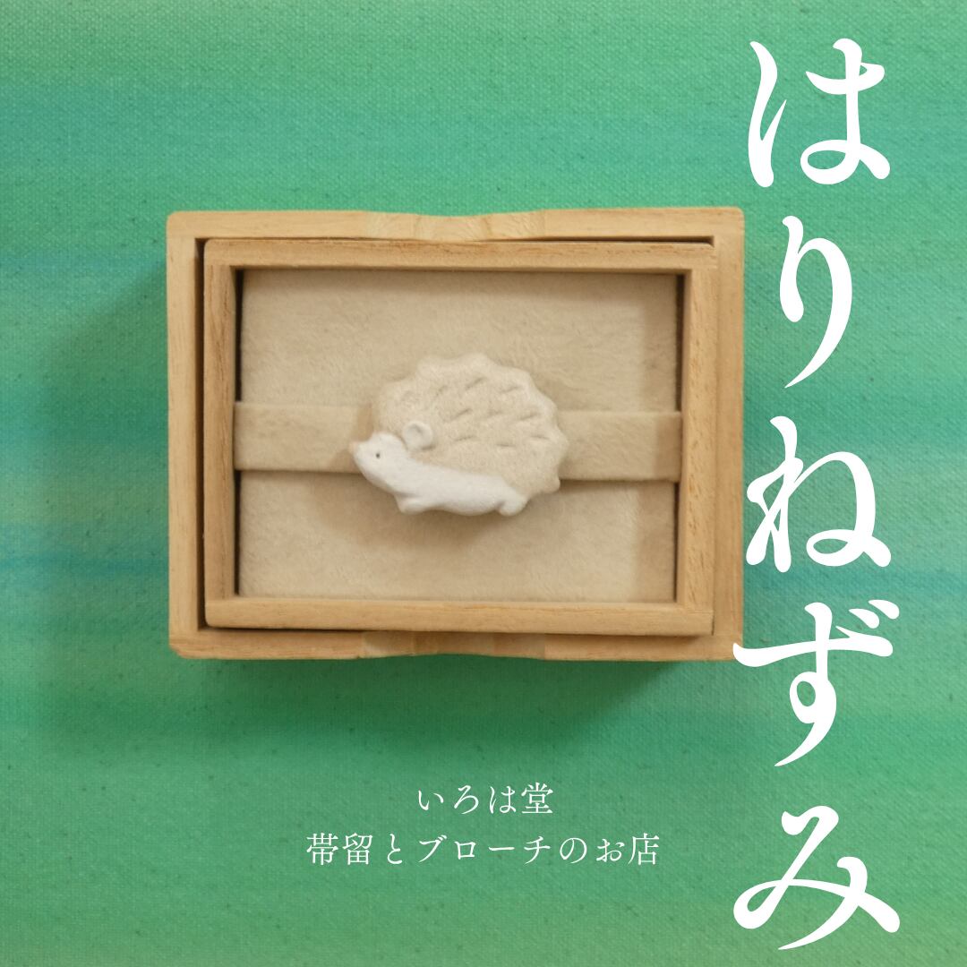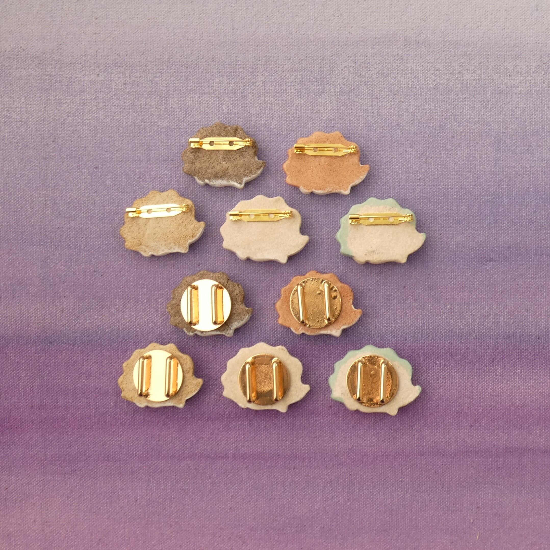オーブン陶土で作った【ハリネズミの帯留めとブローチ】です。
