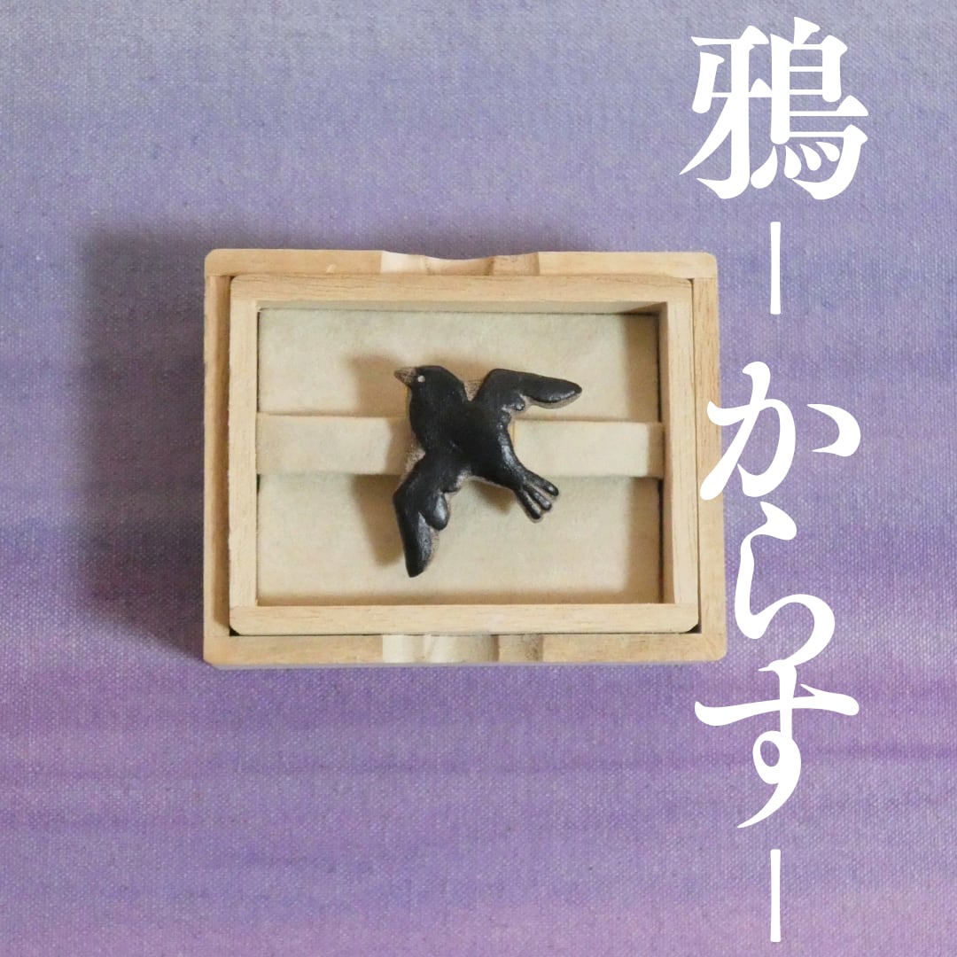 カラス 帯留め ブローチ からす 烏 黒い鳥 帯留 とり トリ 鳥 ハンドメイド 和装小物 【いろは堂】