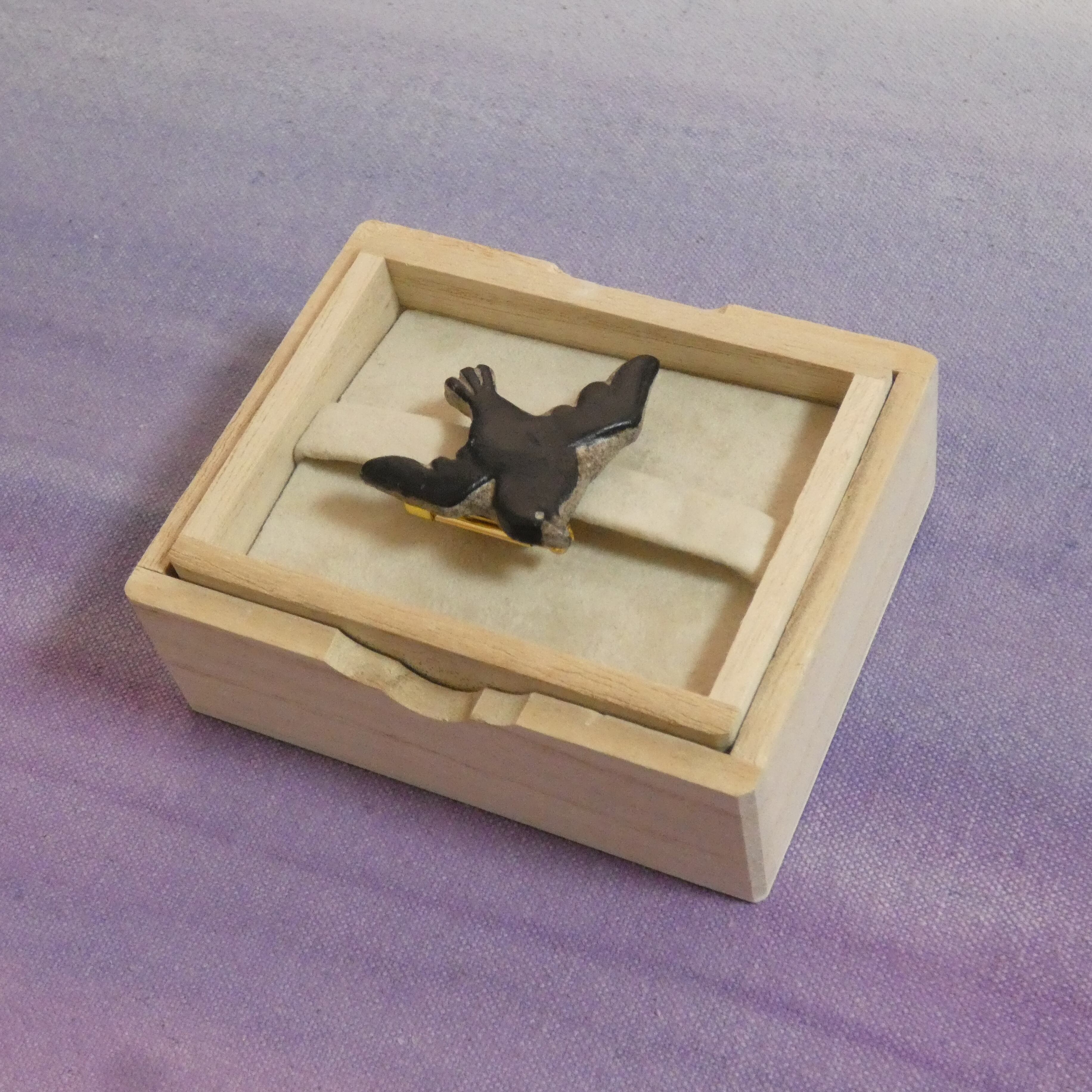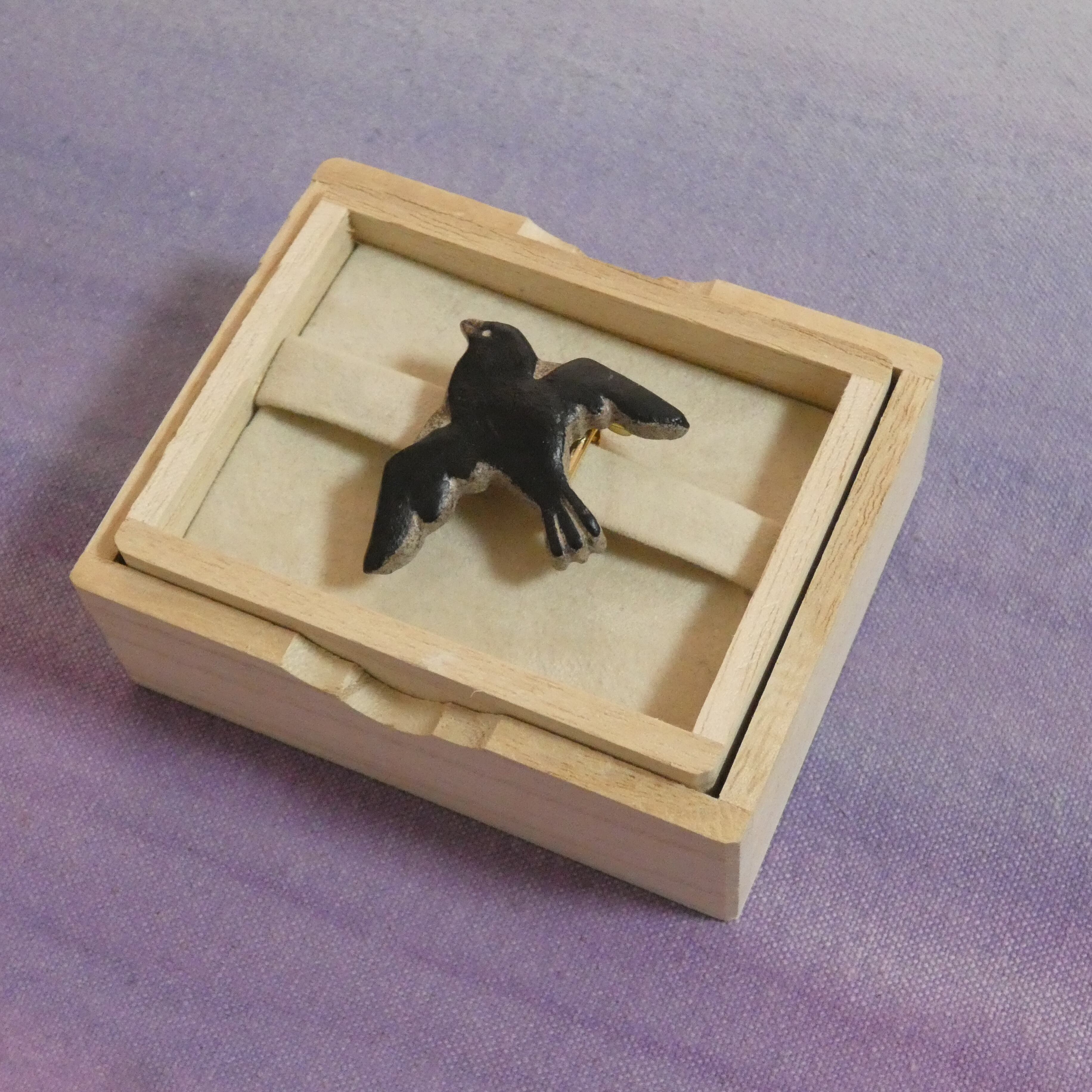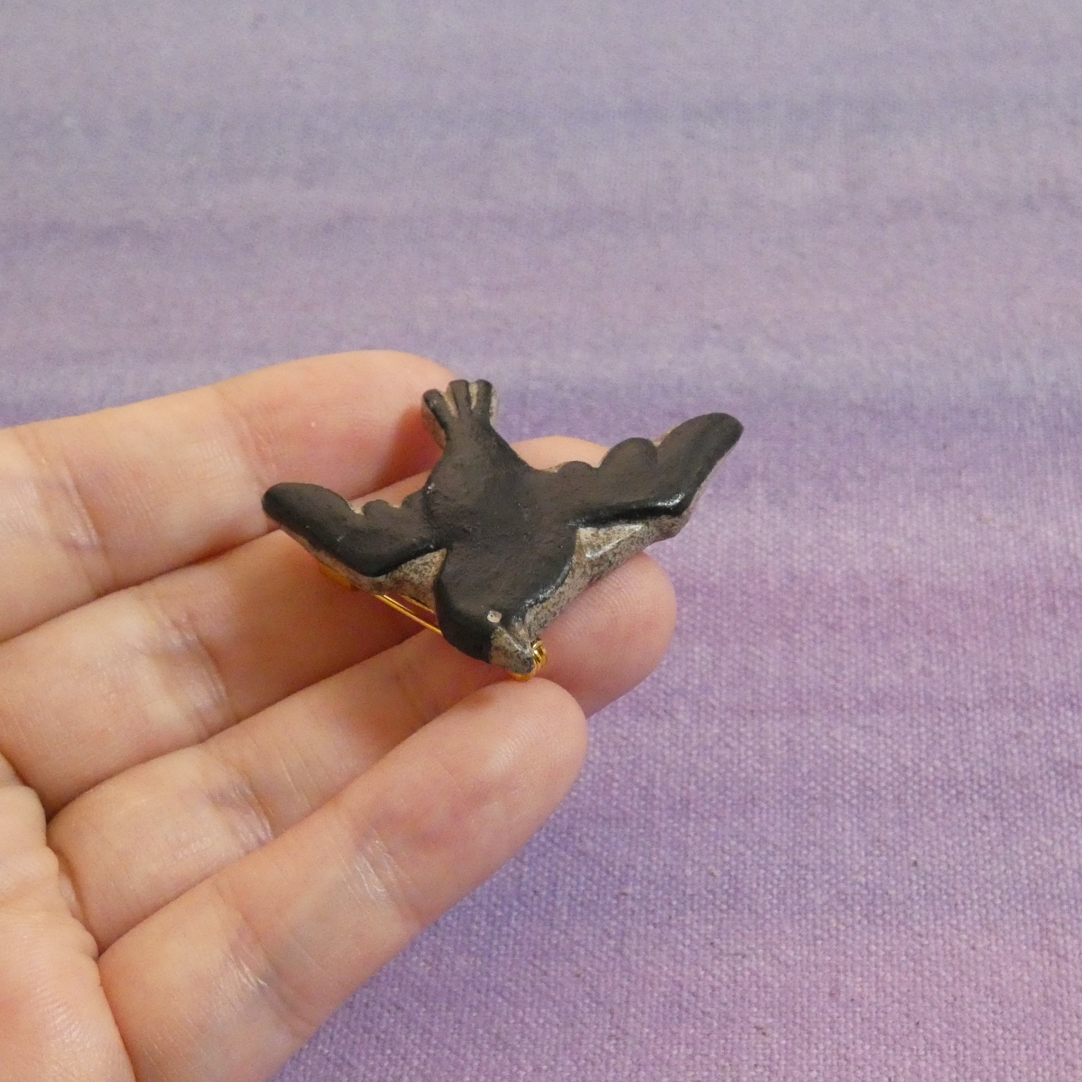オーブン陶土で作った【カラスの帯留めとブローチ】です。
