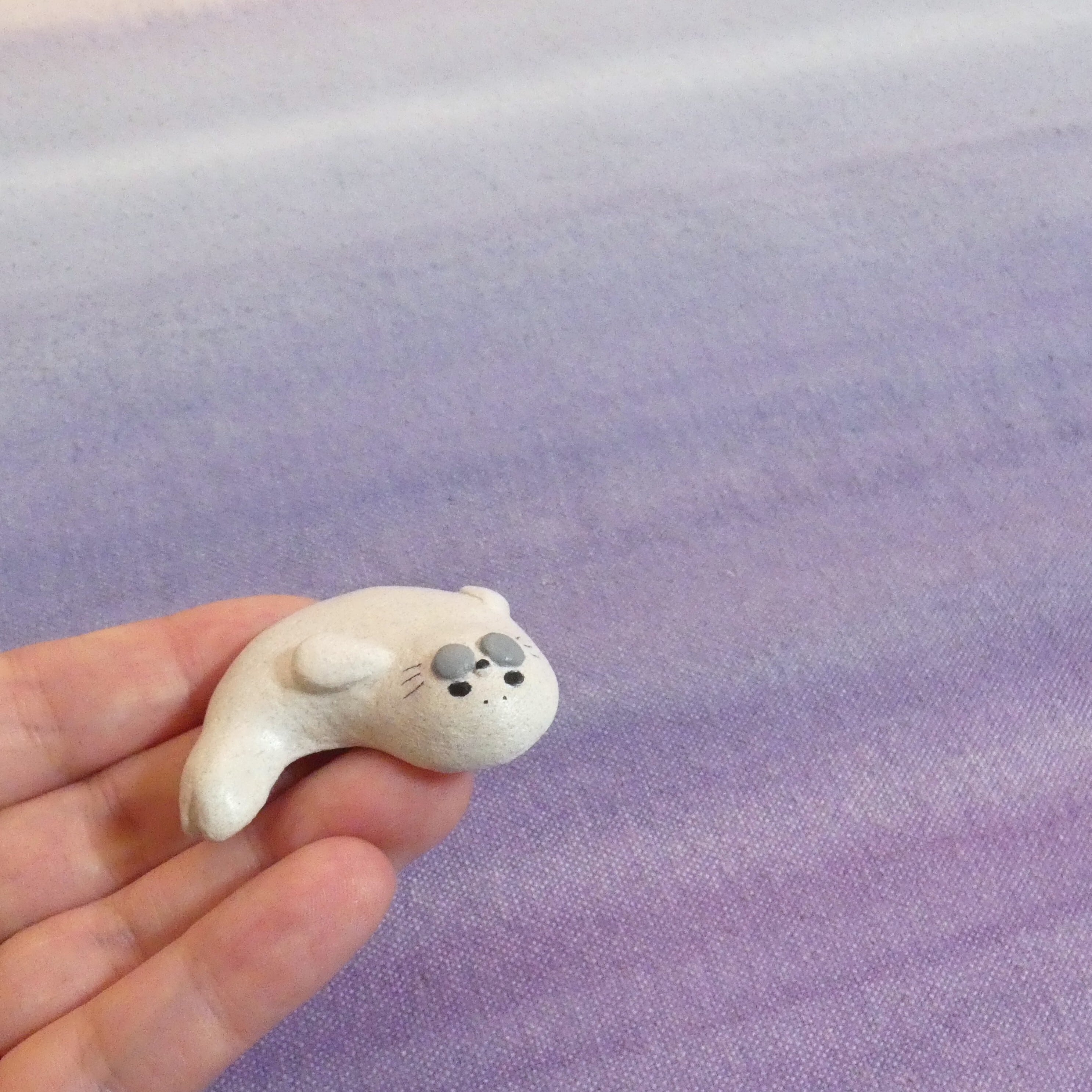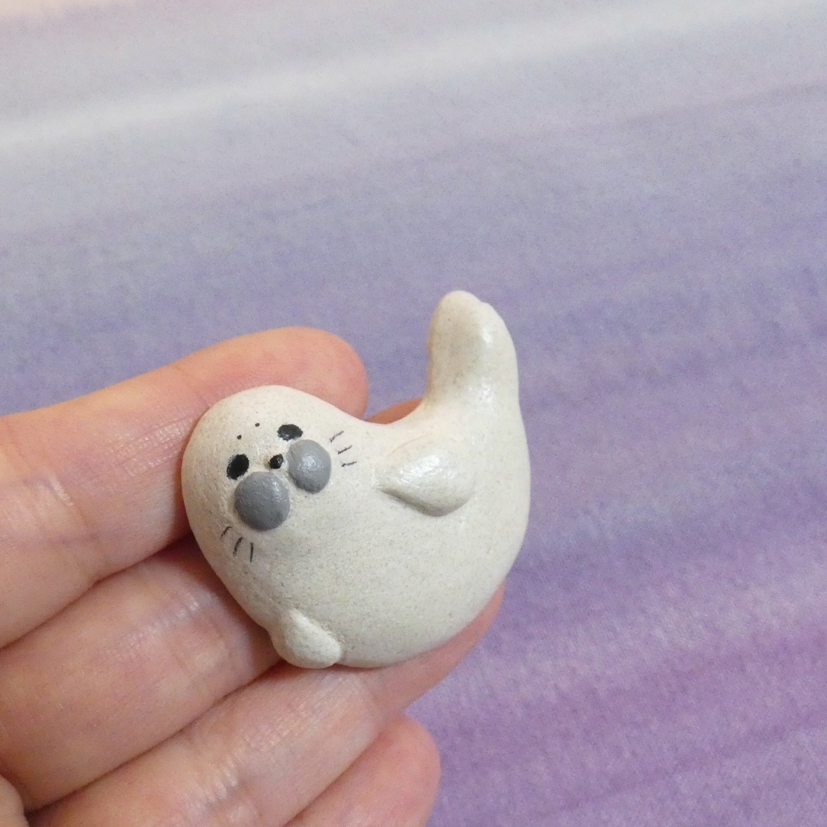 オーブン陶土で作った【赤ちゃんアザラシの帯留め】です。