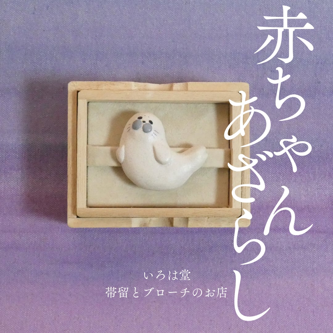 赤ちゃんアザラシ 帯留め 陶土 帯留 いろは堂 あざらし 赤ちゃん アザラシ