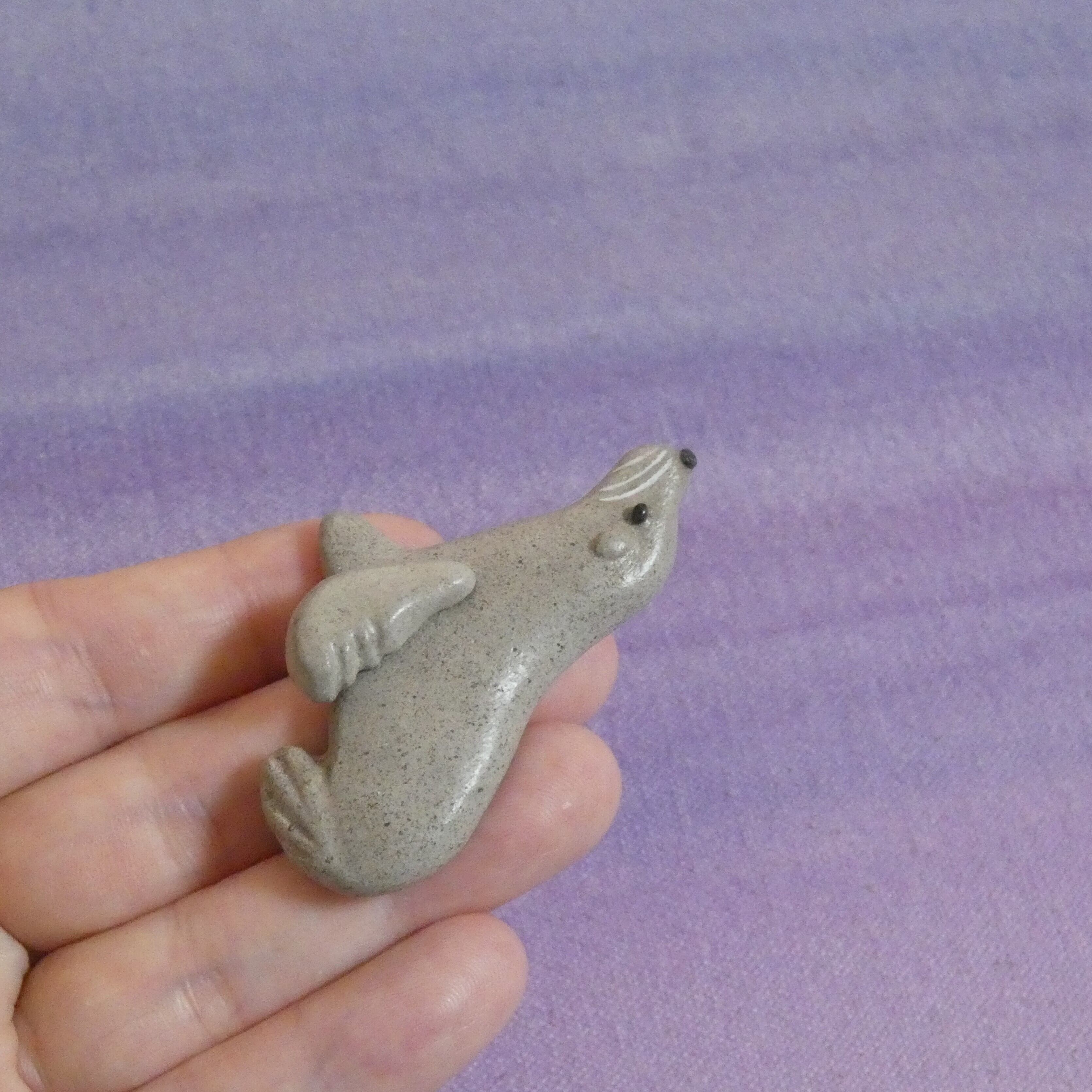 オーブン陶土で作った【オットセイ(アシカ)】の帯留めとブローチです。