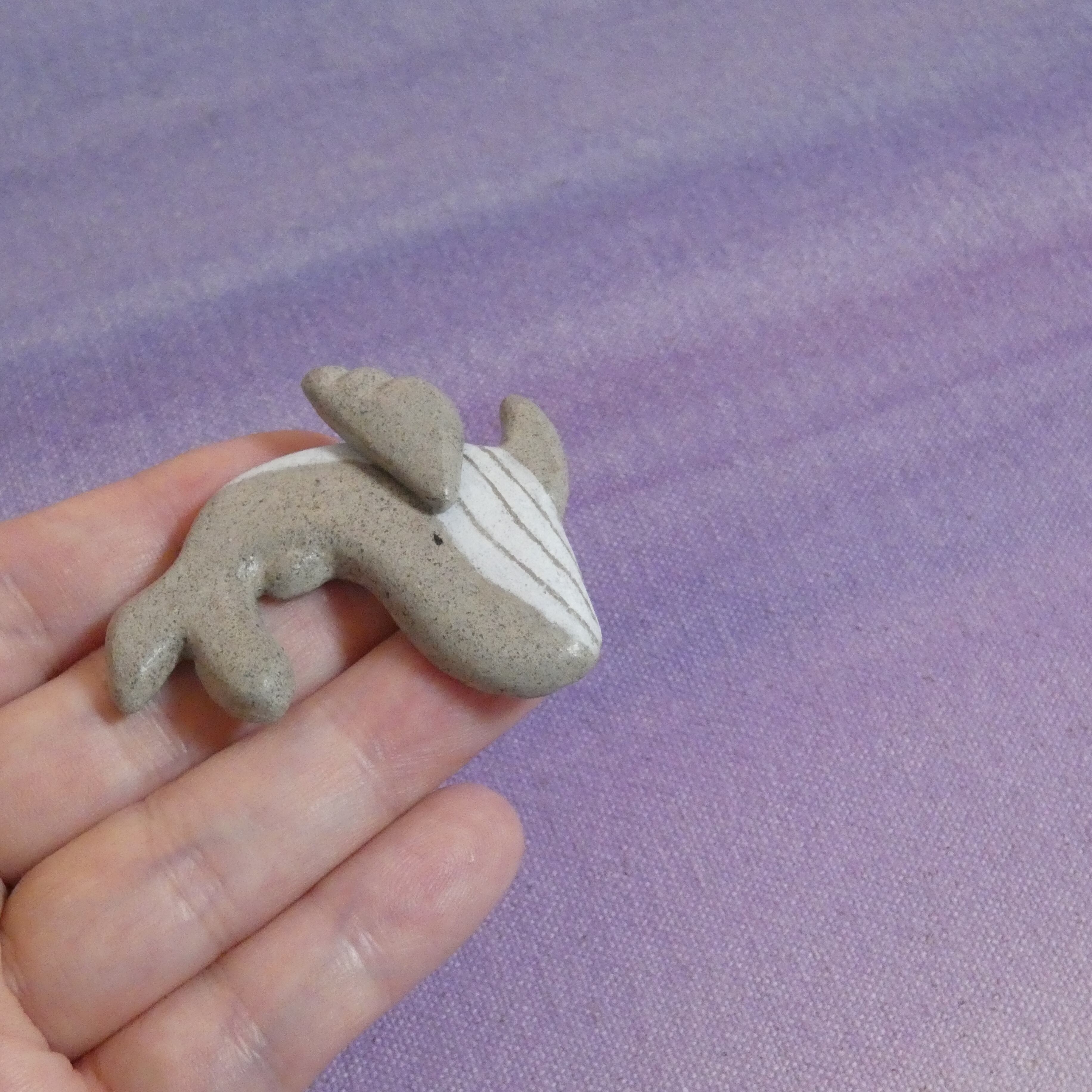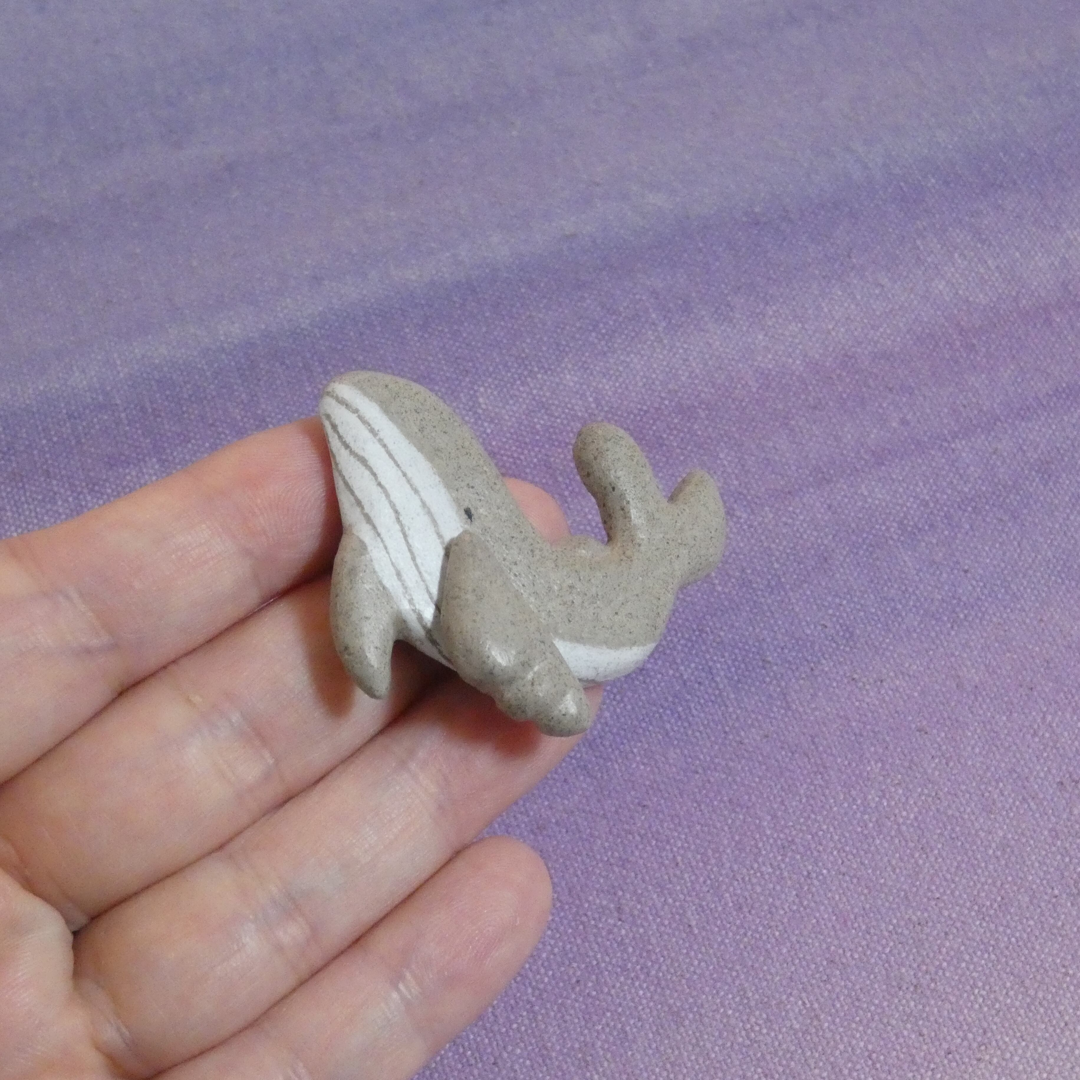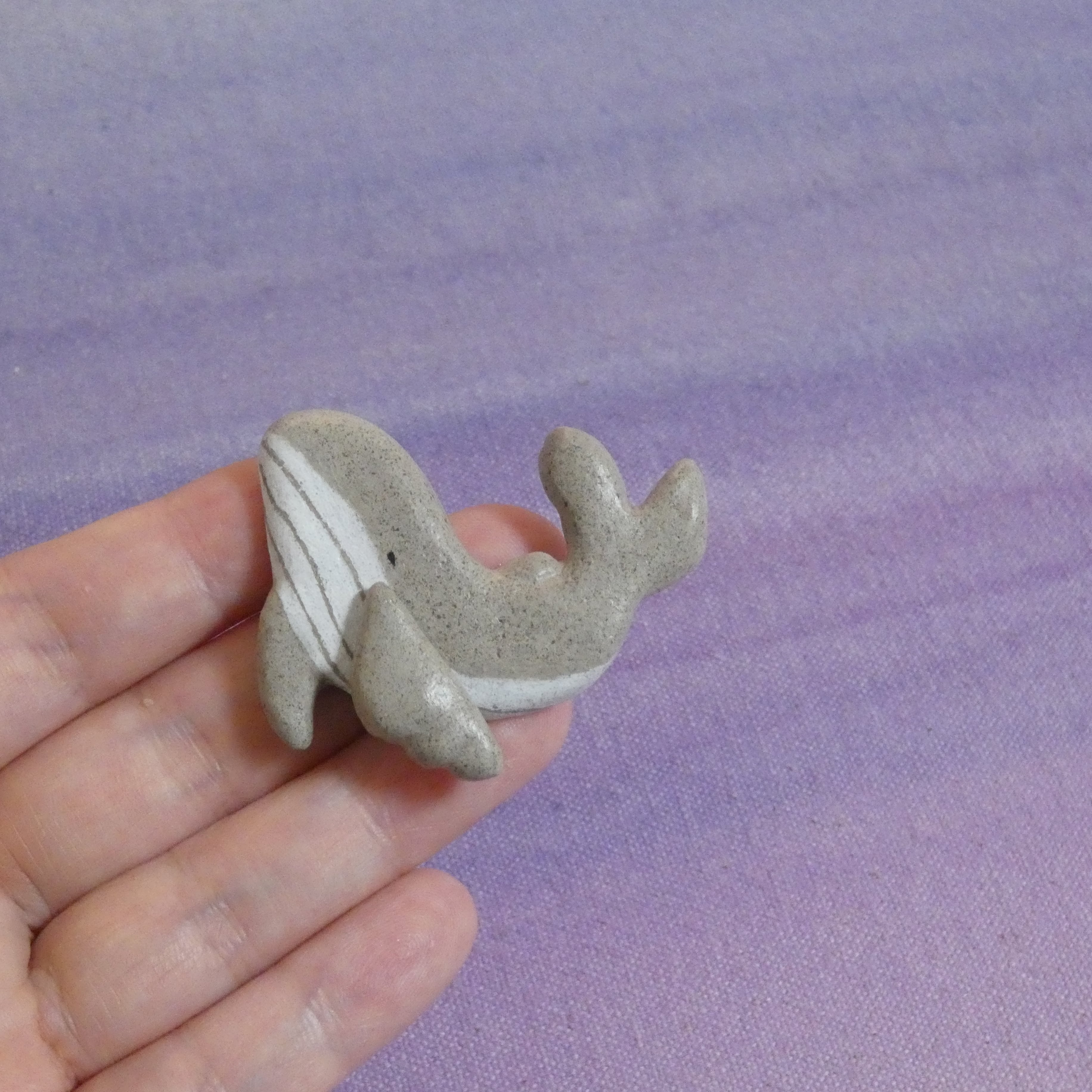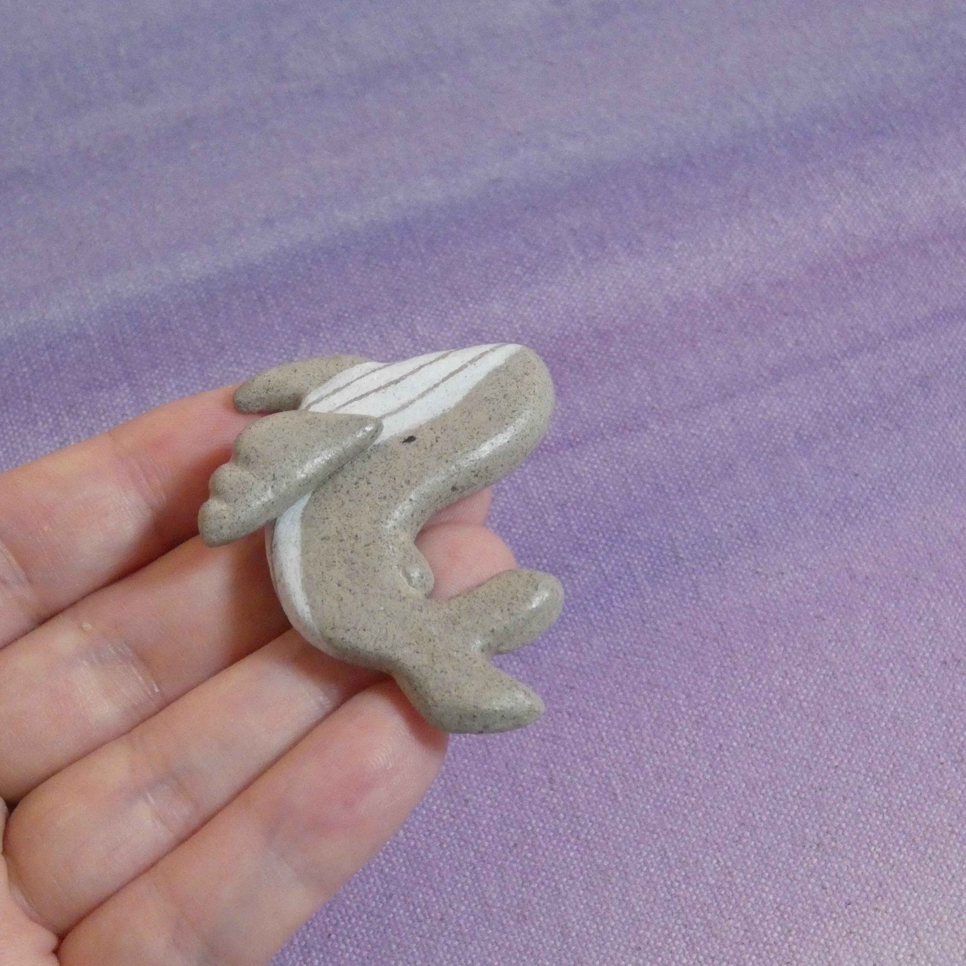 オーブン陶土で作った【鯨(ザトウクジラ)の帯留め】です。