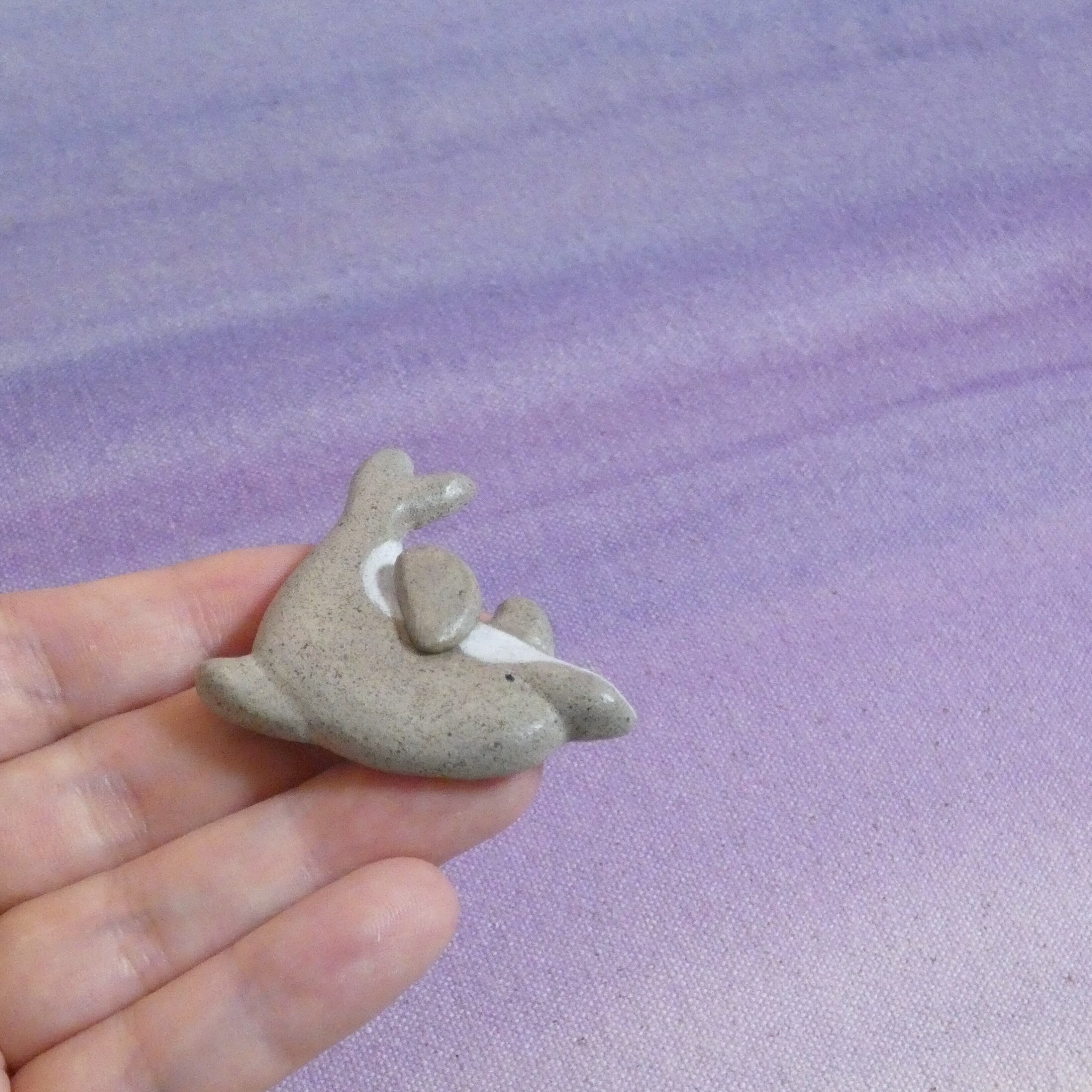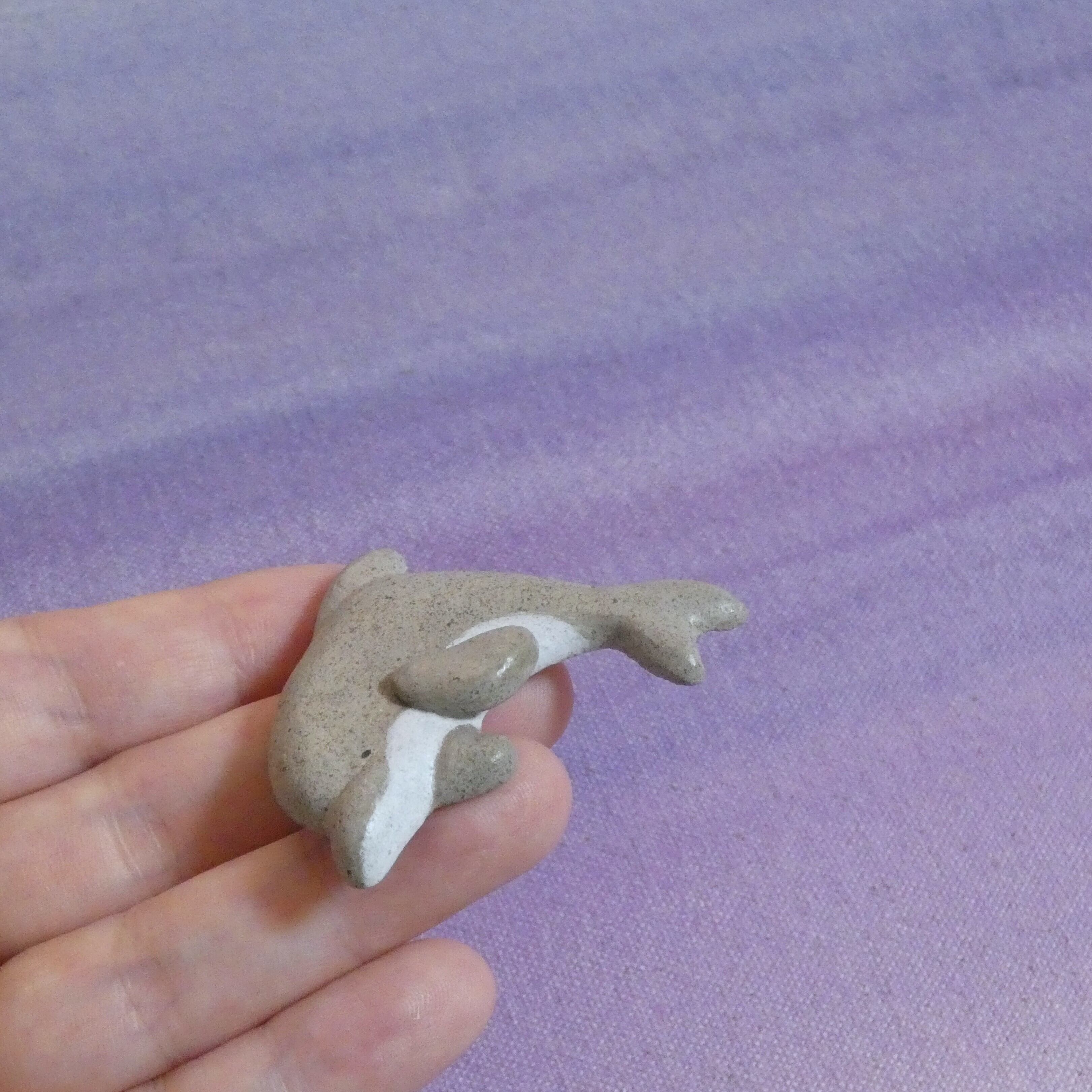 オーブン陶土で作った【イルカの帯留めとブローチ】です。