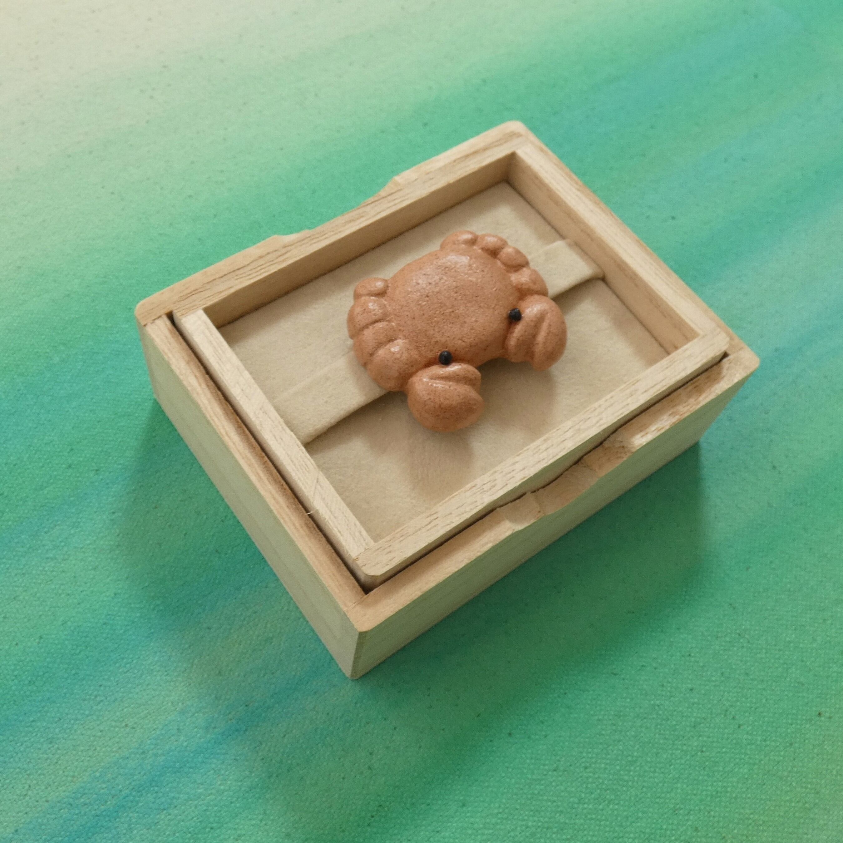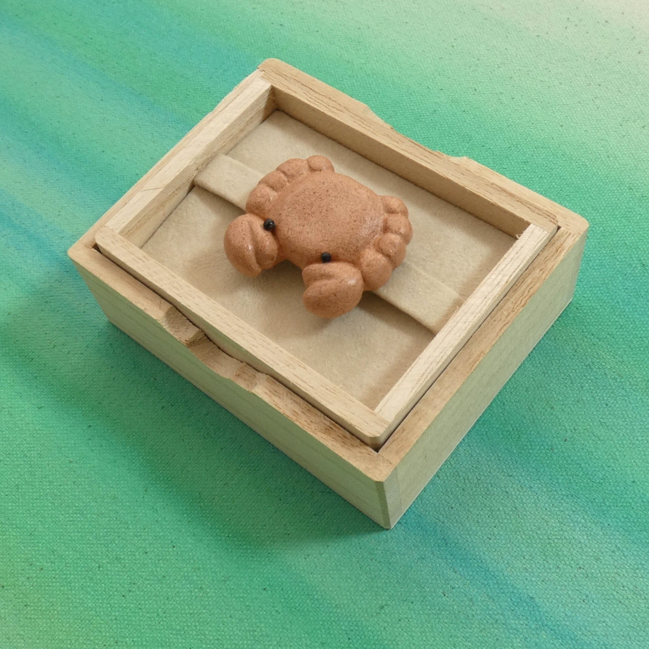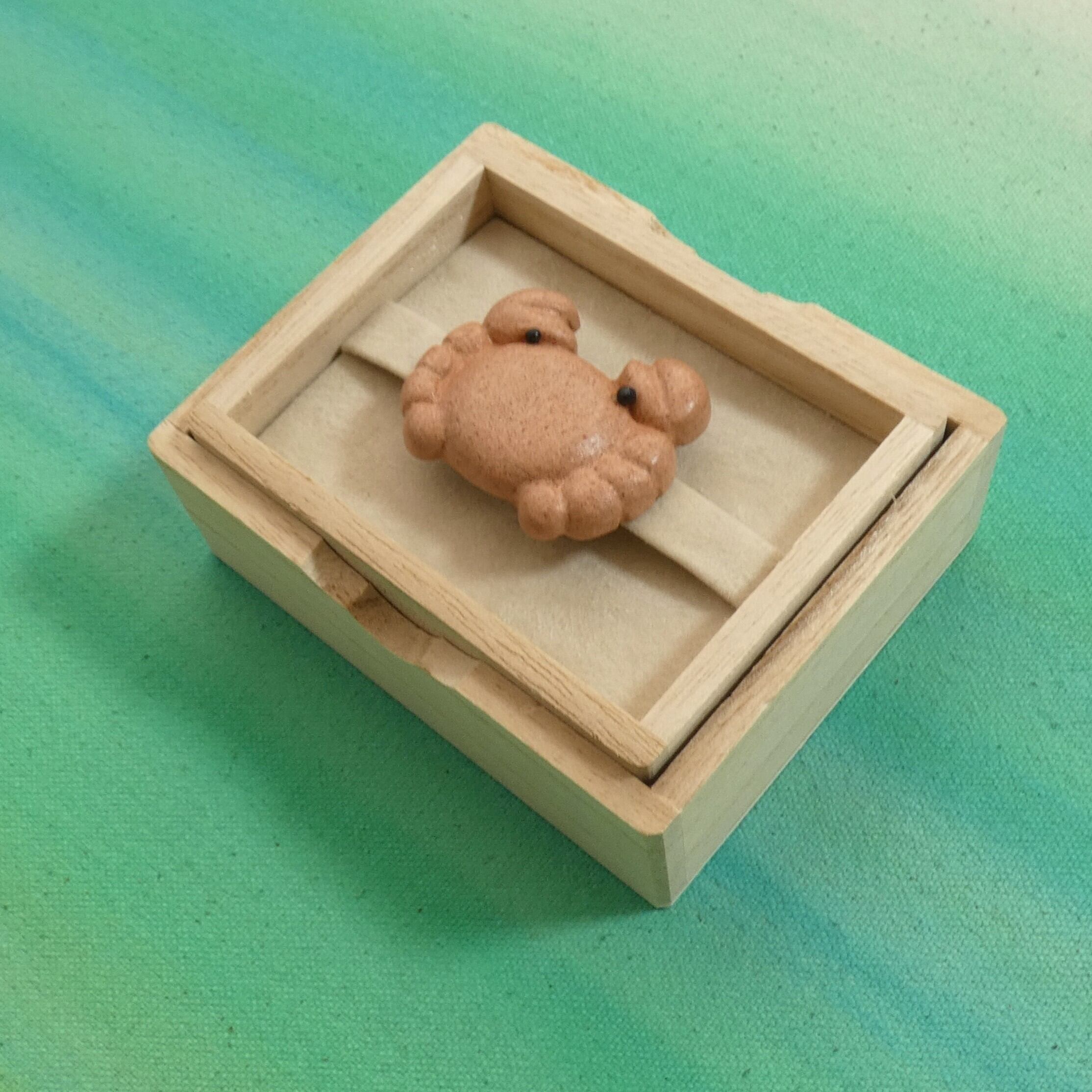 オーブン陶土で作った【カニ】の帯留めとブローチです。