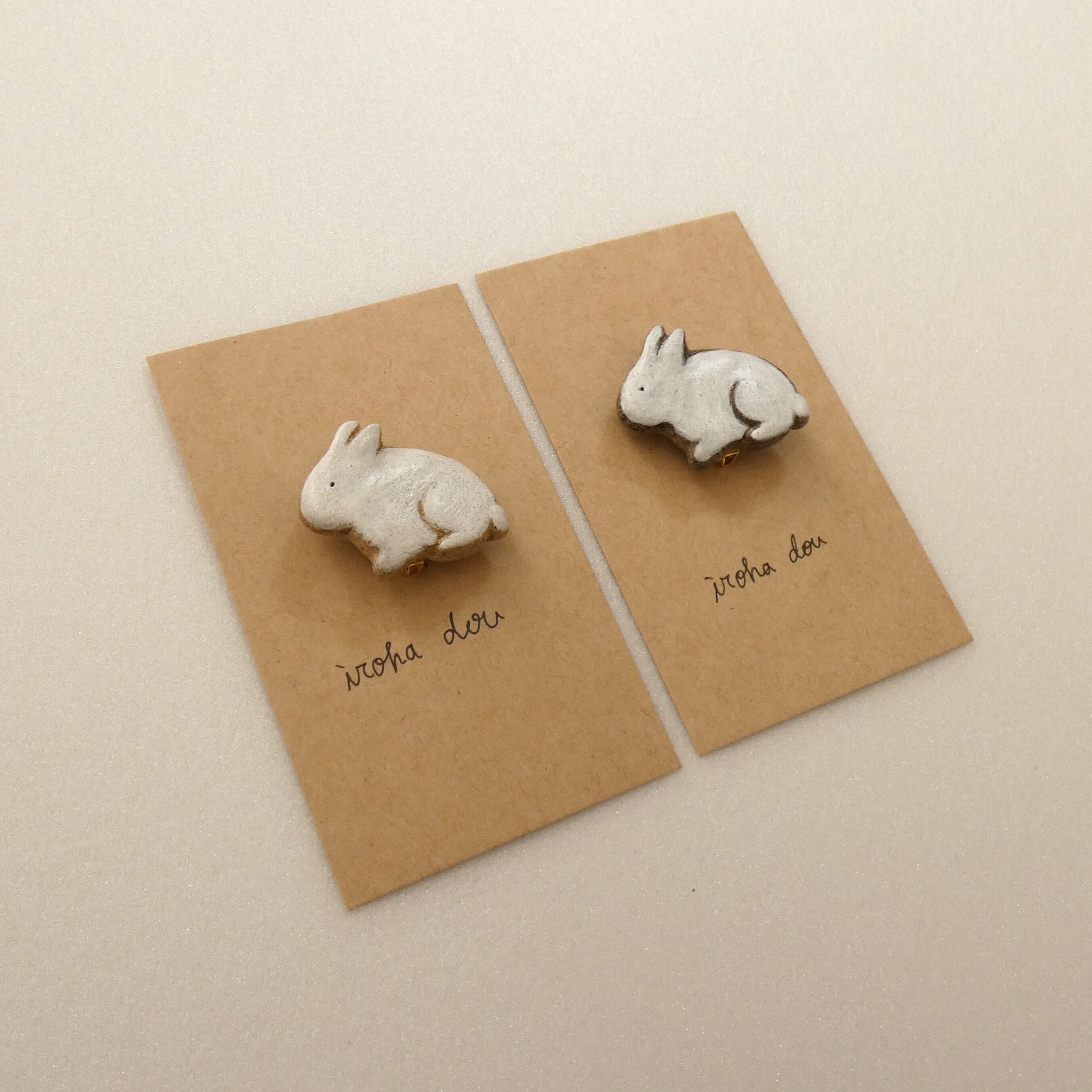 オーブン陶土で作った【白うさぎの帯留め】です。