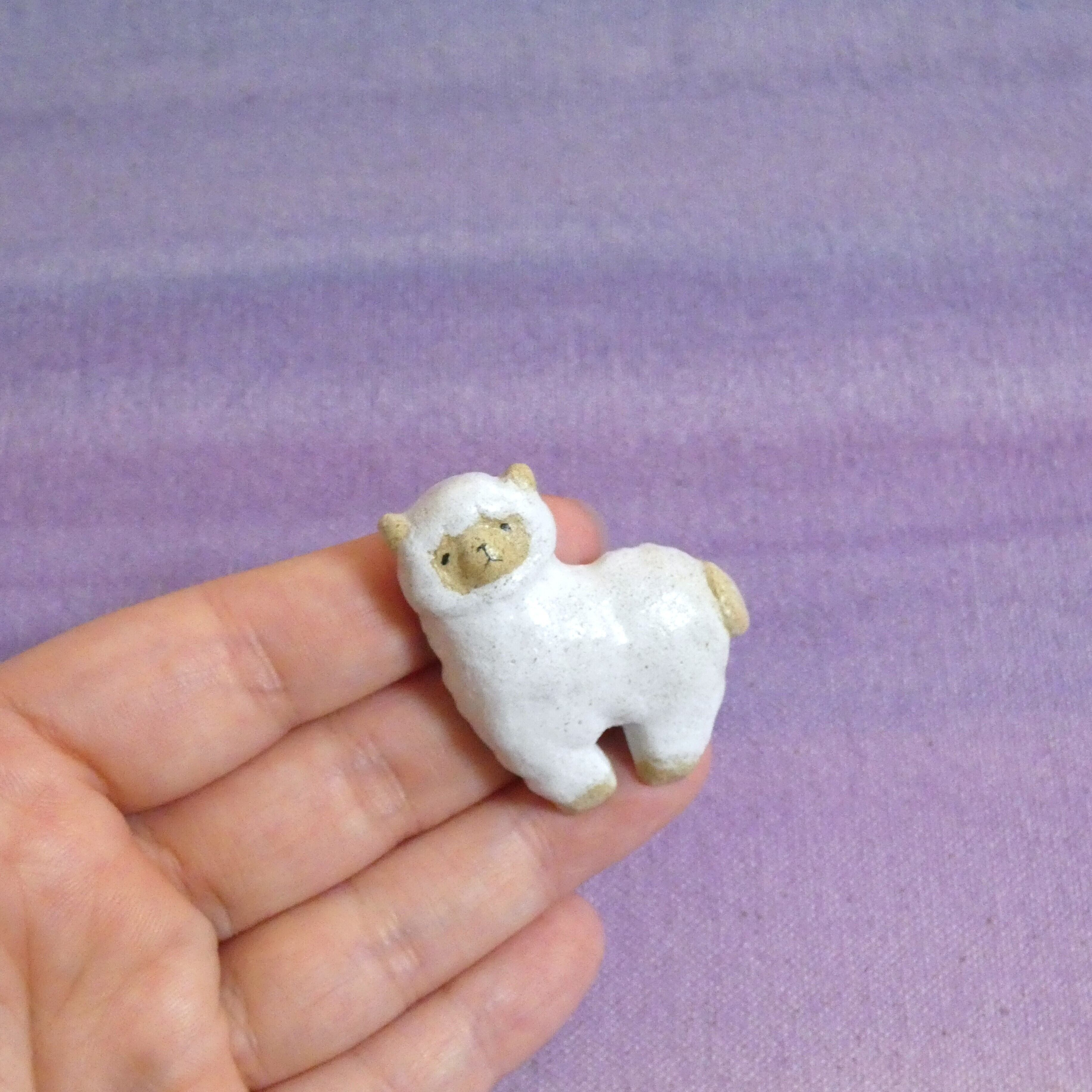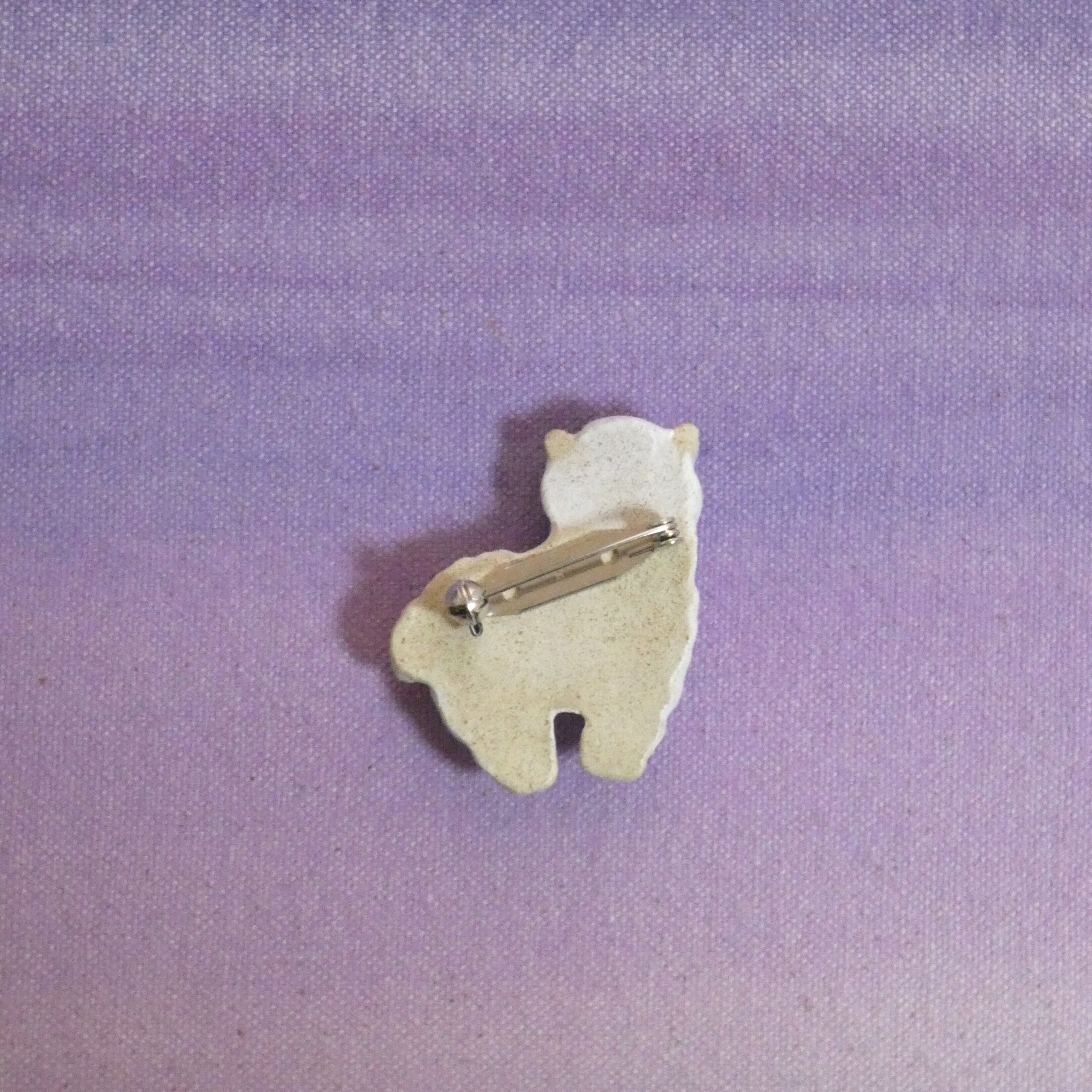 オーブン陶土で作った【アルパカの帯留めとブローチ】です。