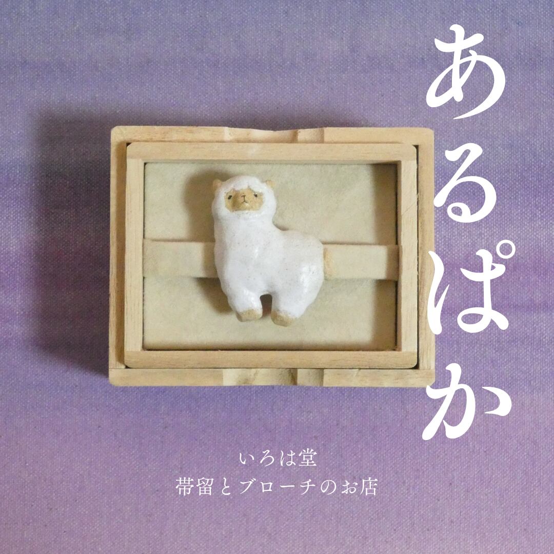 アルパカ 帯留め ブローチ 陶土 帯留 あるぱか いろは堂 和装小物 ハンドメイド