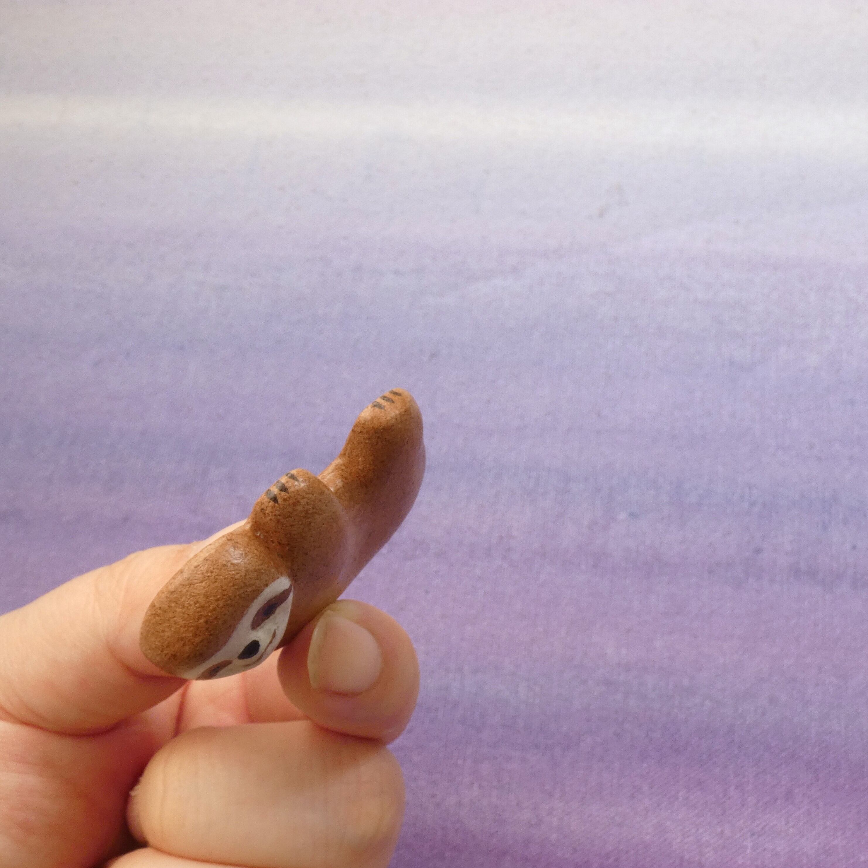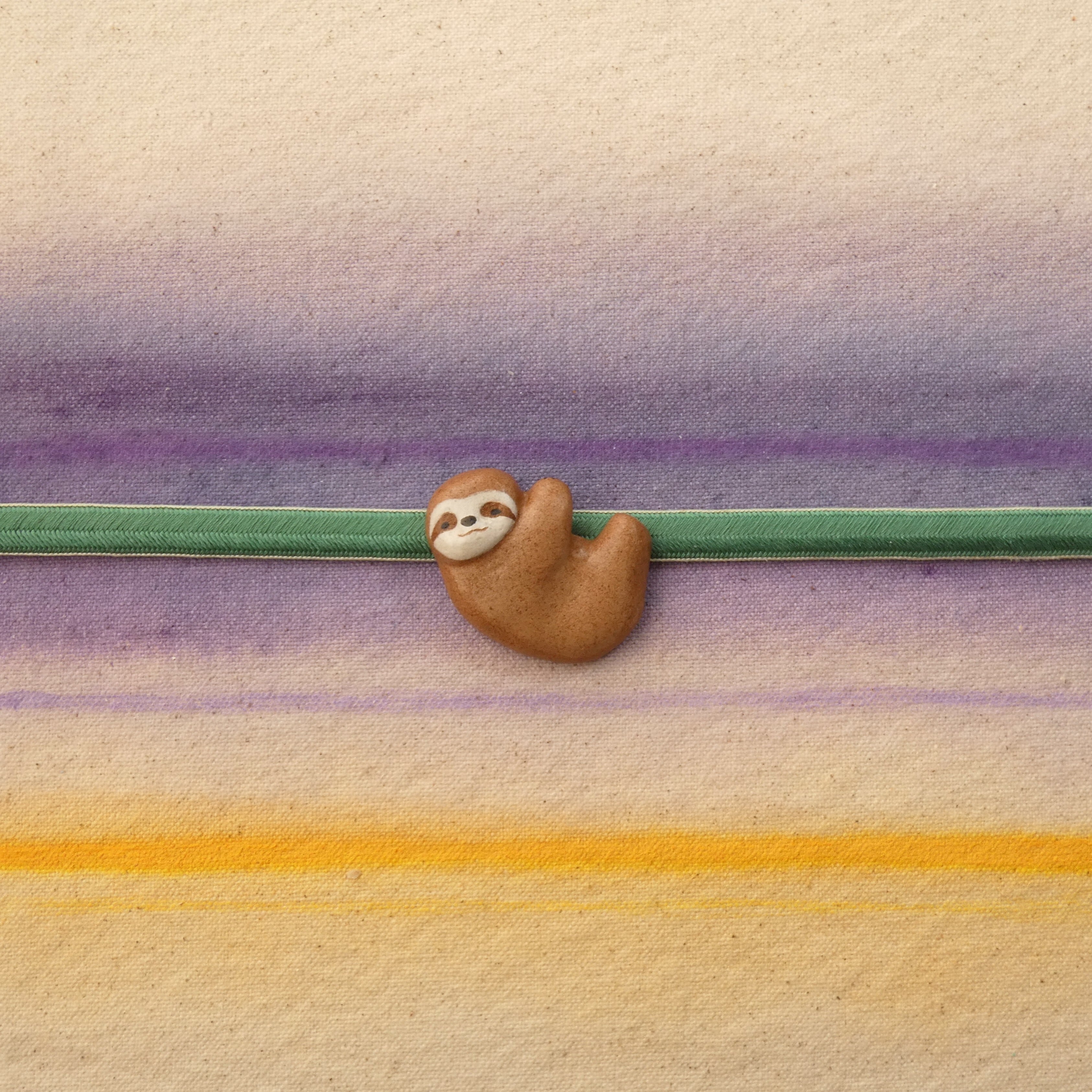 オーブン陶土で作った【ナマケモノの帯留めとブローチ】です。