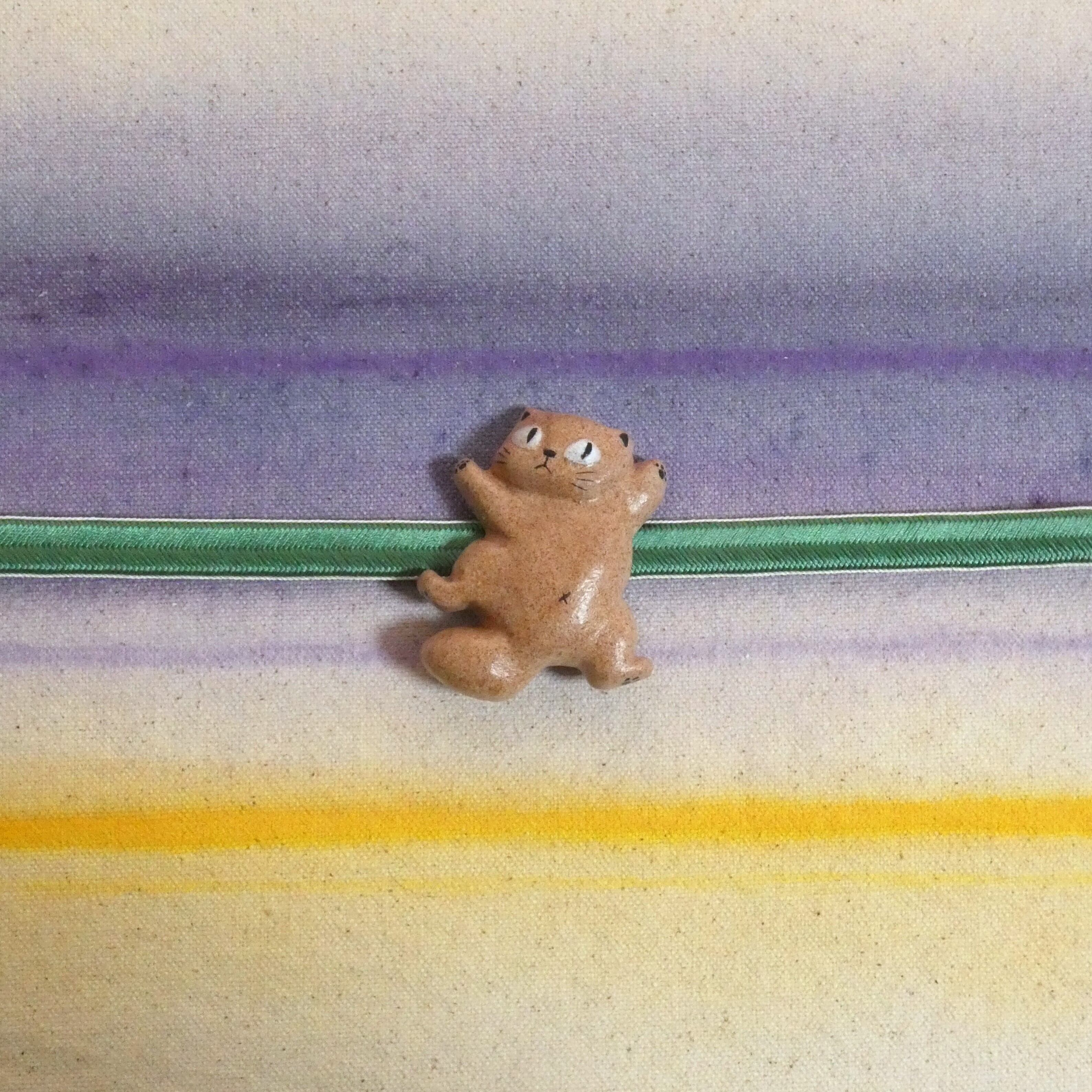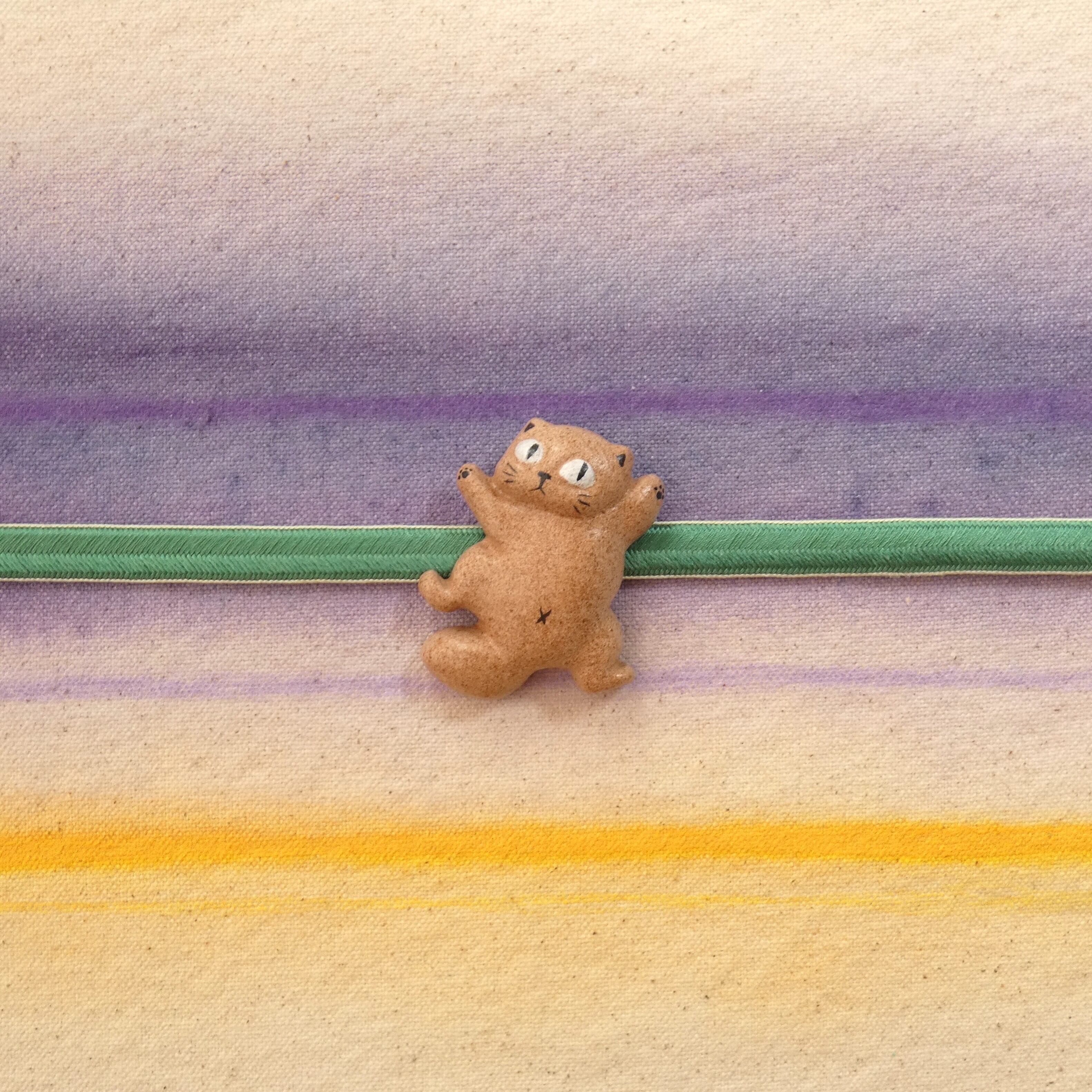 オーブン陶土で作った【猫の帯留め】です。