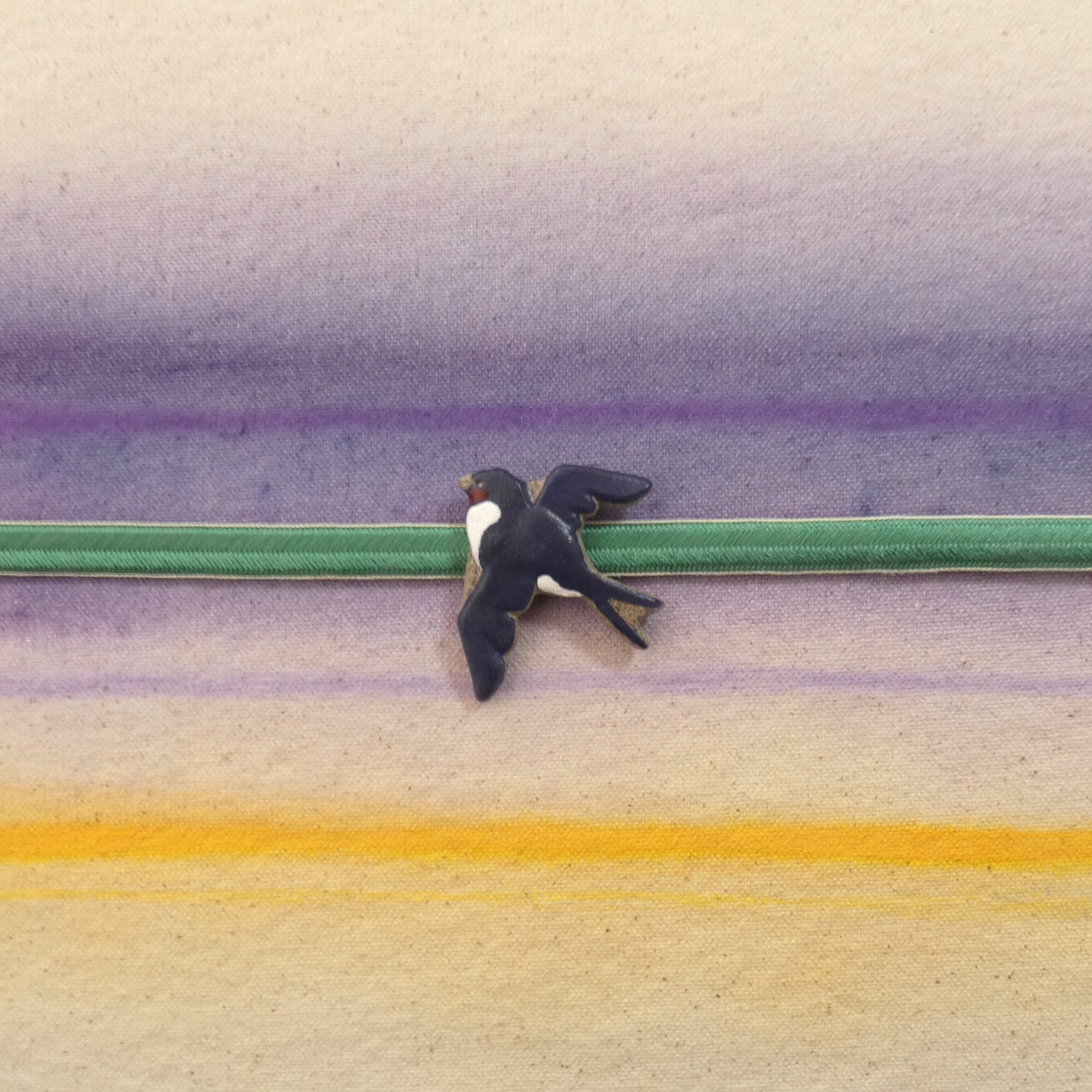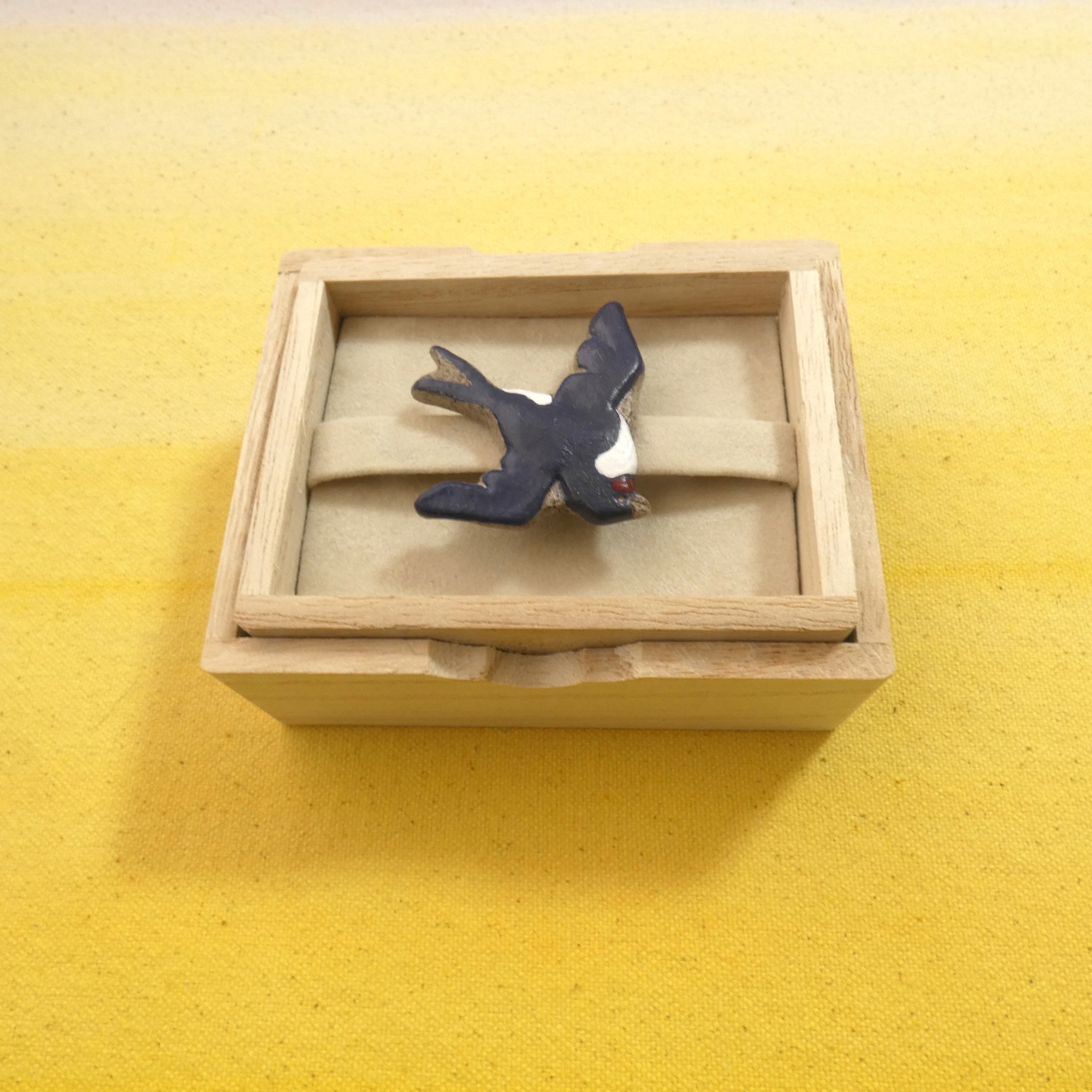 オーブン陶土で作った【ツバメの帯留めとブローチ】です。