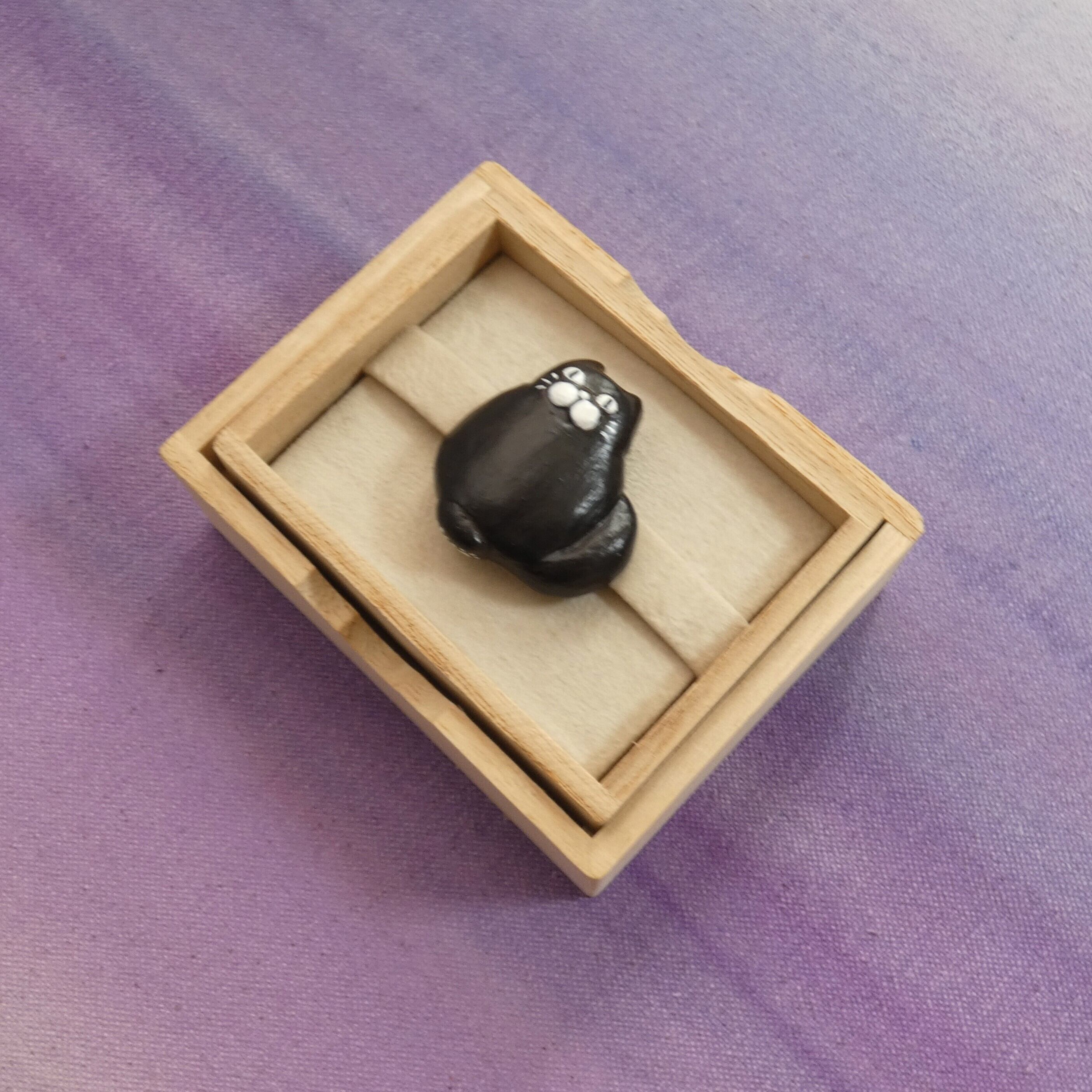 オーブン陶土で作った【猫(くろねこ)の帯留めとブローチ】です。