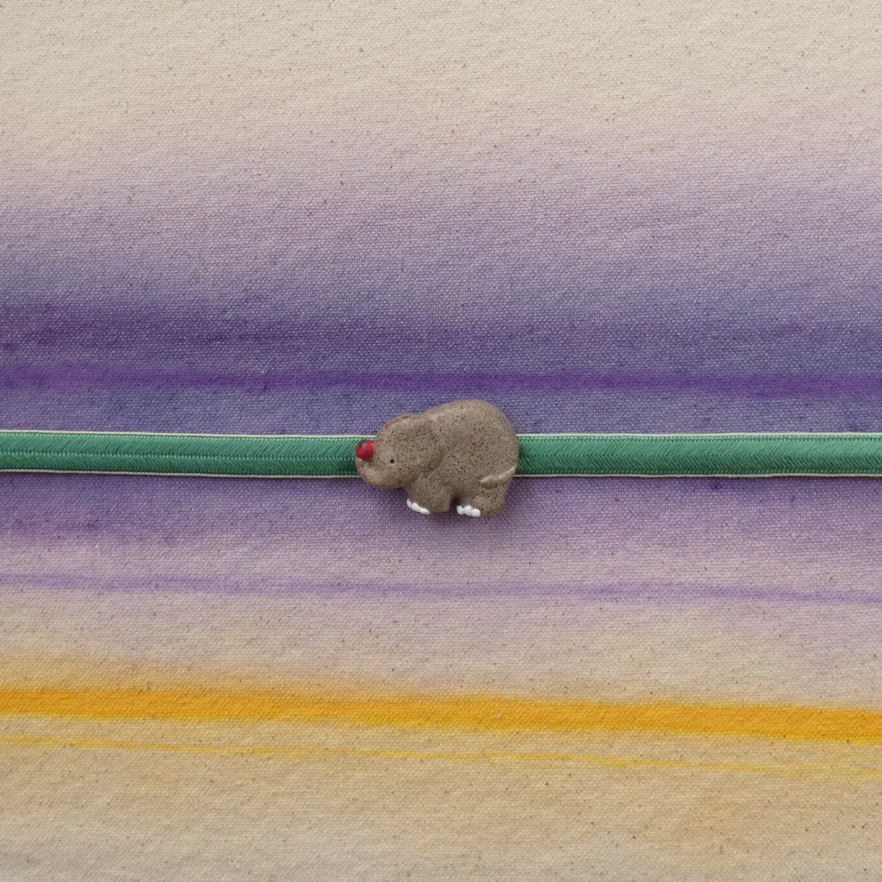 オーブン陶土で作った【ゾウ(Bタイプ)の帯留めとブローチ】です。