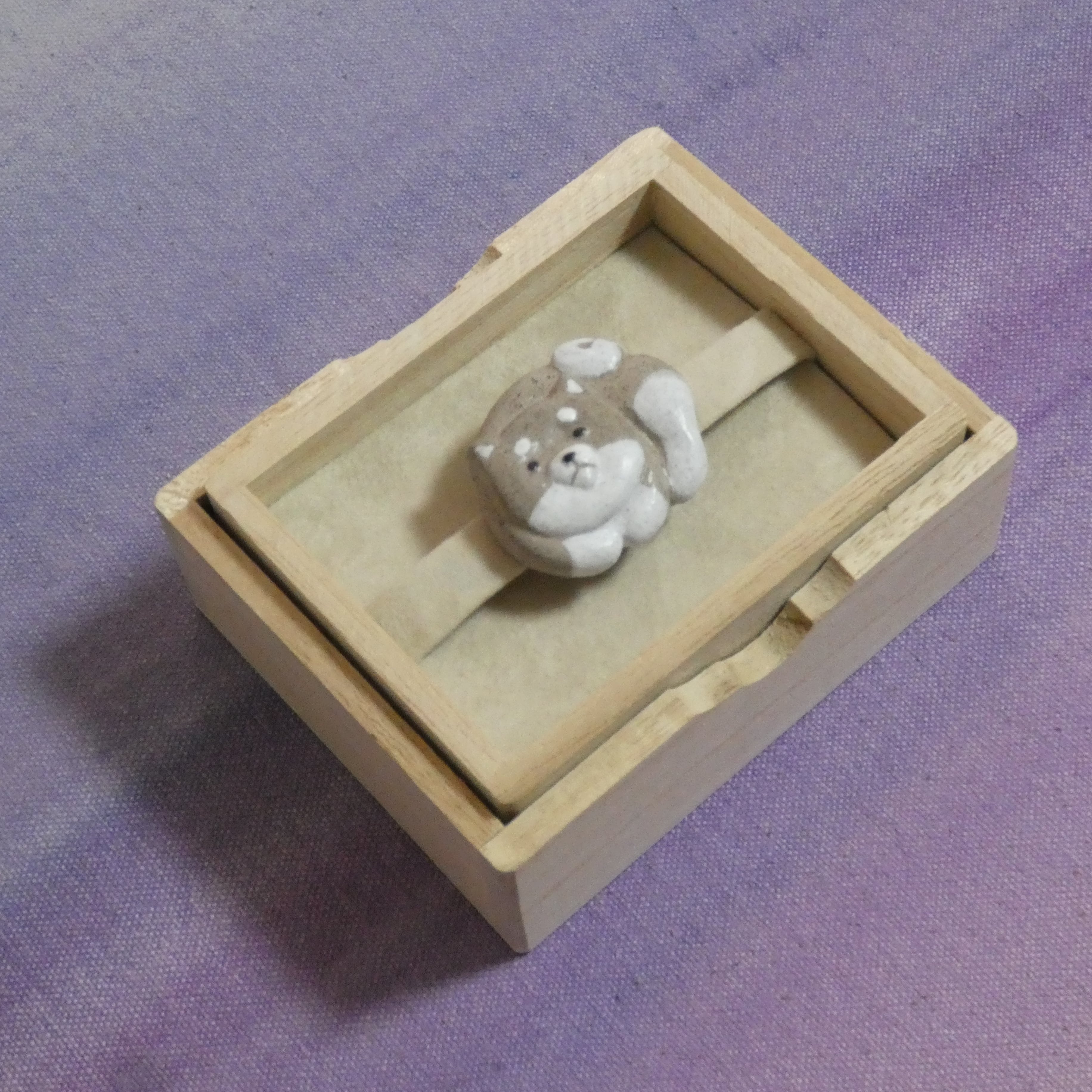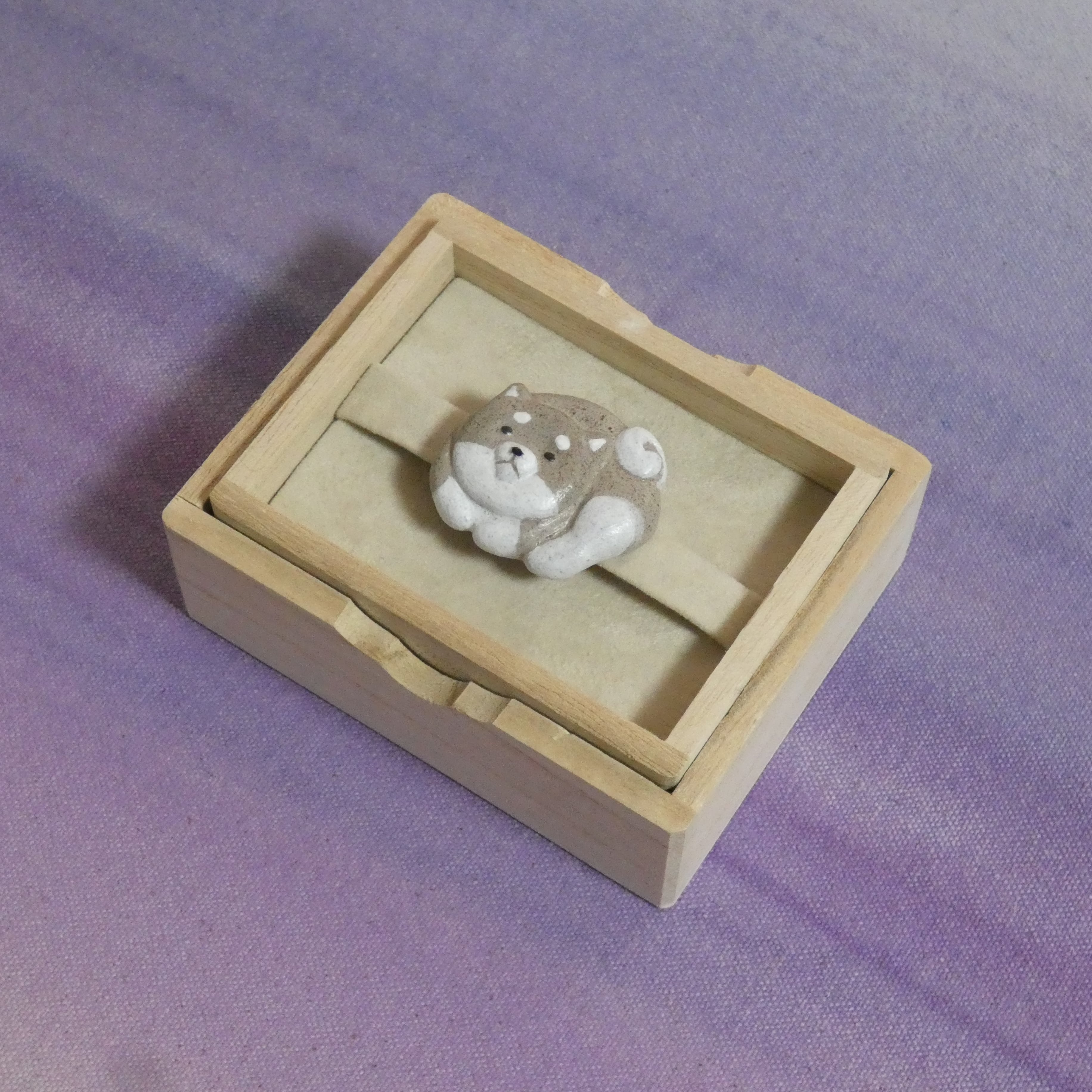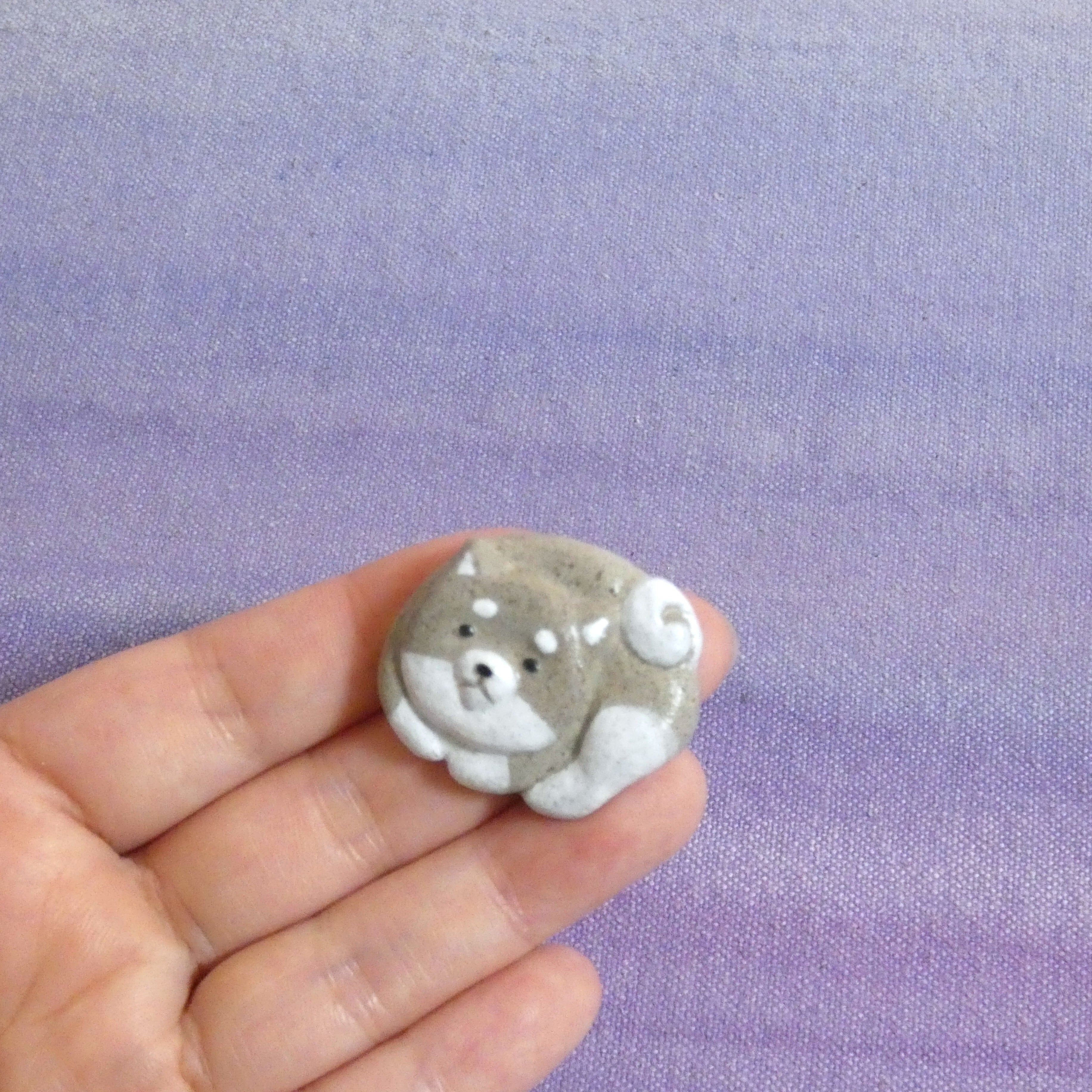 オーブン陶土で作った【柴犬の帯留めとブローチ】です。