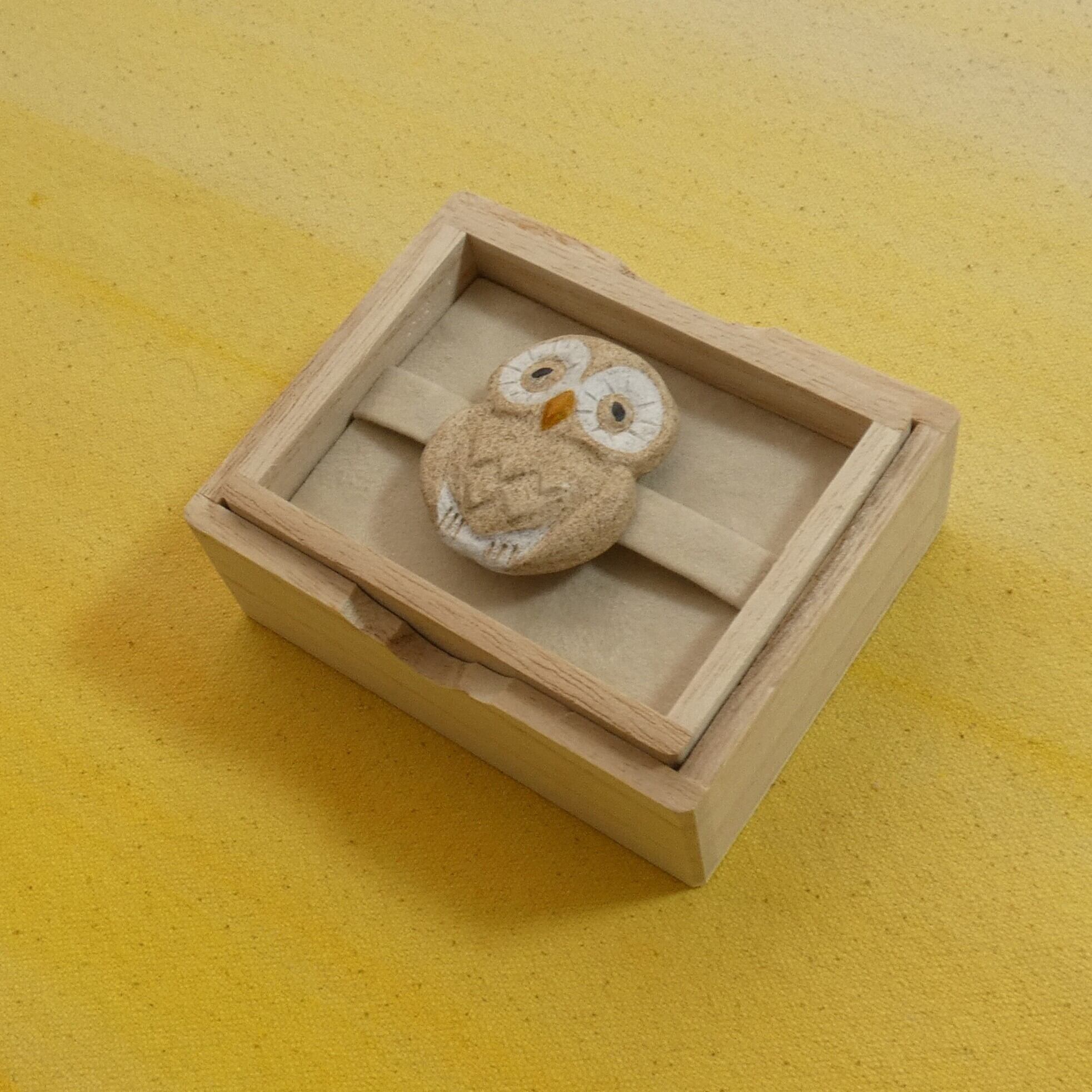 オーブン陶土で作った【フクロウの帯留めとブローチ】です。