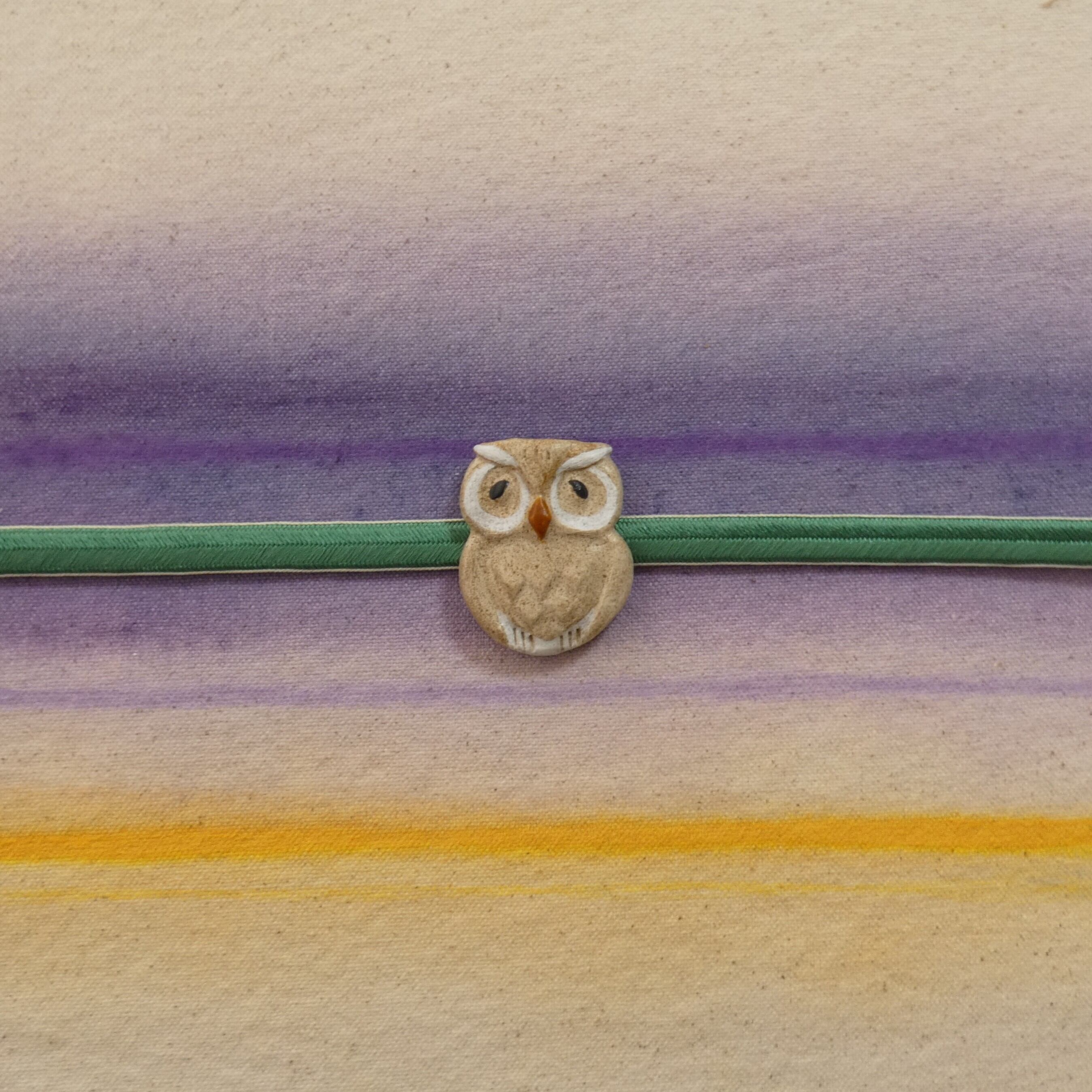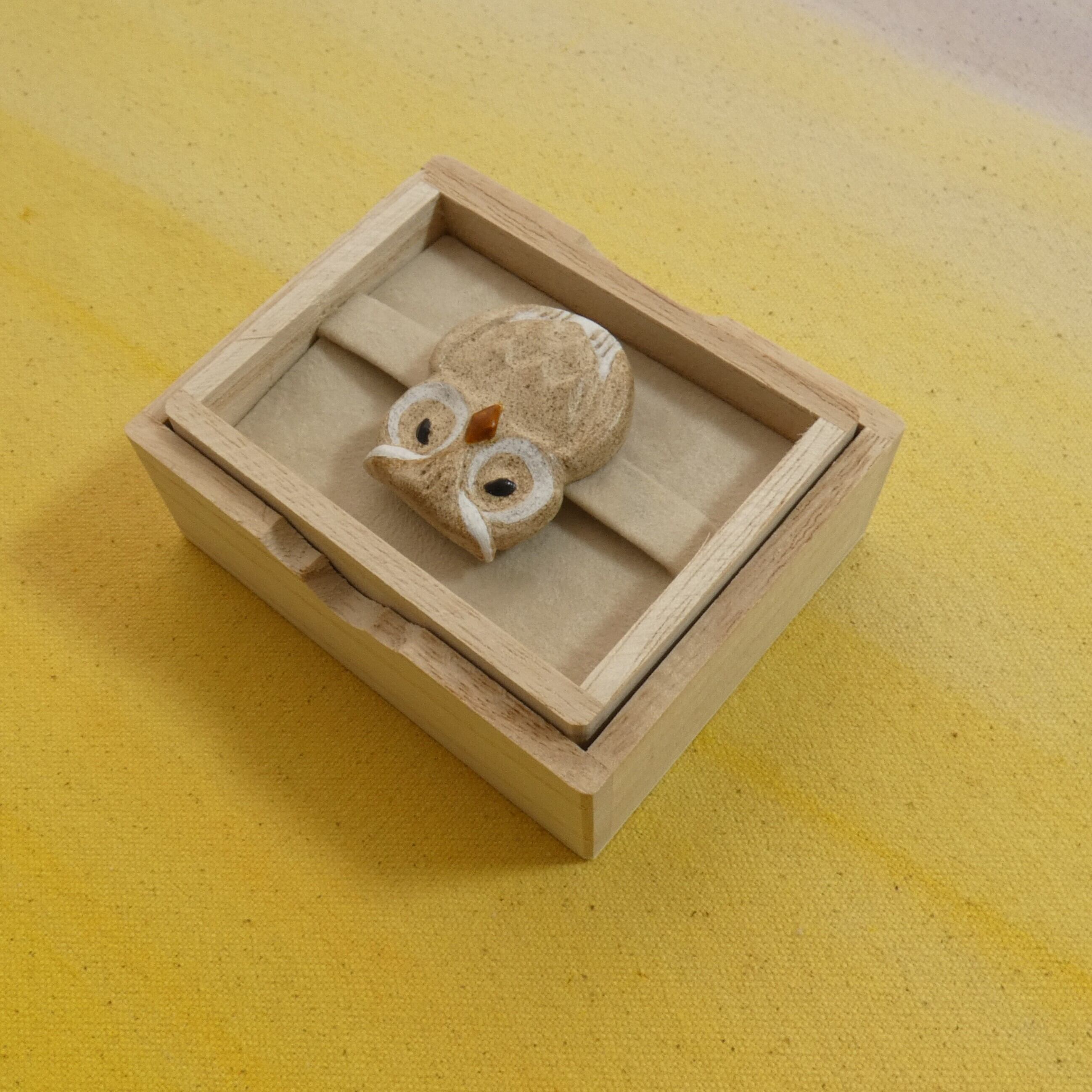 オーブン陶土で作った【ミミズクの帯留めとブローチ】です。