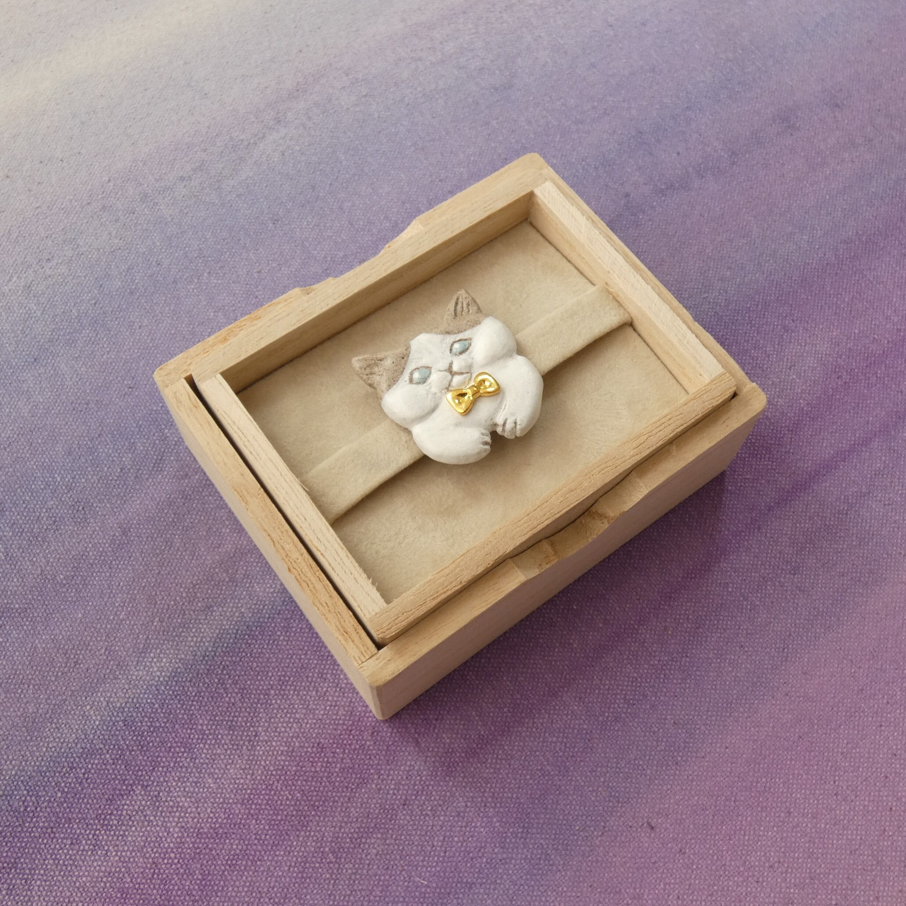 オーブン陶土で作った【ネコの帯留めとブローチ】です。