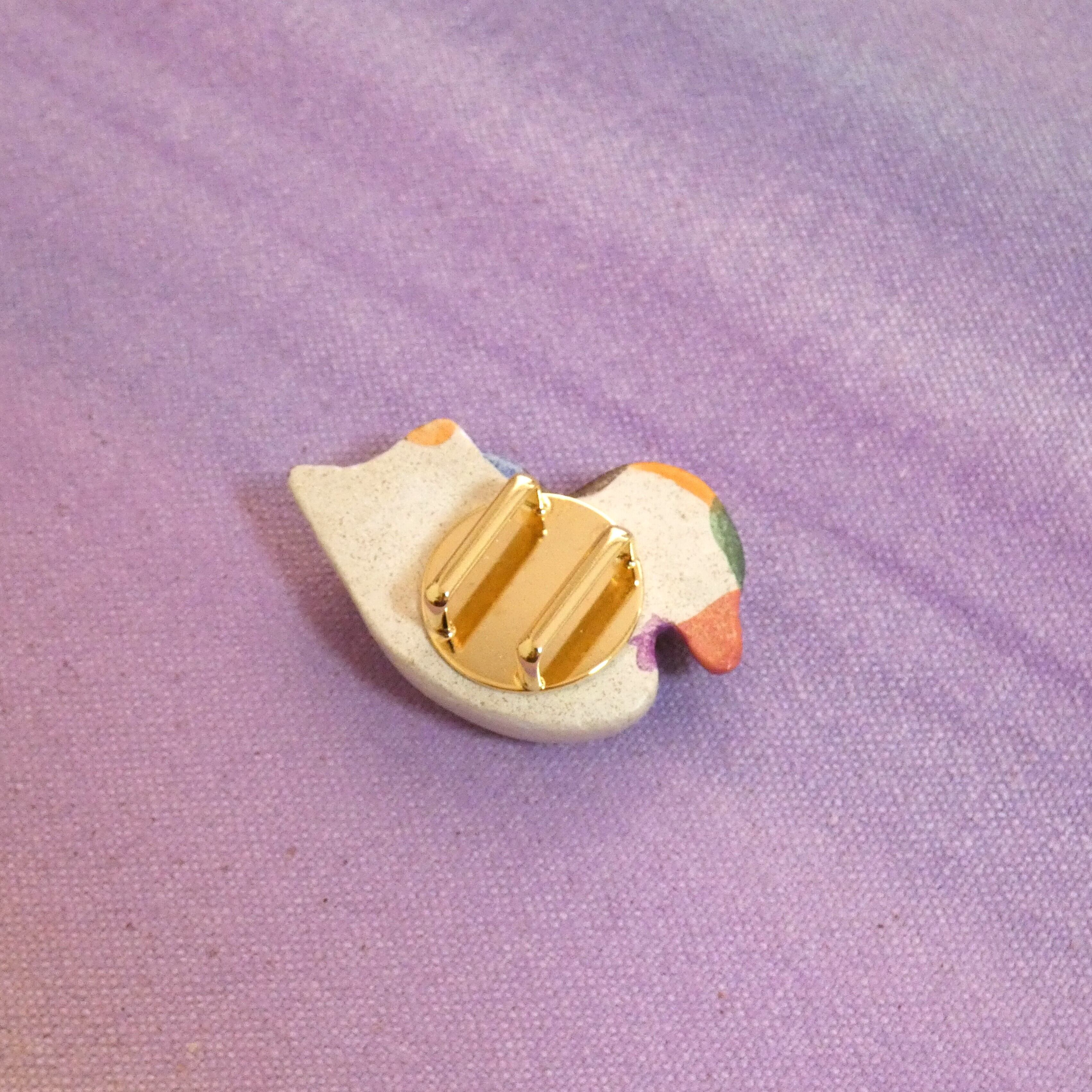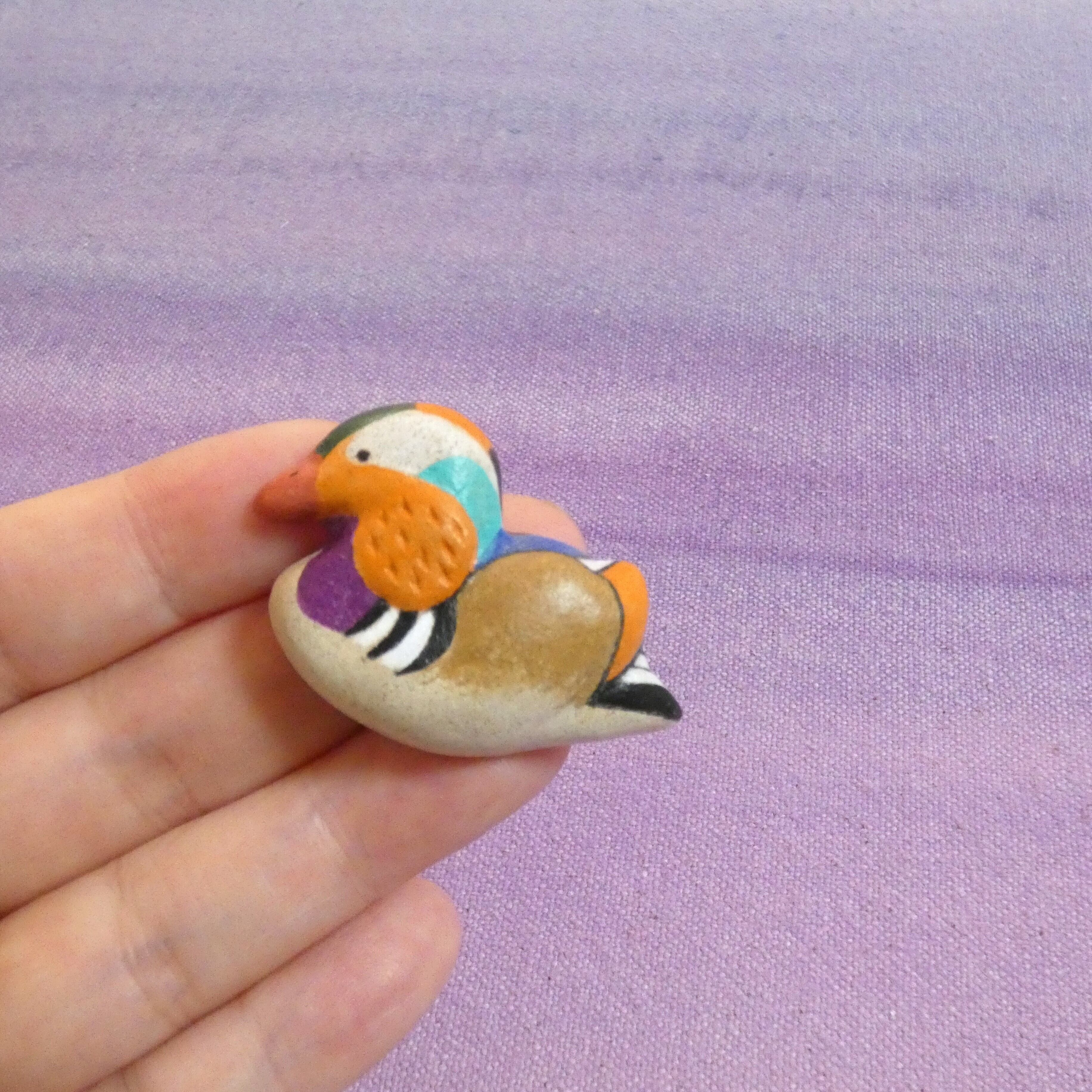 オーブン陶土で作った【鴛鴦(おしどり)の帯留め】です。