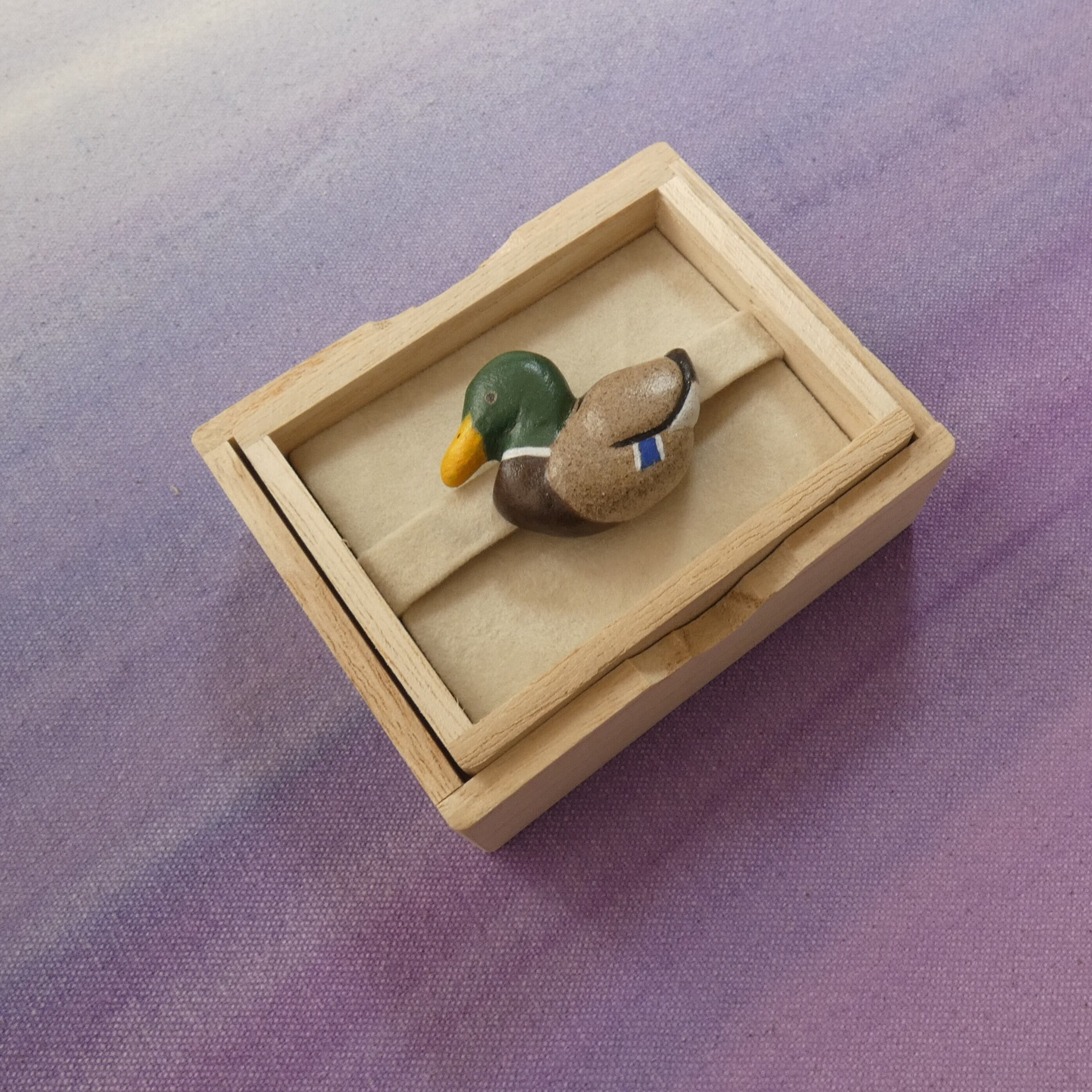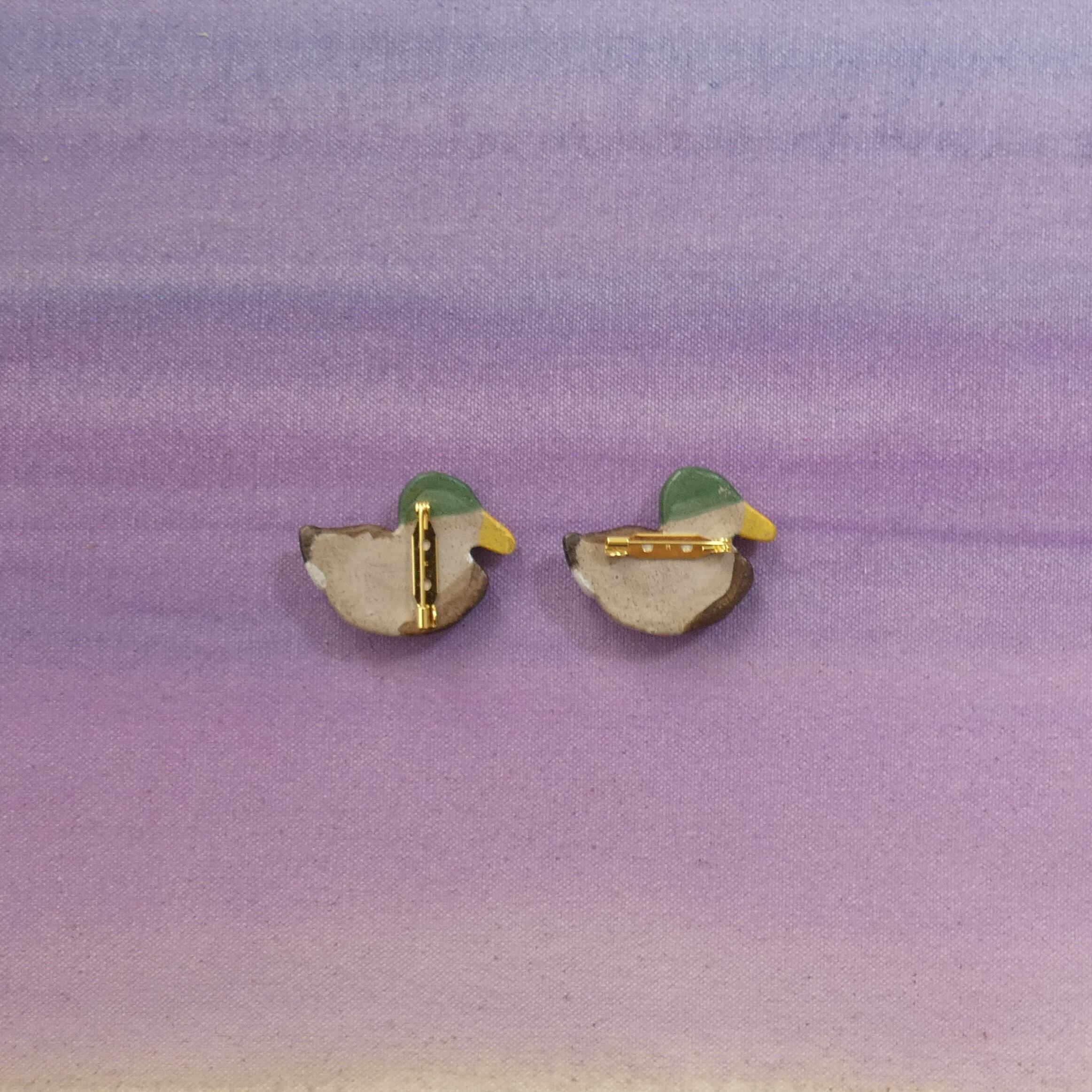 オーブン陶土で作った【鴨(カモ)の帯留めとブローチ】です。