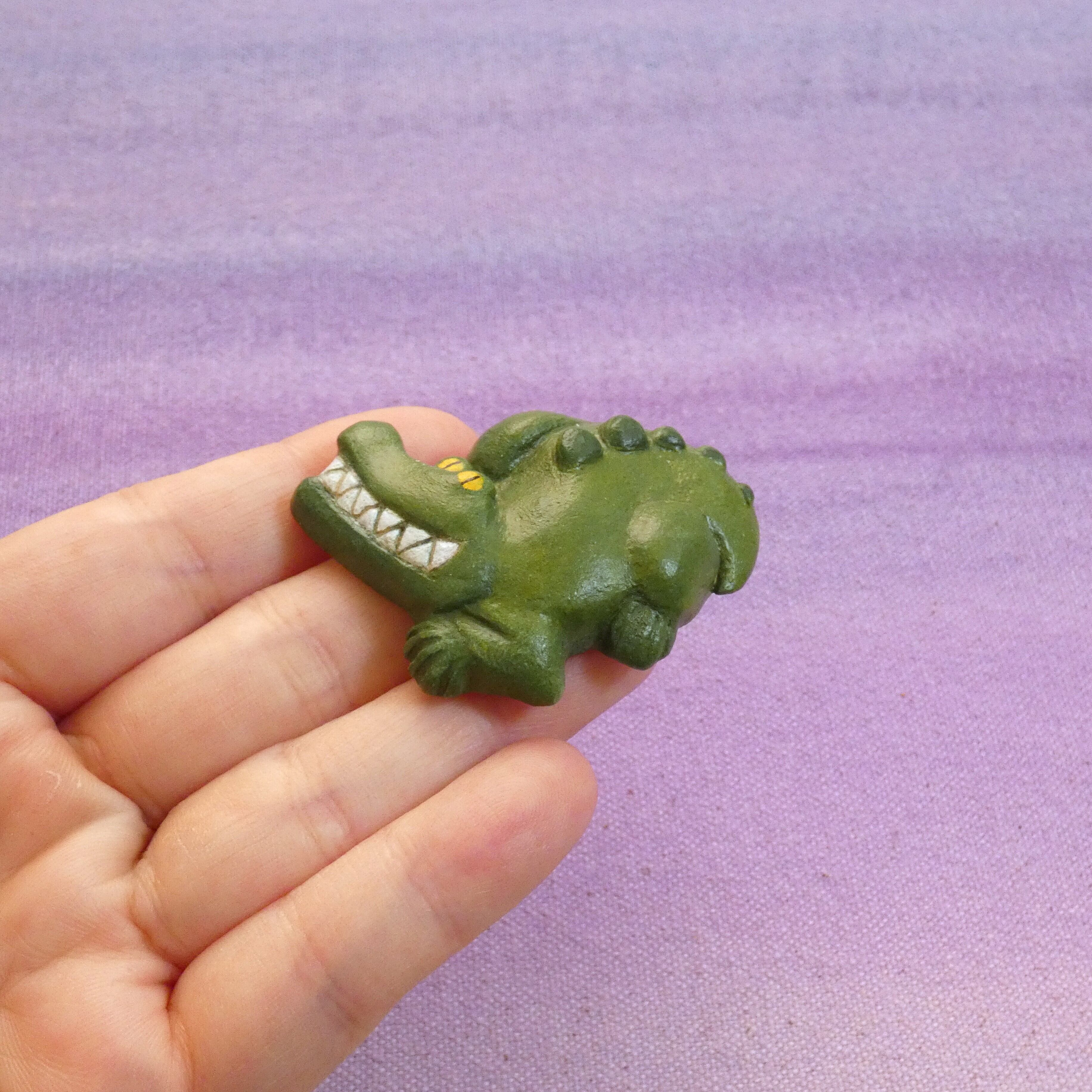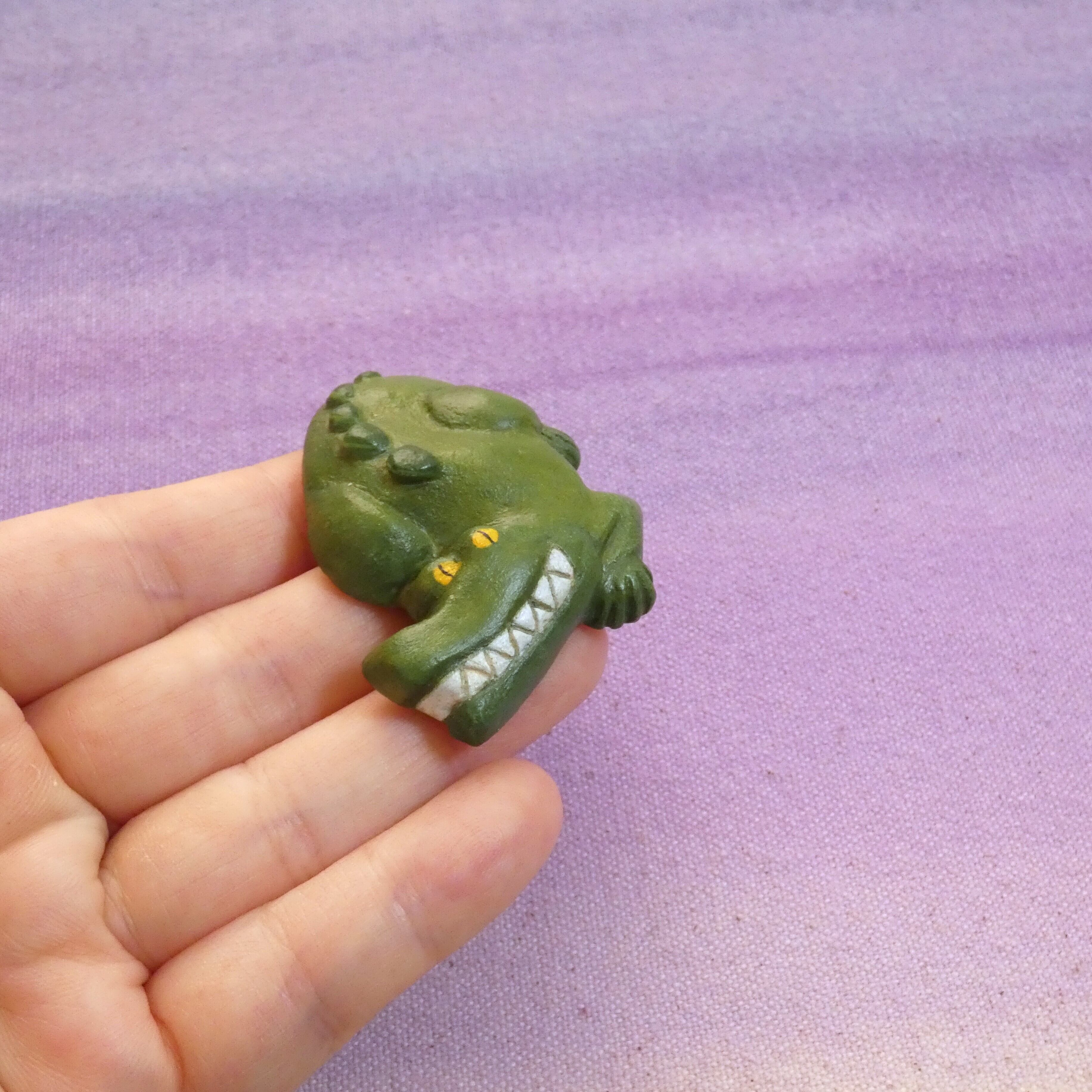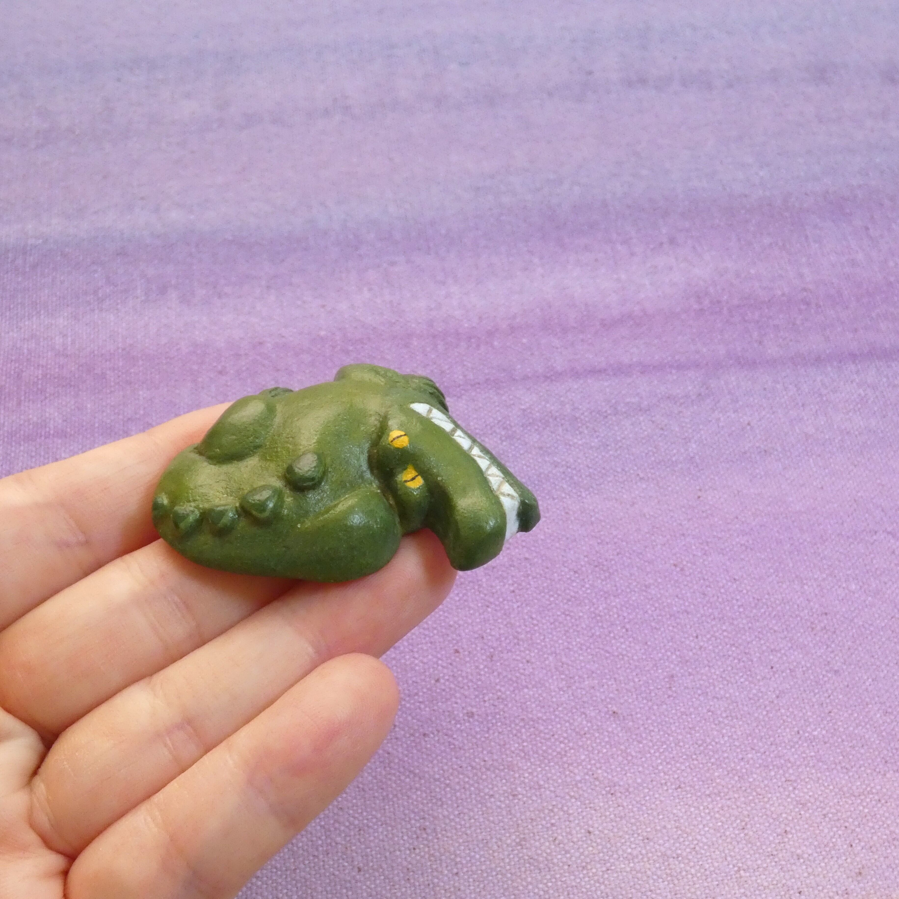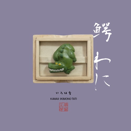 オーブン陶土で作った【ワニの帯留め】です。