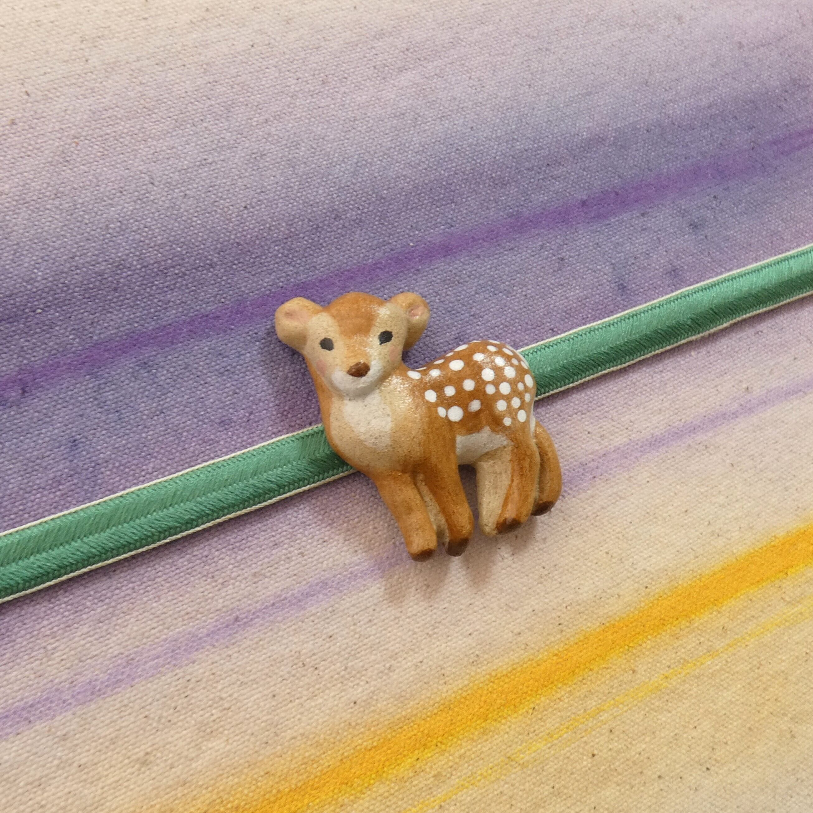 オーブン陶土で作った【鹿の帯留めとブローチ】です。