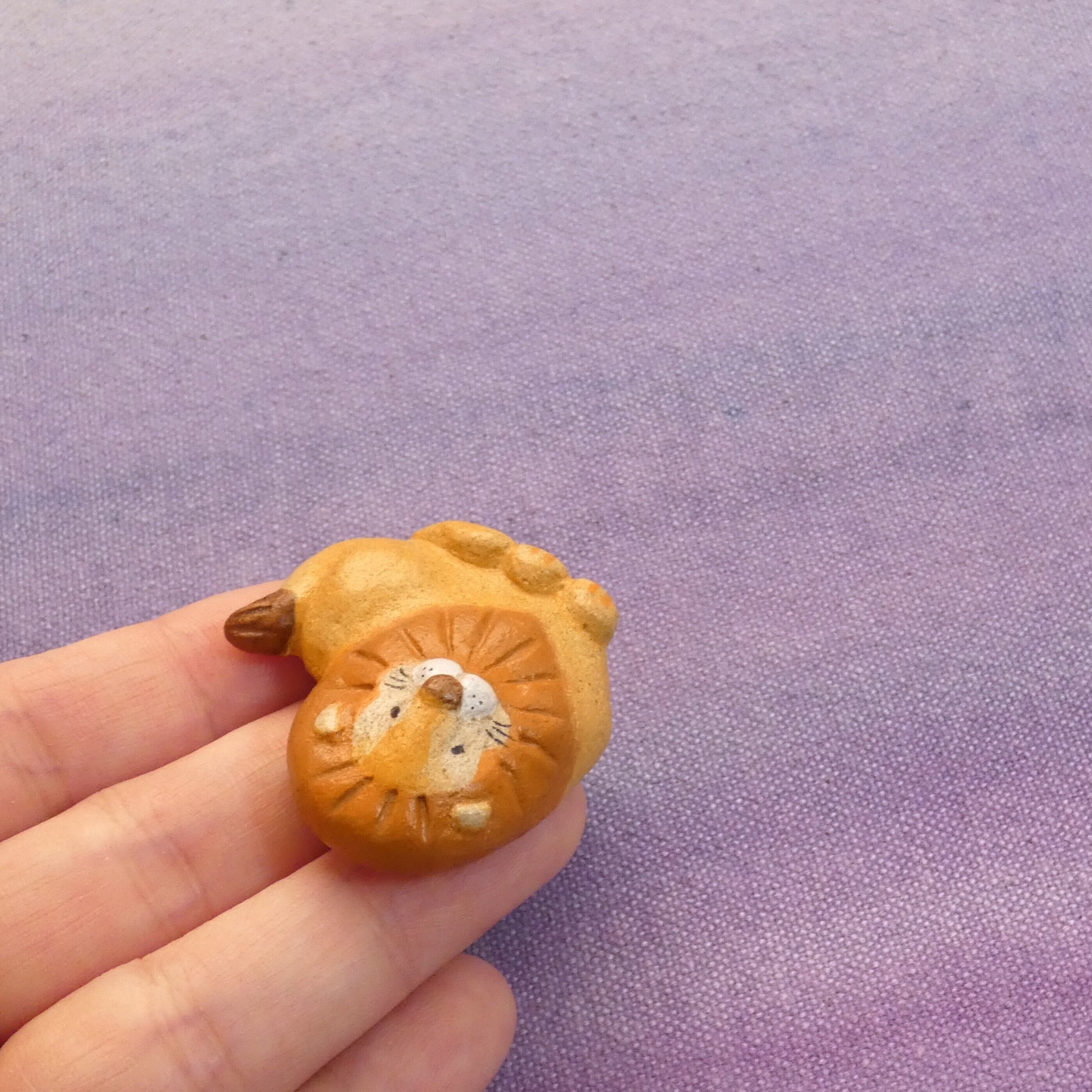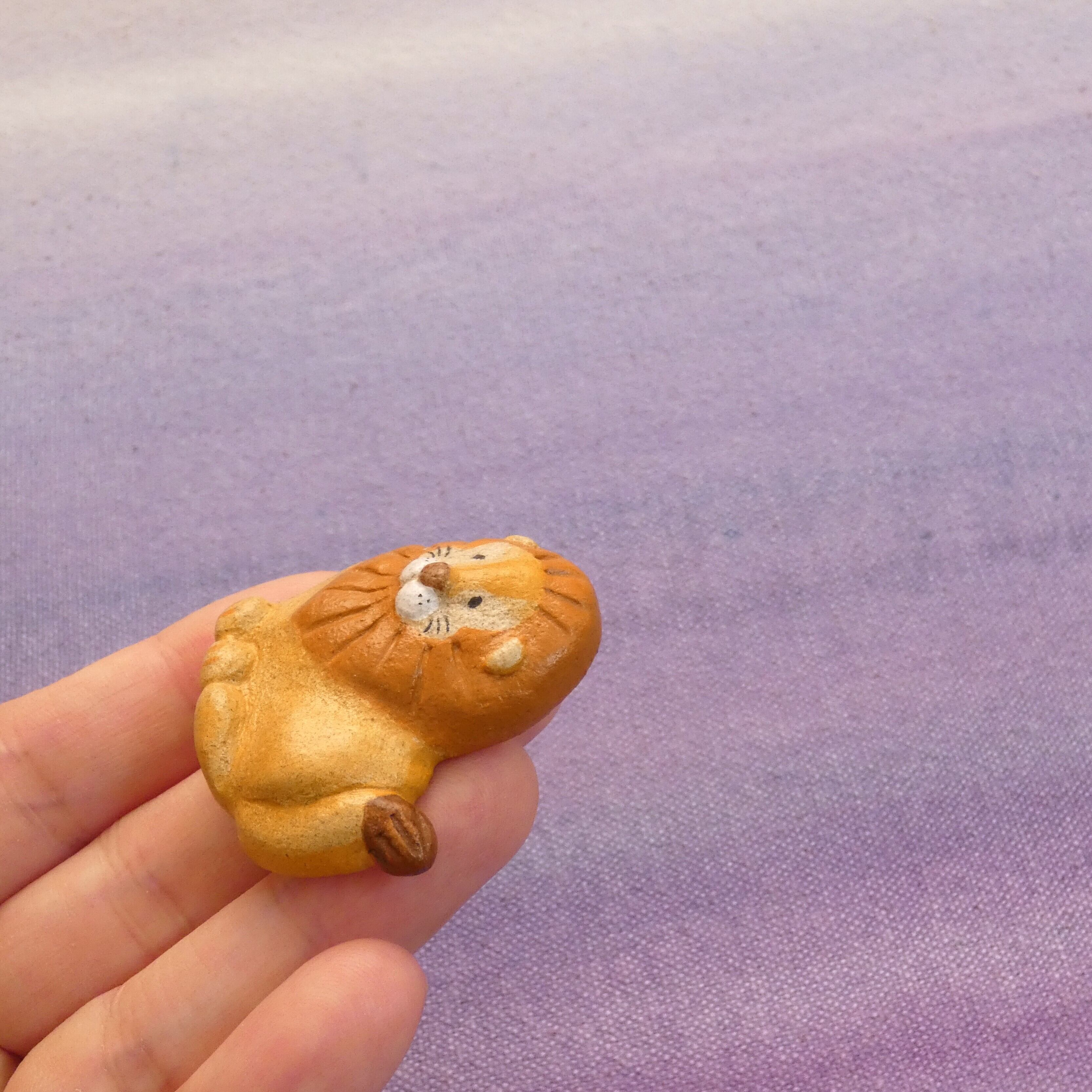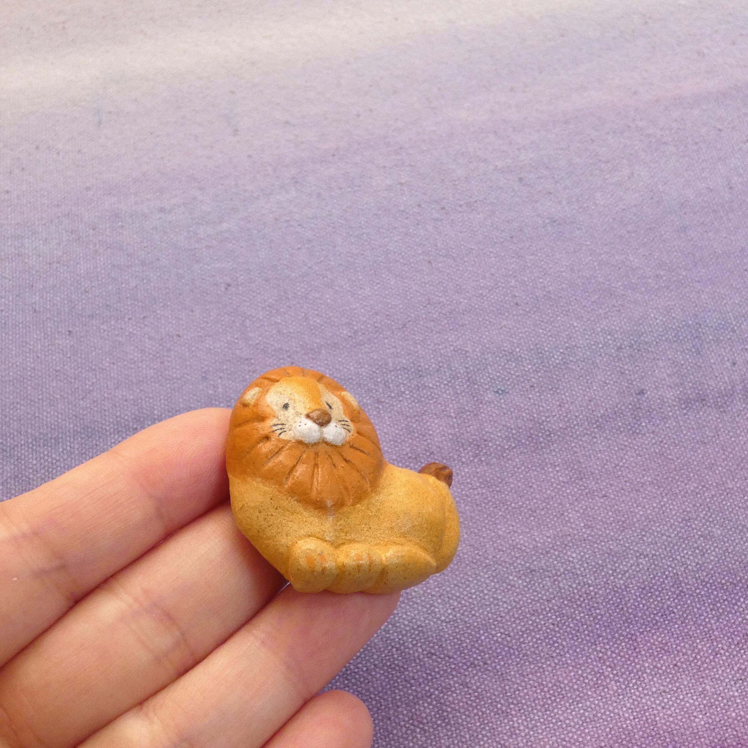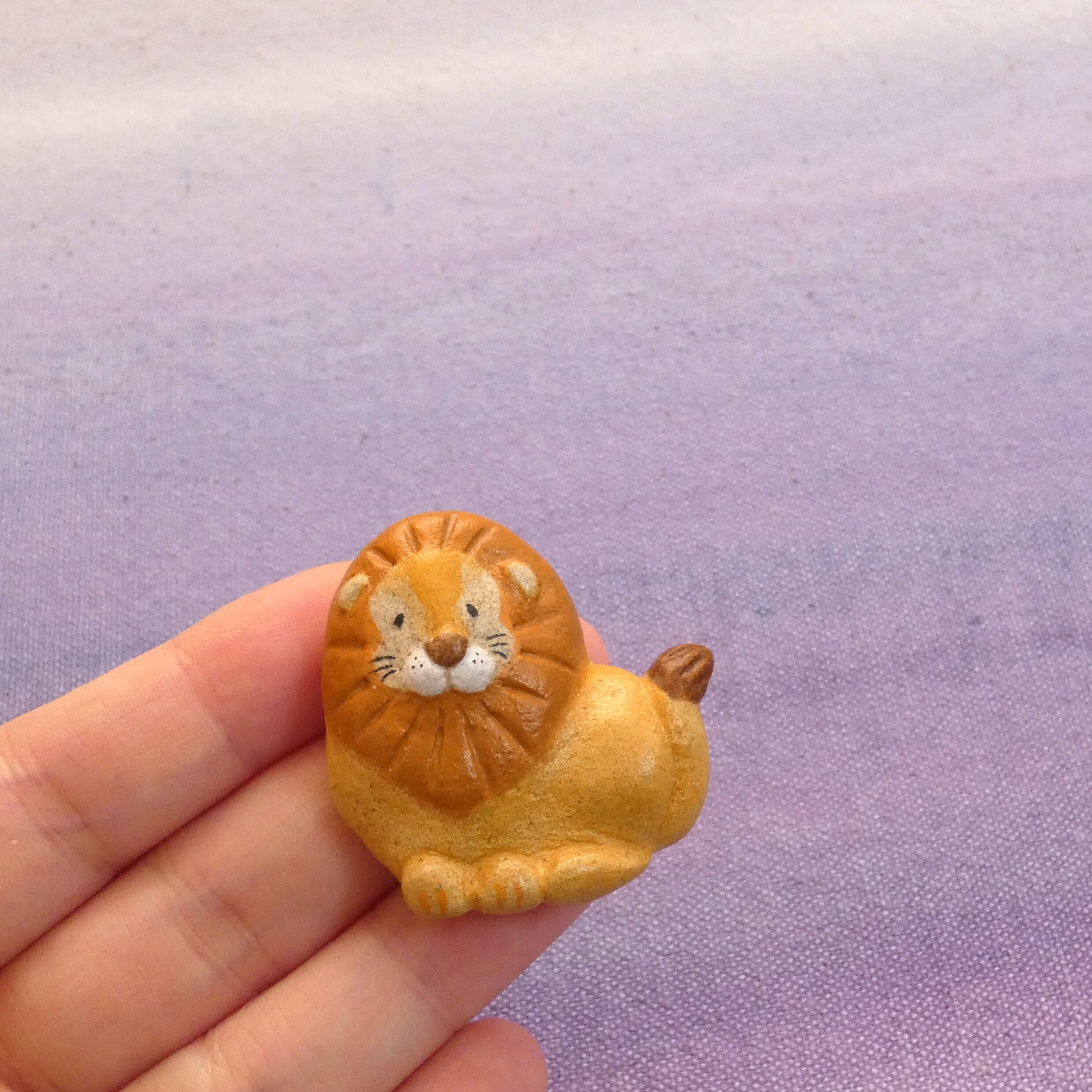 オーブン陶土で作った【ライオンの帯留めとブローチ】です。