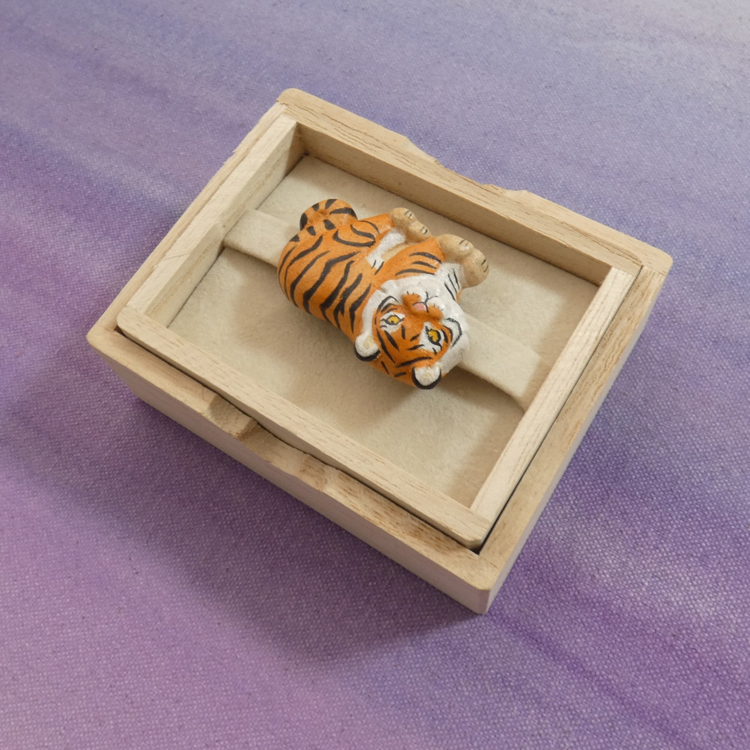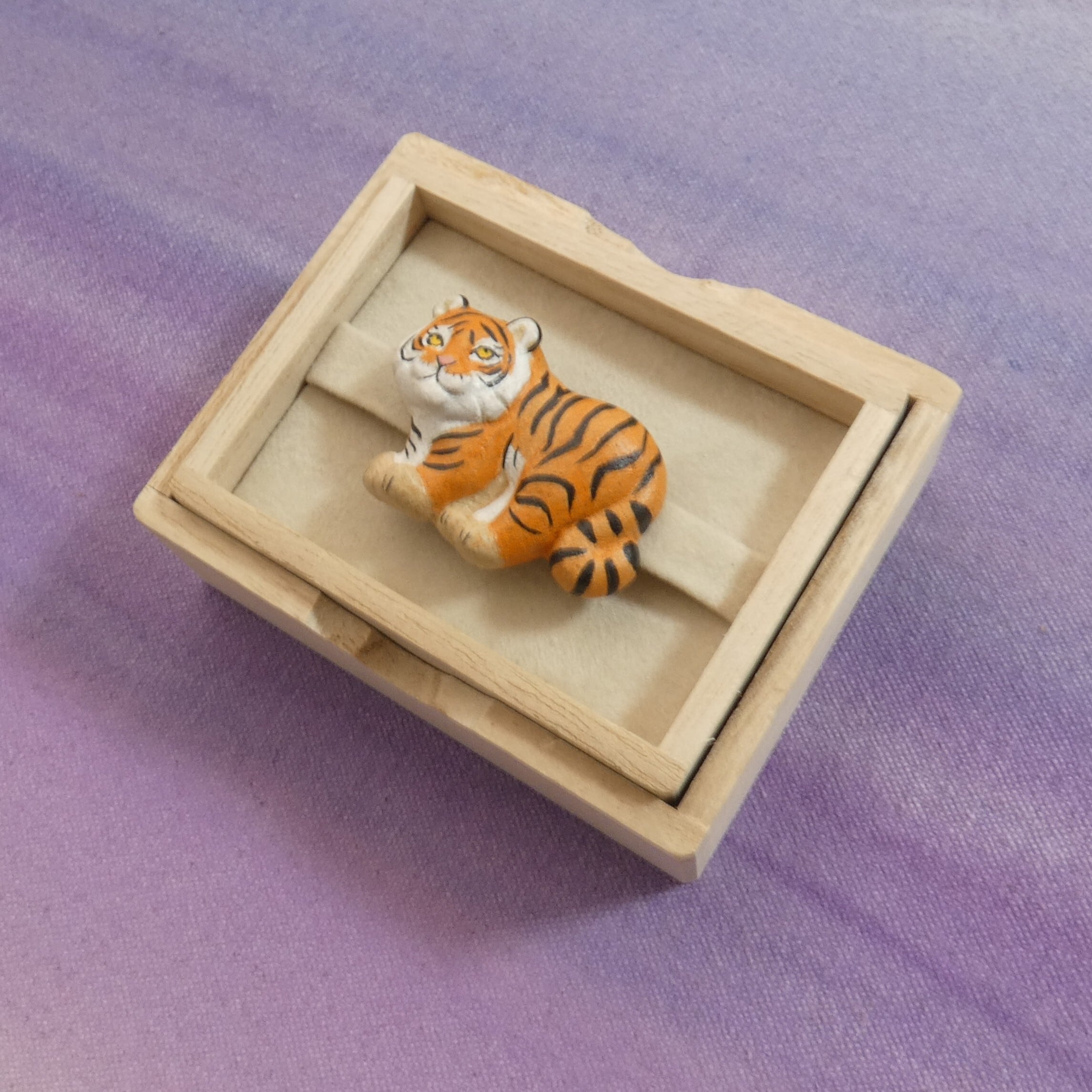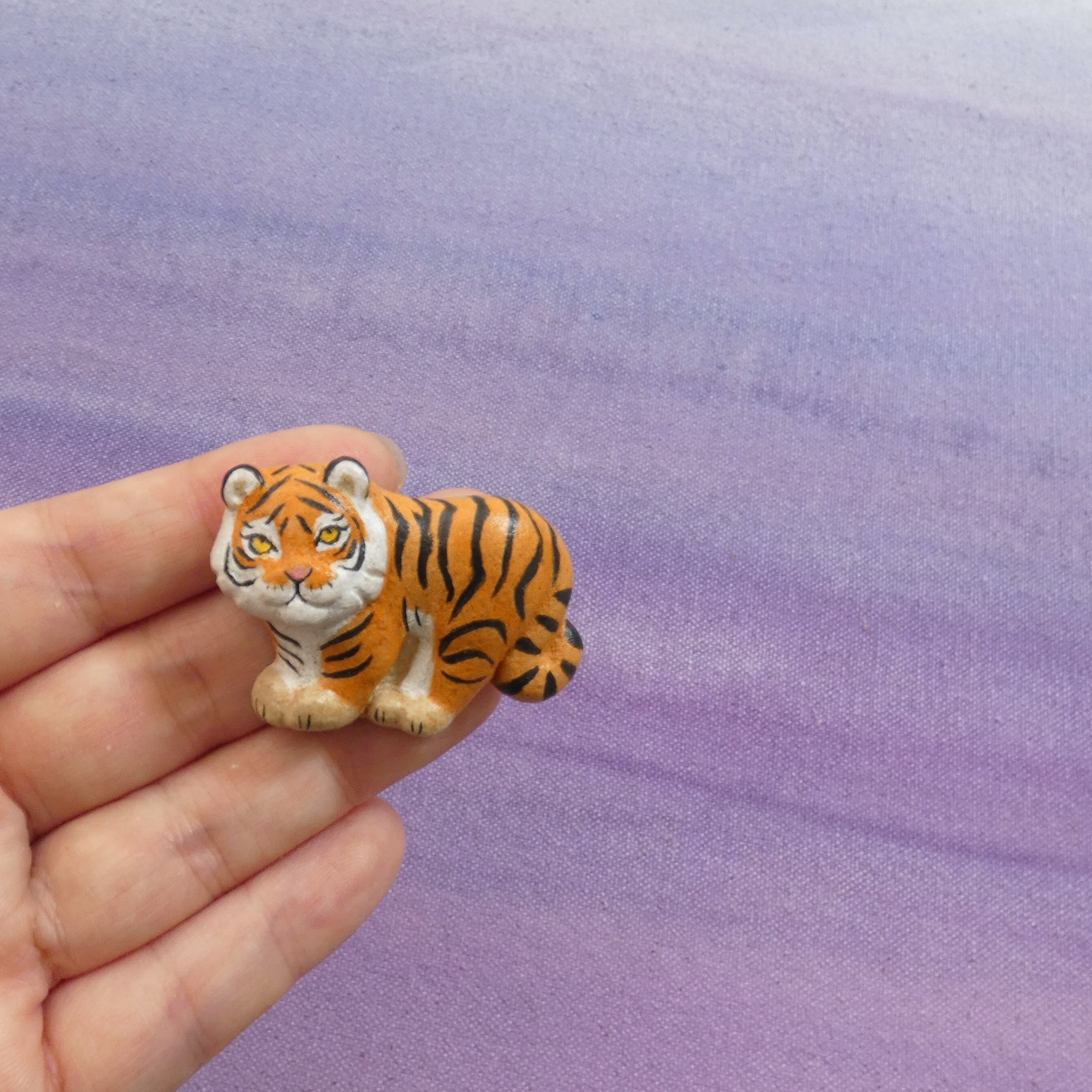 オーブン陶土で作った【虎(トラ)の帯留めとブローチ】です。