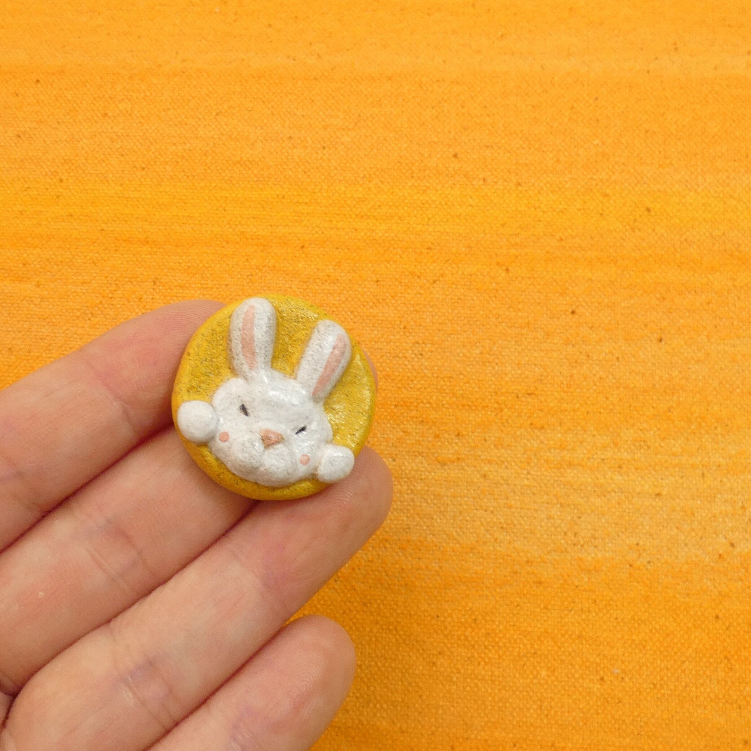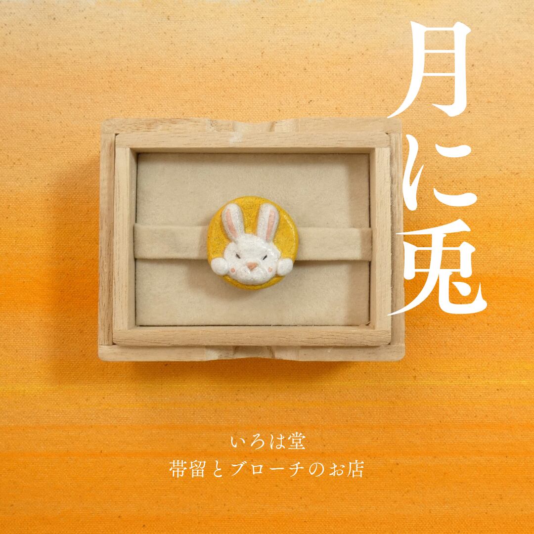 オーブン陶土で作った【月と兎(ウサギ)の帯留めとブローチ】です。