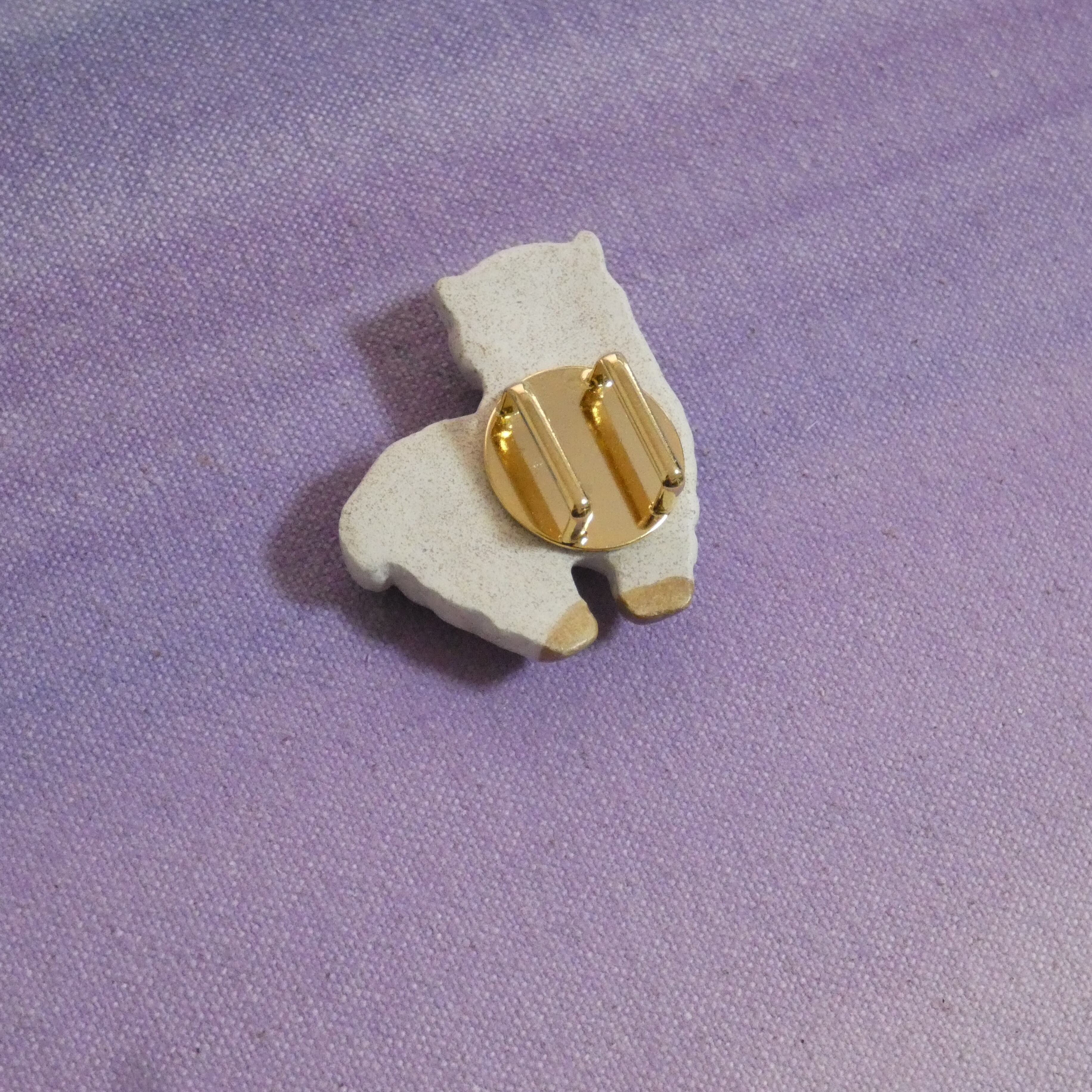 オーブン陶土で作った【アルパカの帯留めとブローチ】です。