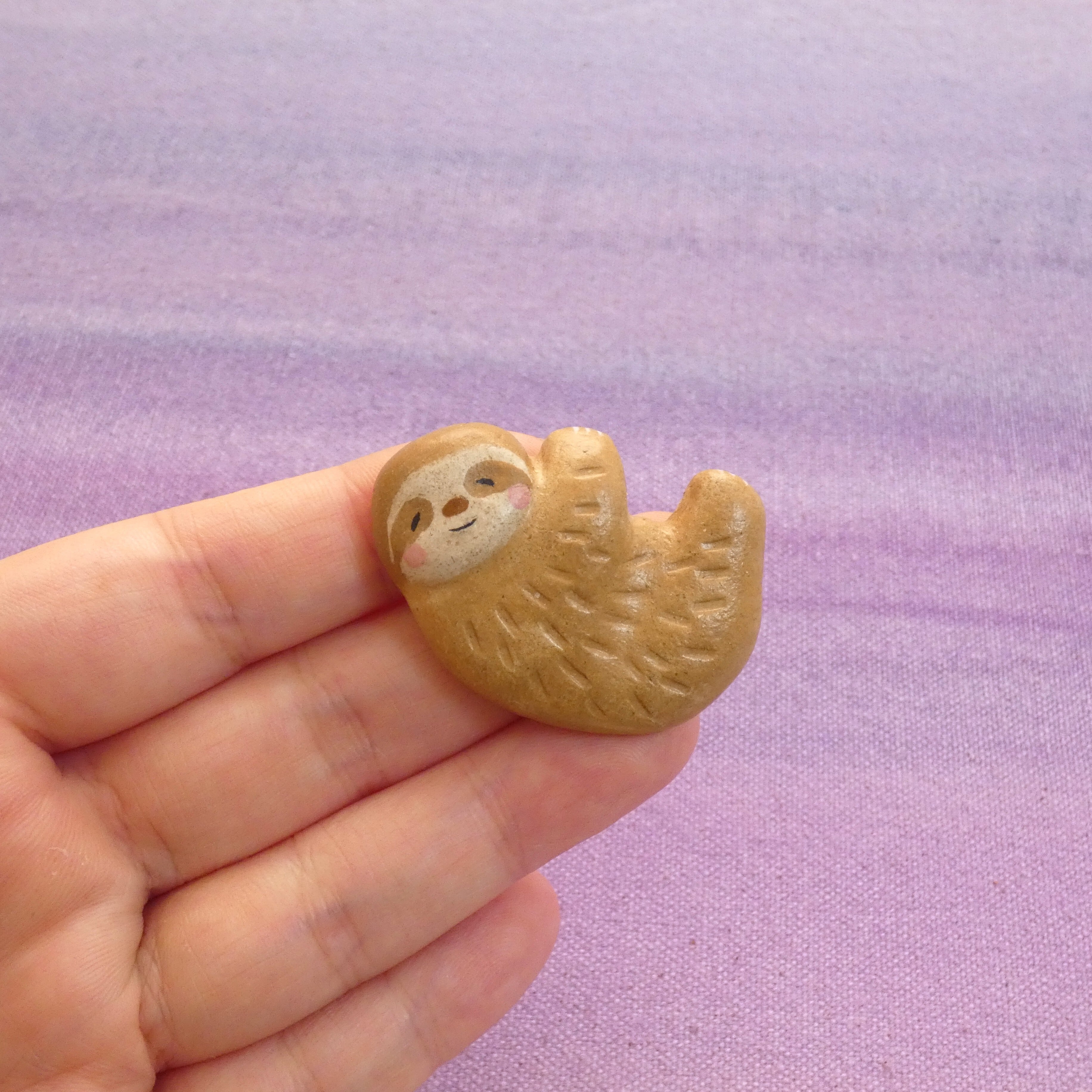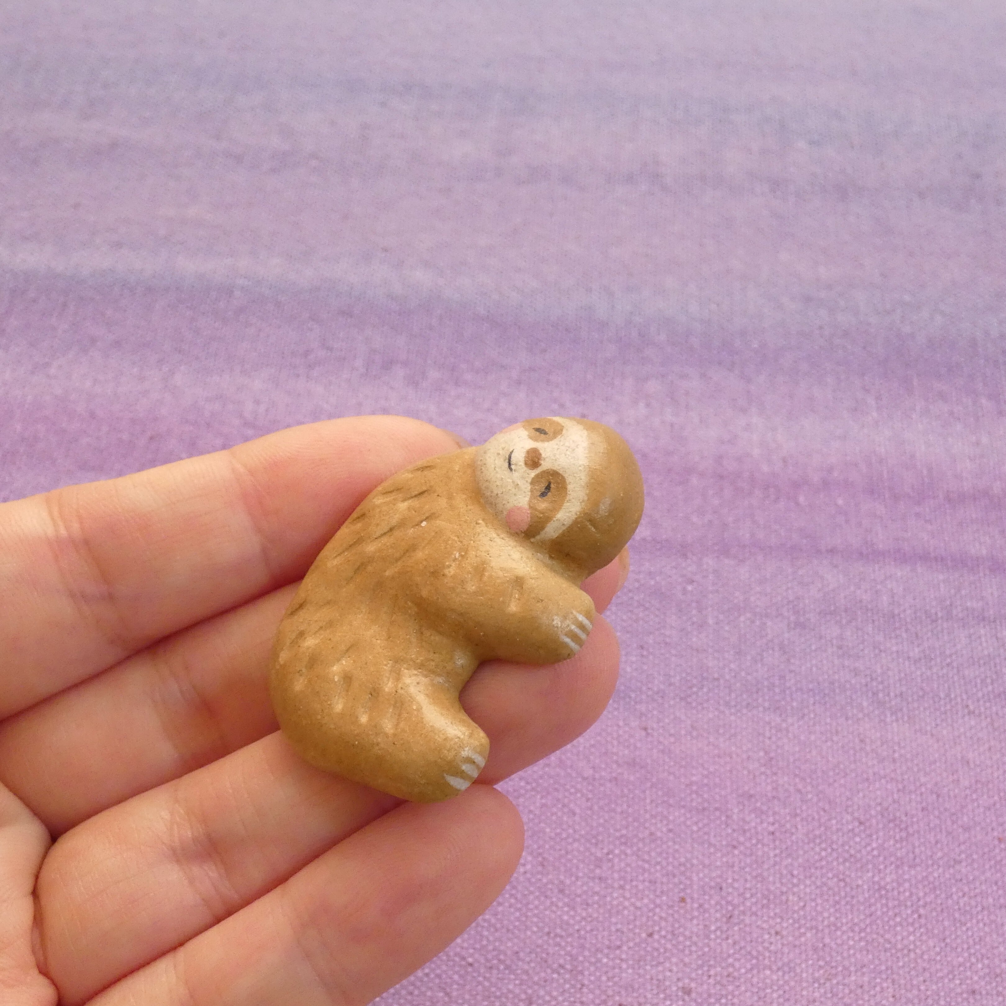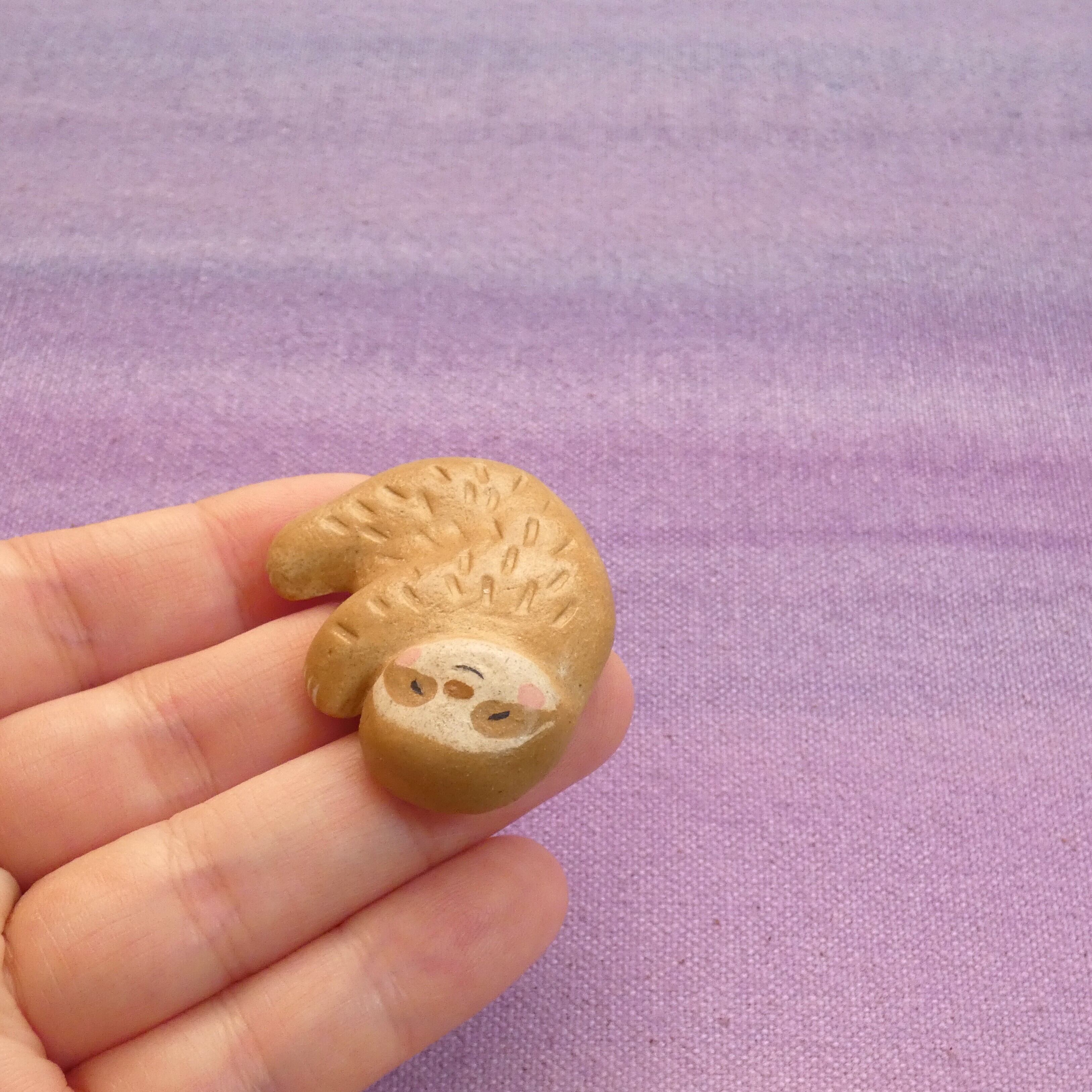 オーブン陶土で作った【ナマケモノの帯留めとブローチ】です。
