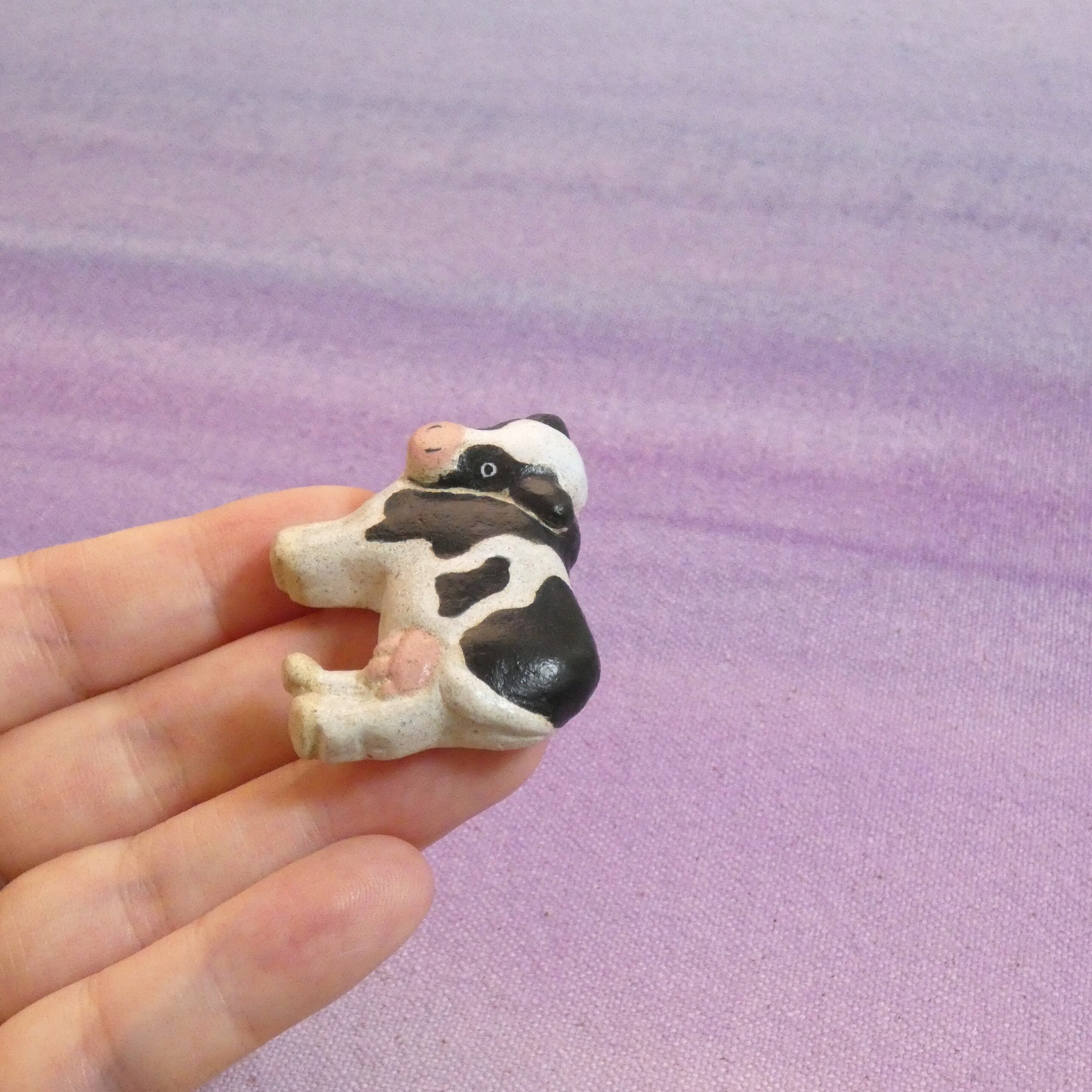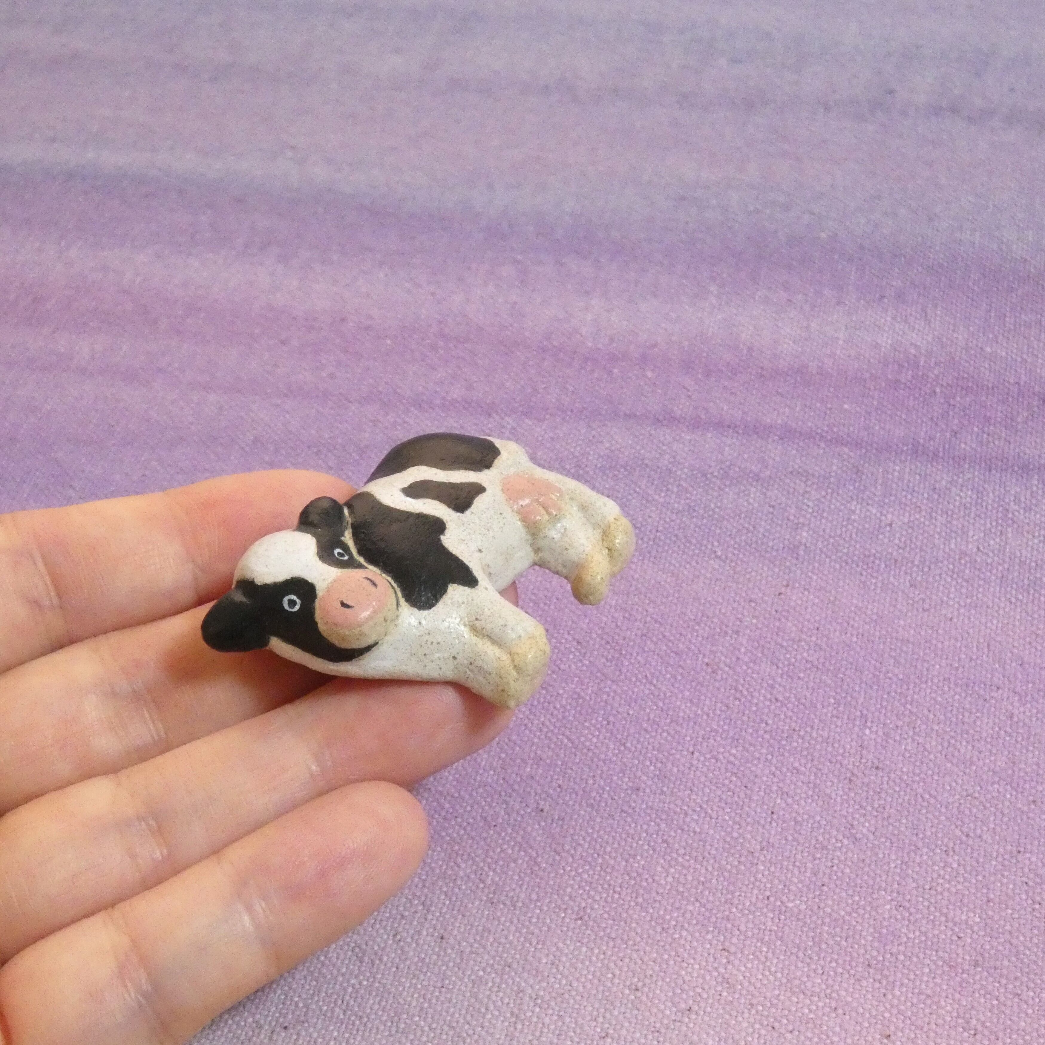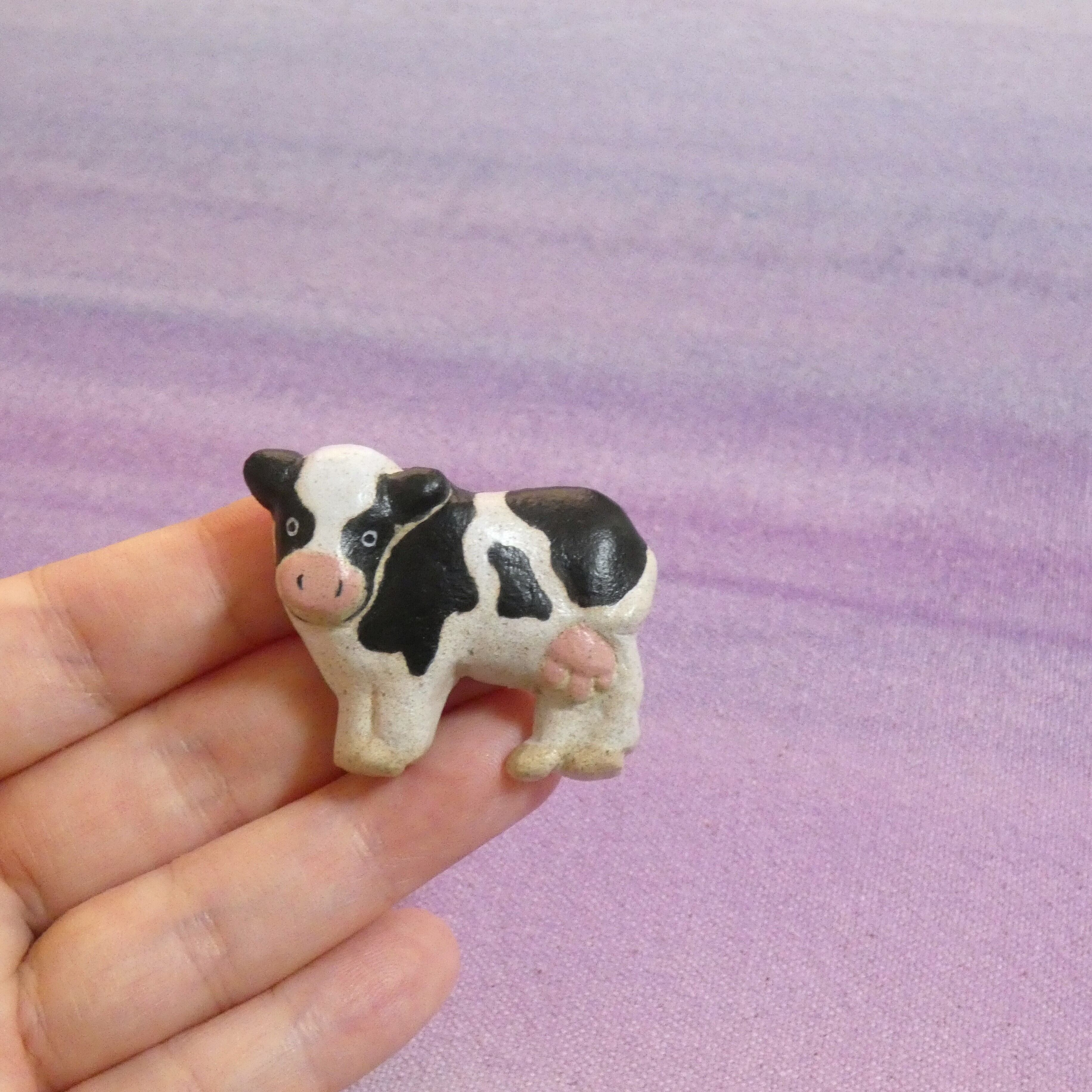 オーブン陶土で作った【牛(ウシ)の帯留めとブローチ】です。