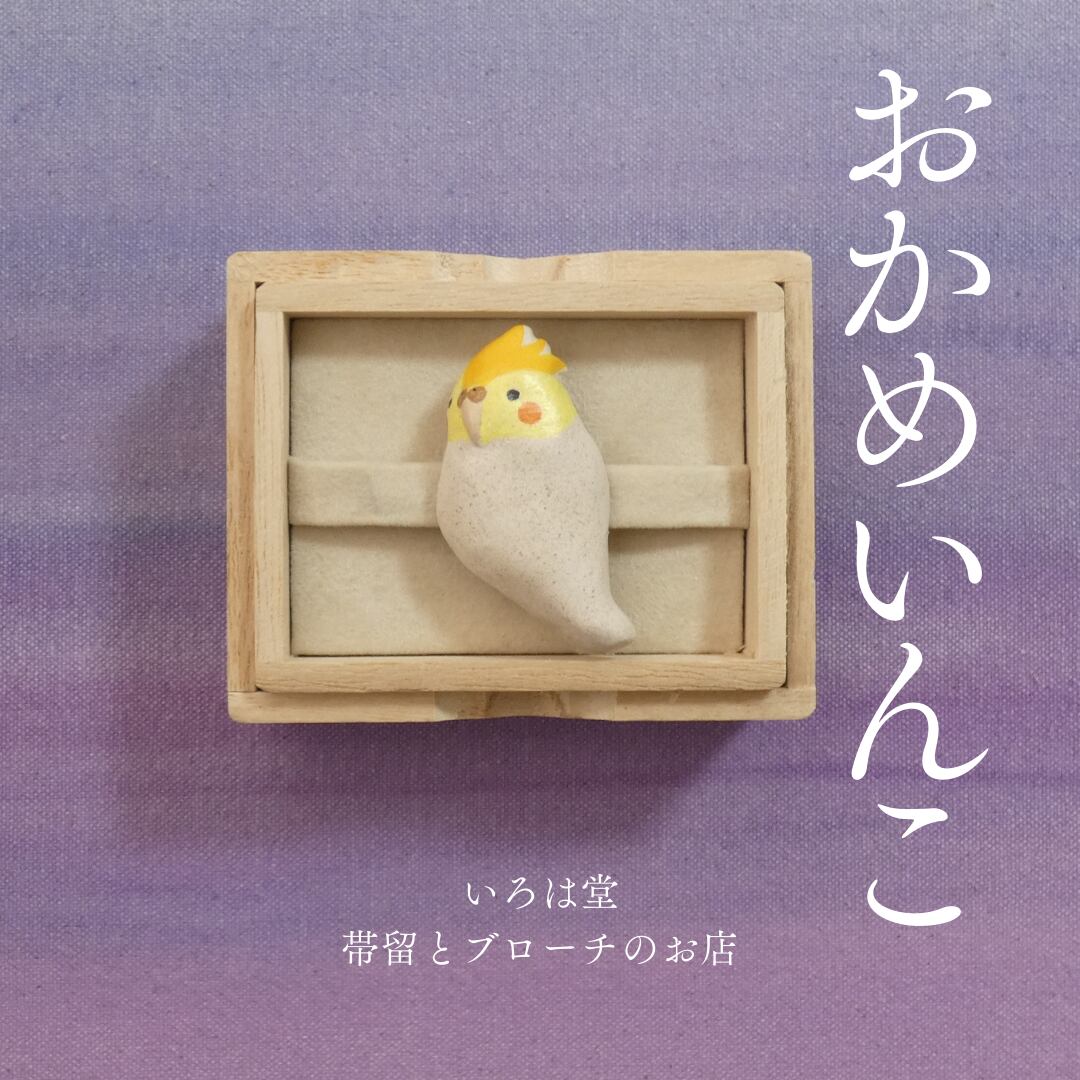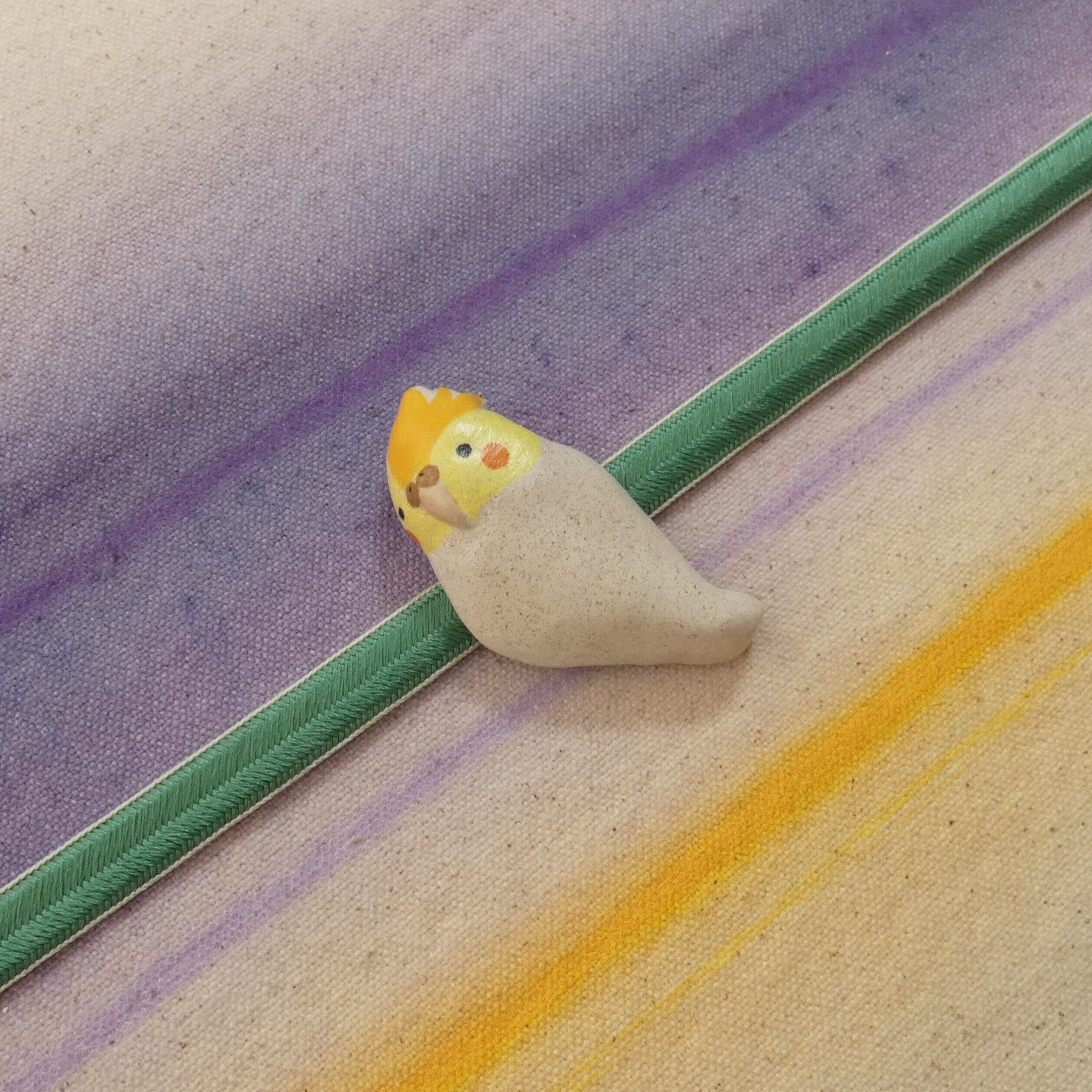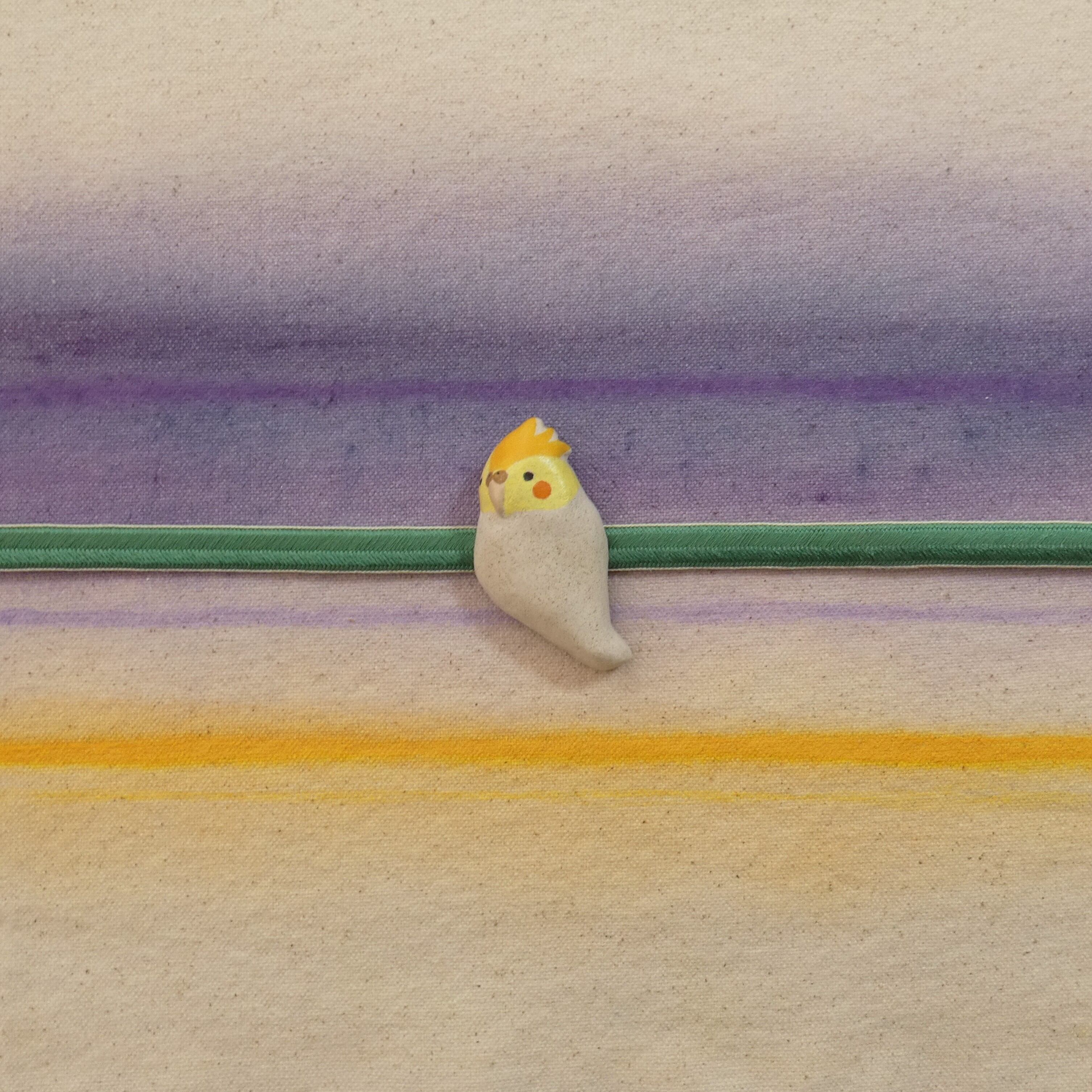 オーブン陶土で作った【オウム(オカメインコ)の帯留めとブローチ】です。