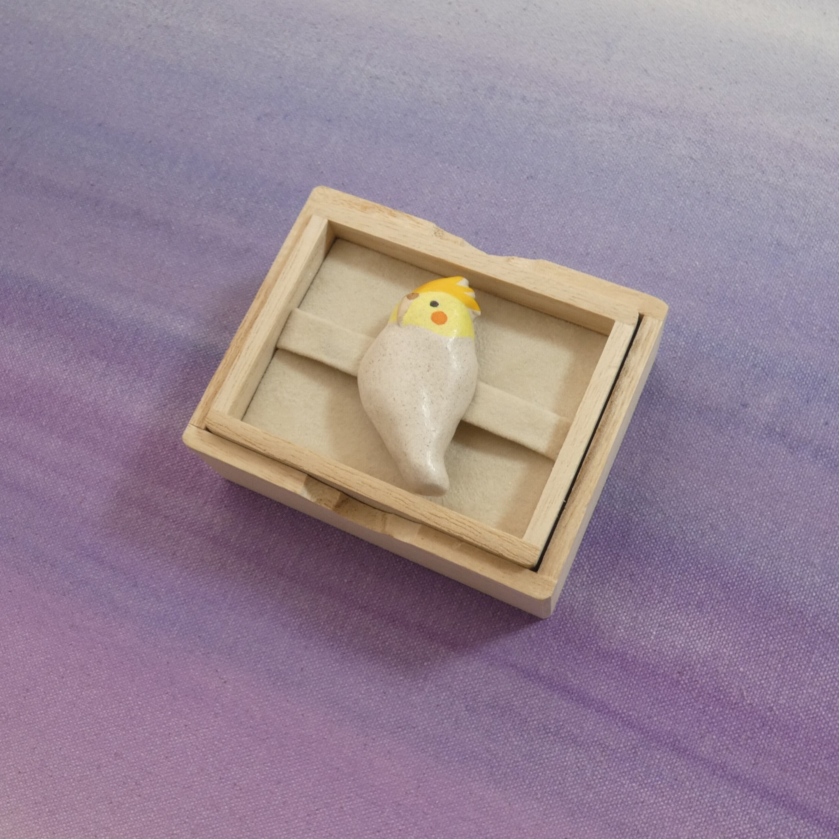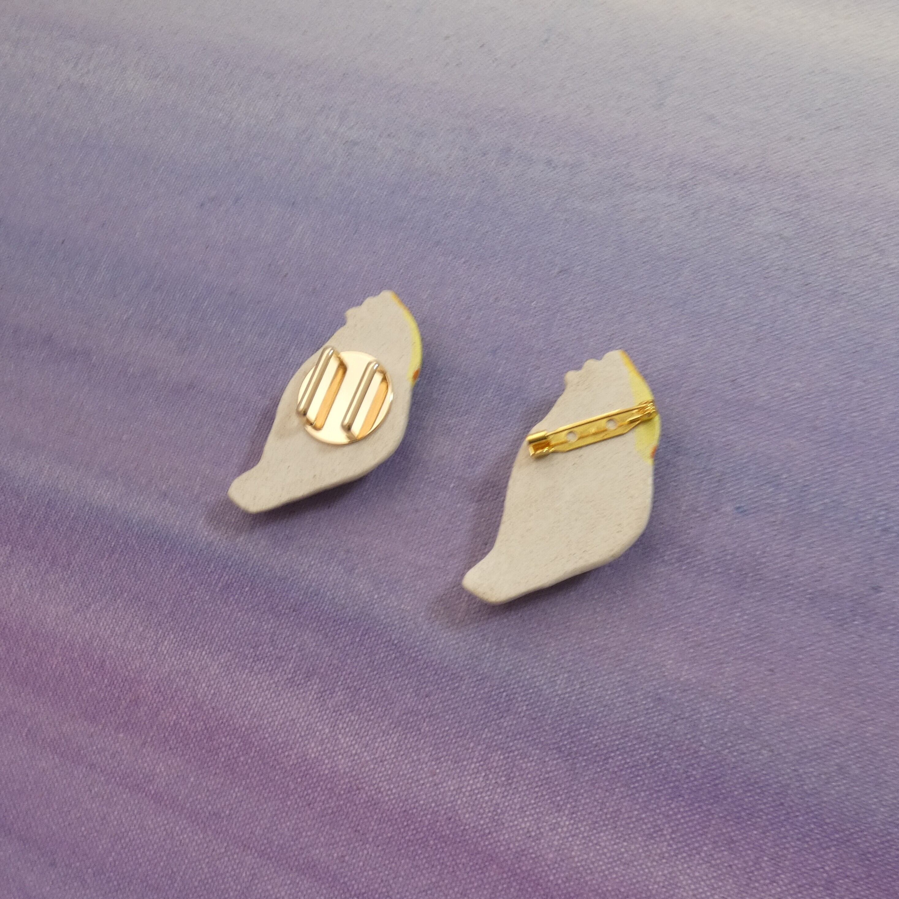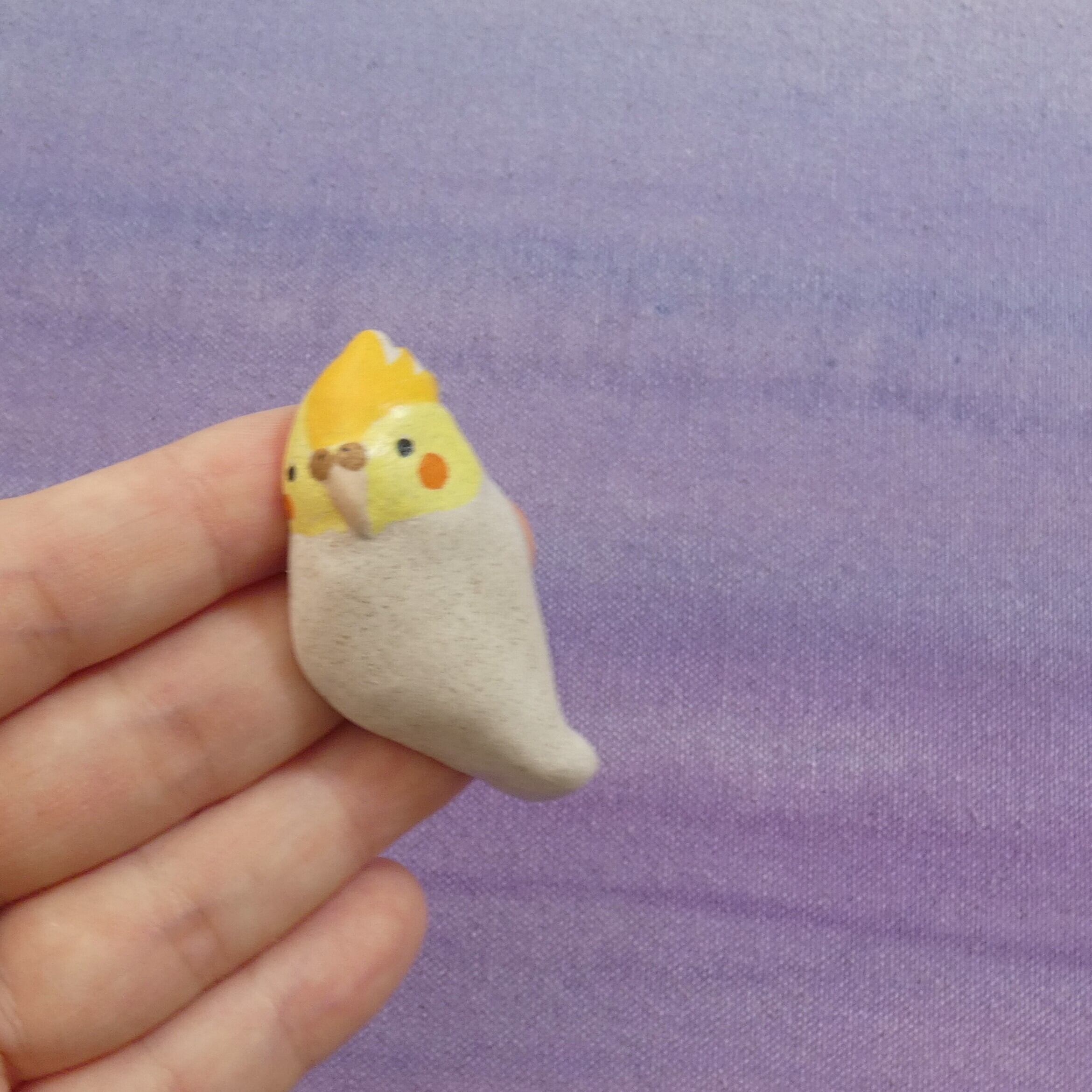 オーブン陶土で作った【オウム(オカメインコ)の帯留めとブローチ】です。