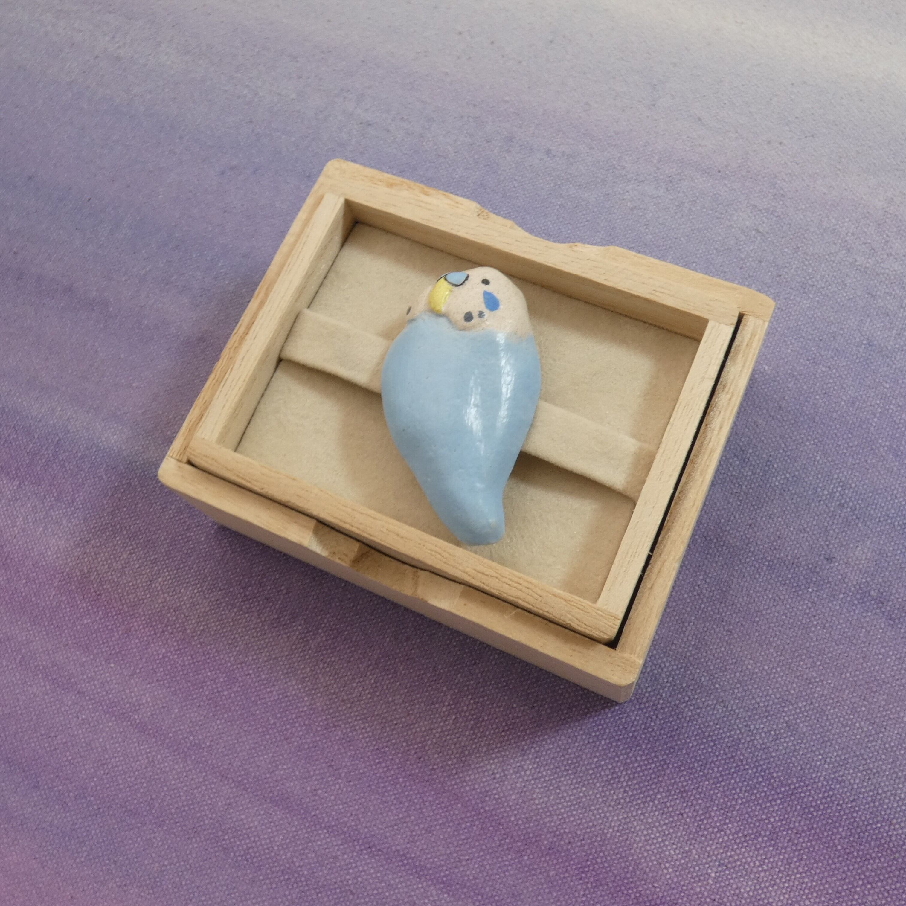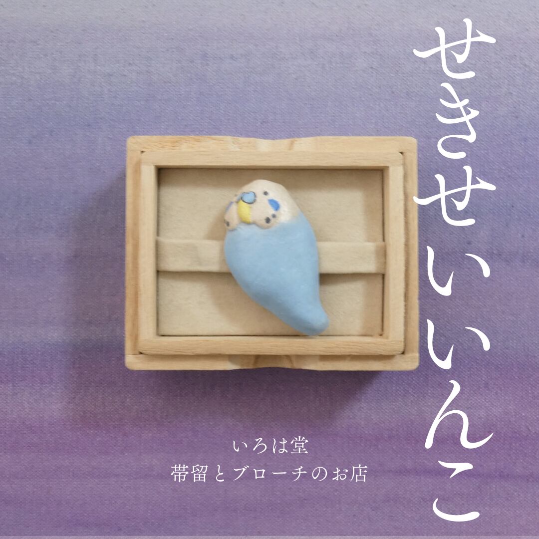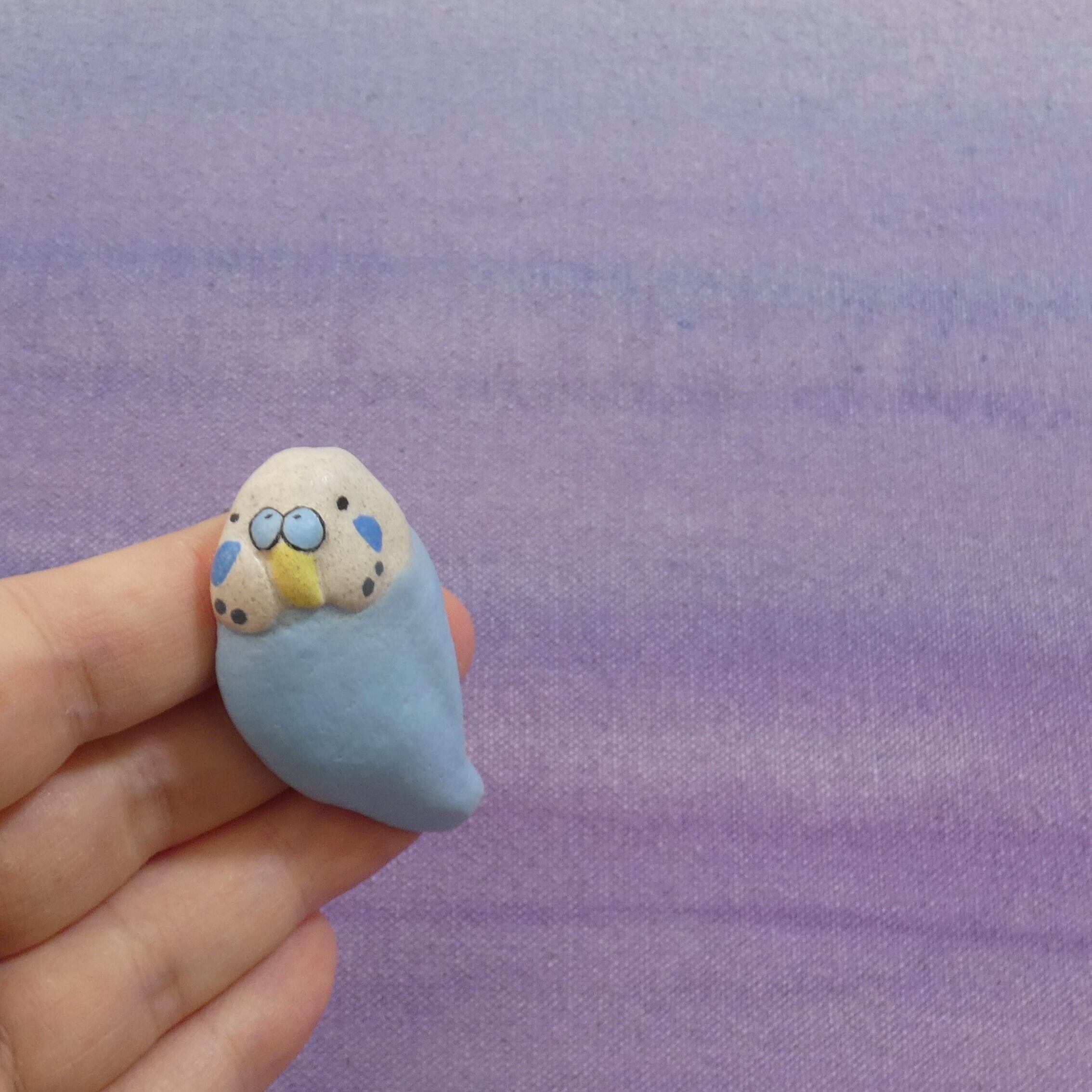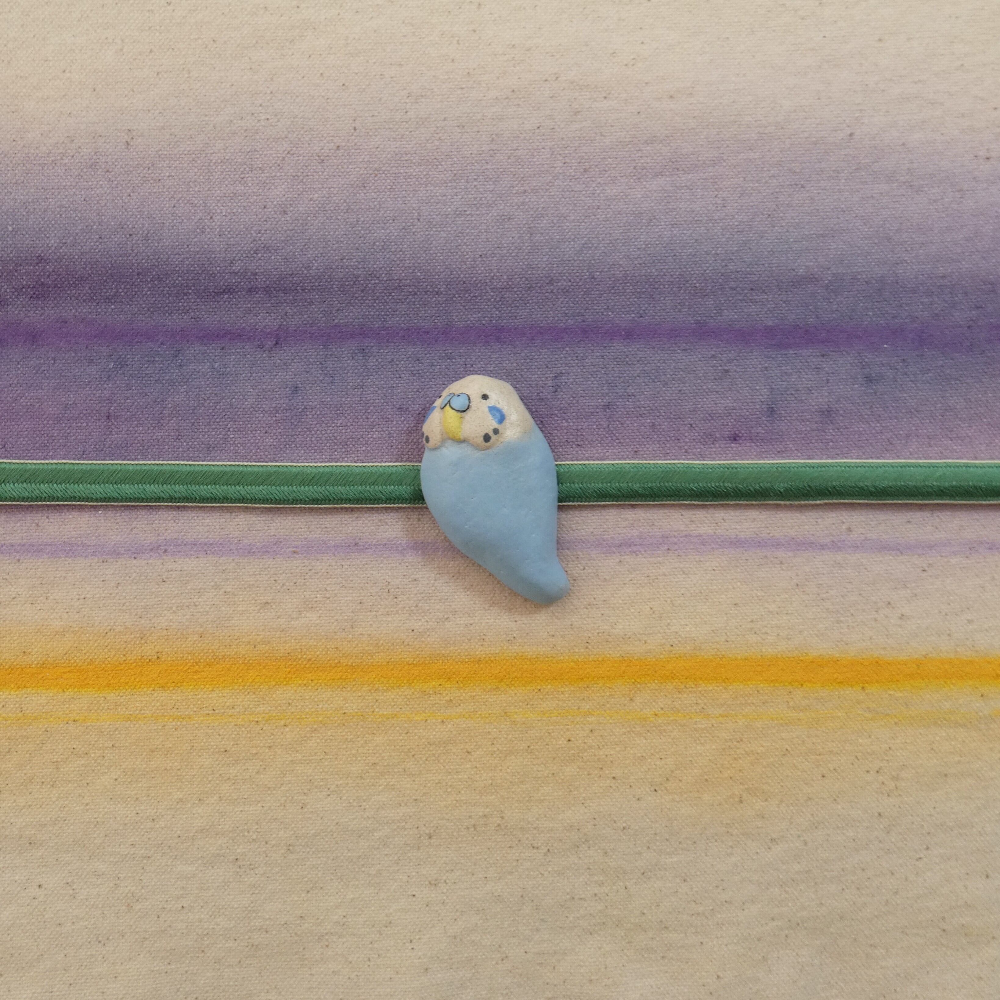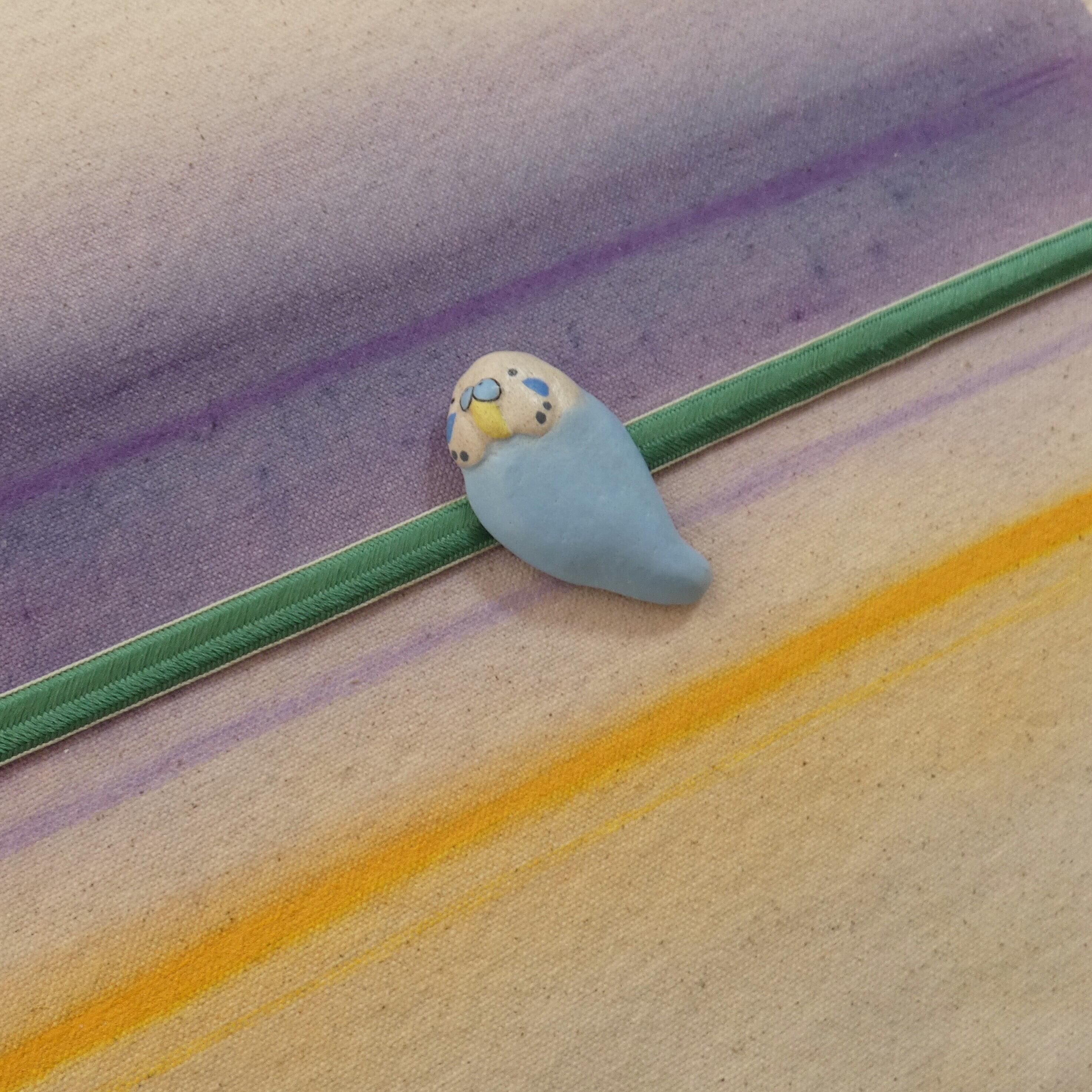オーブン陶土で作った【インコ(セキセイインコ)の帯留めとブローチ】です。