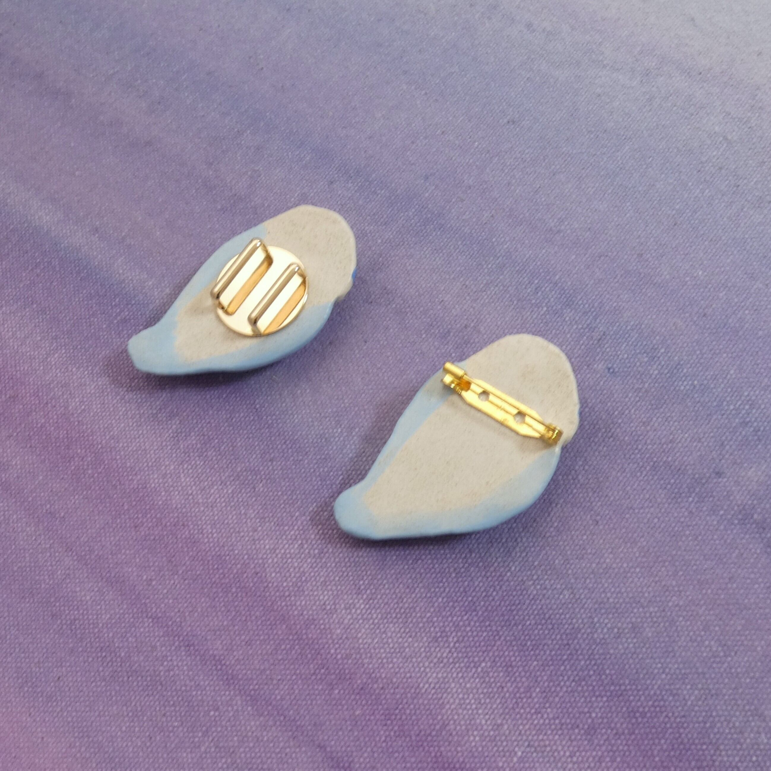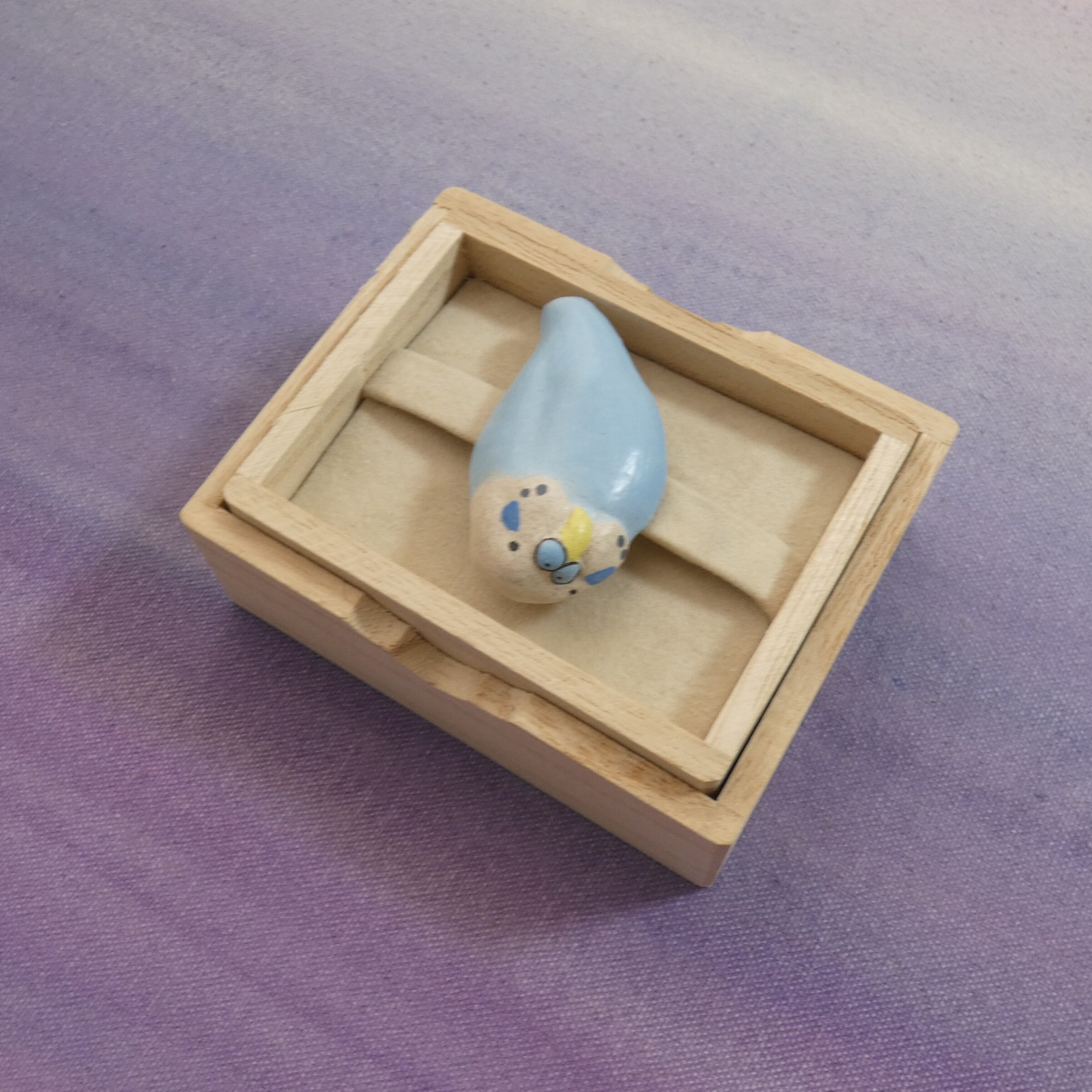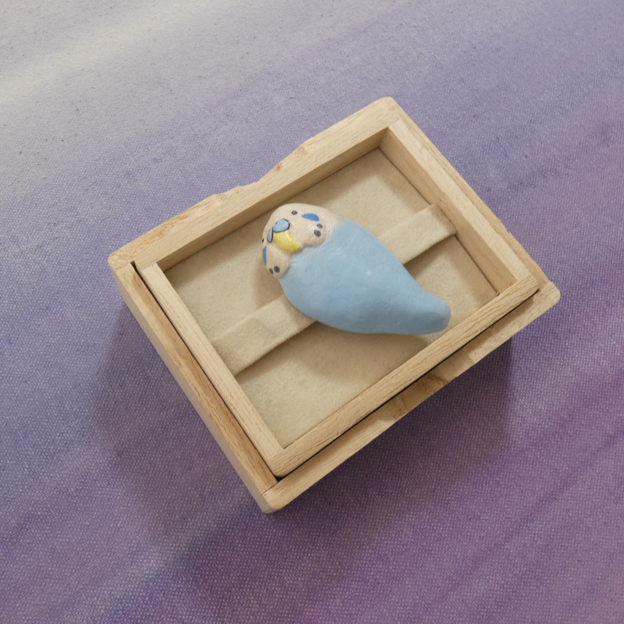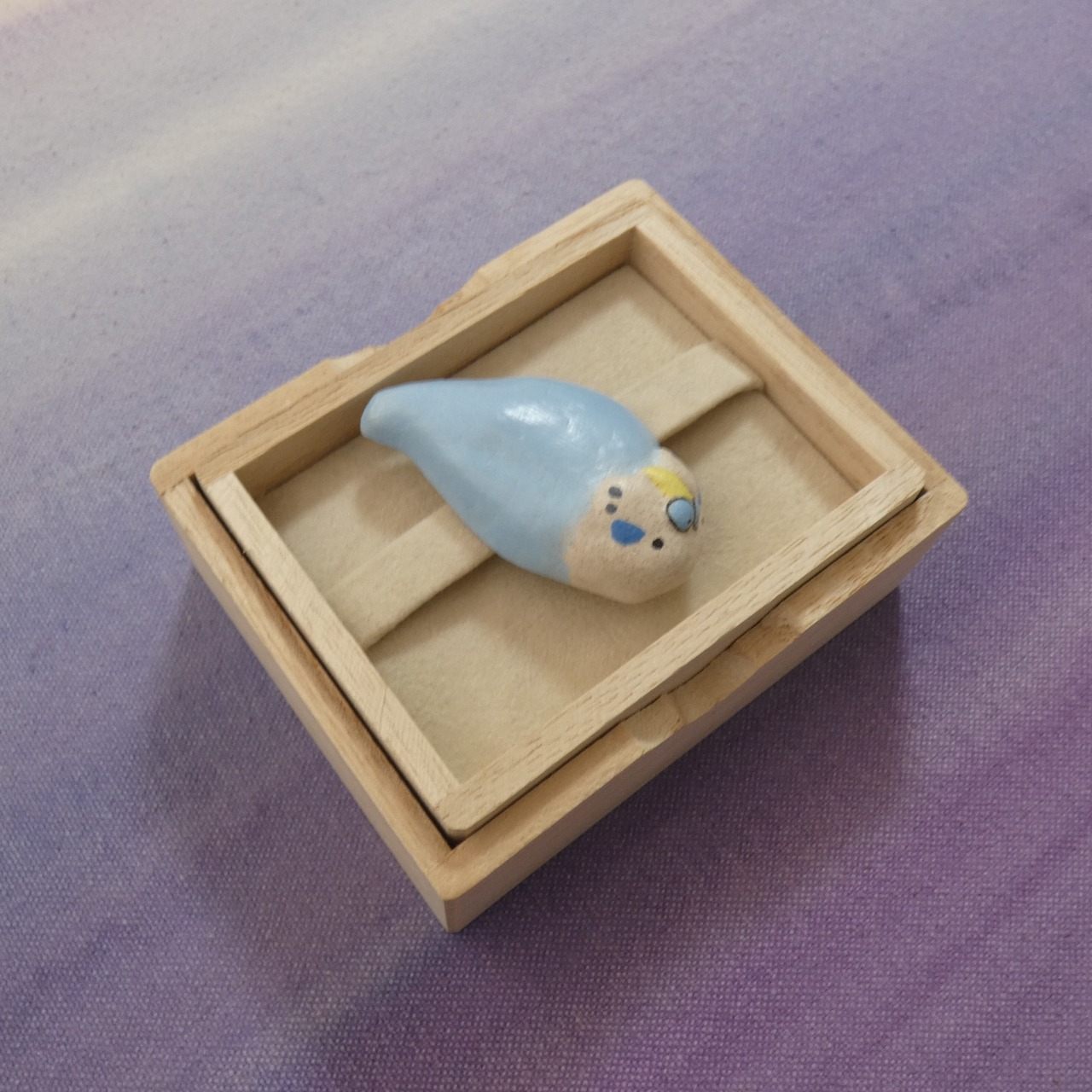 オーブン陶土で作った【インコ(セキセイインコ)の帯留めとブローチ】です。