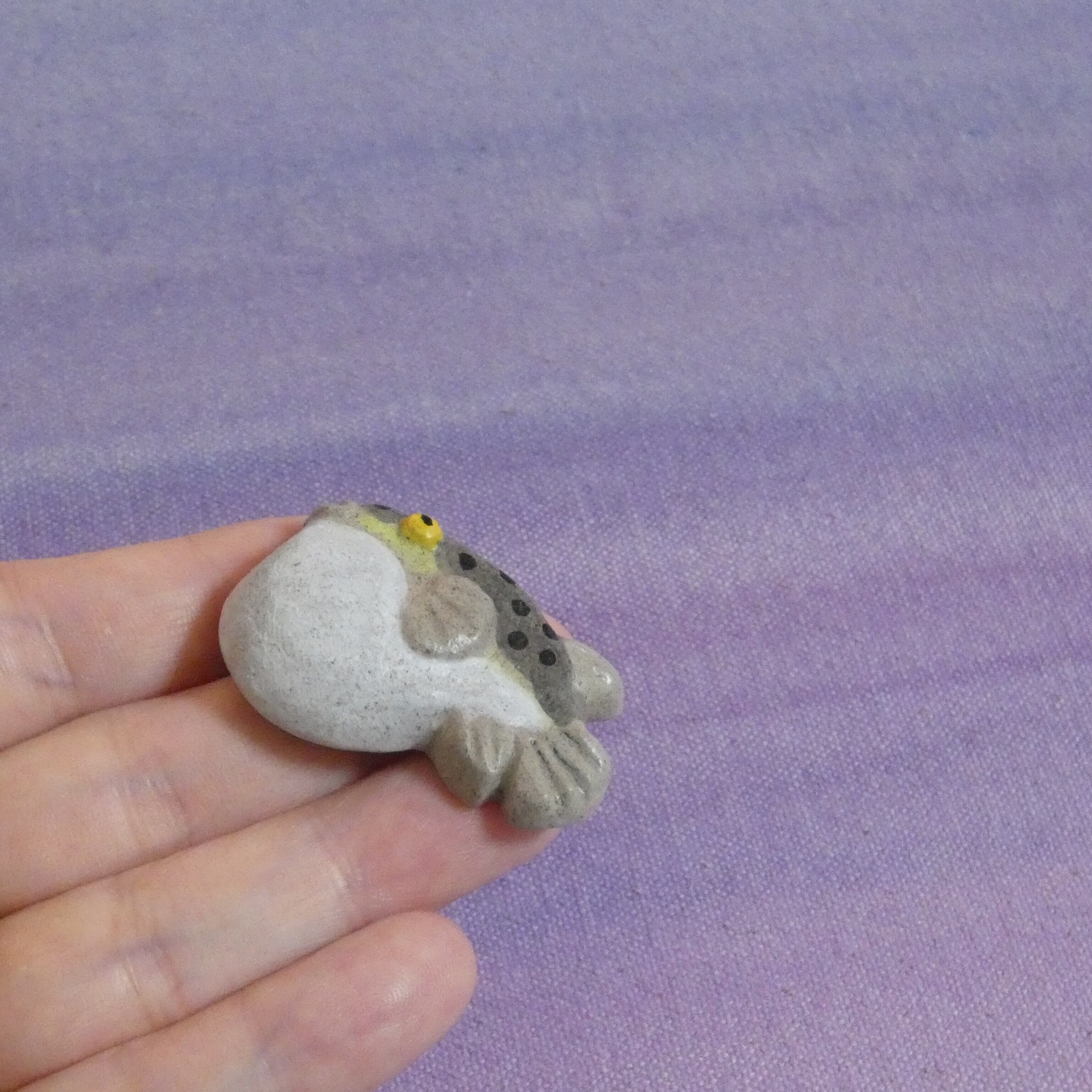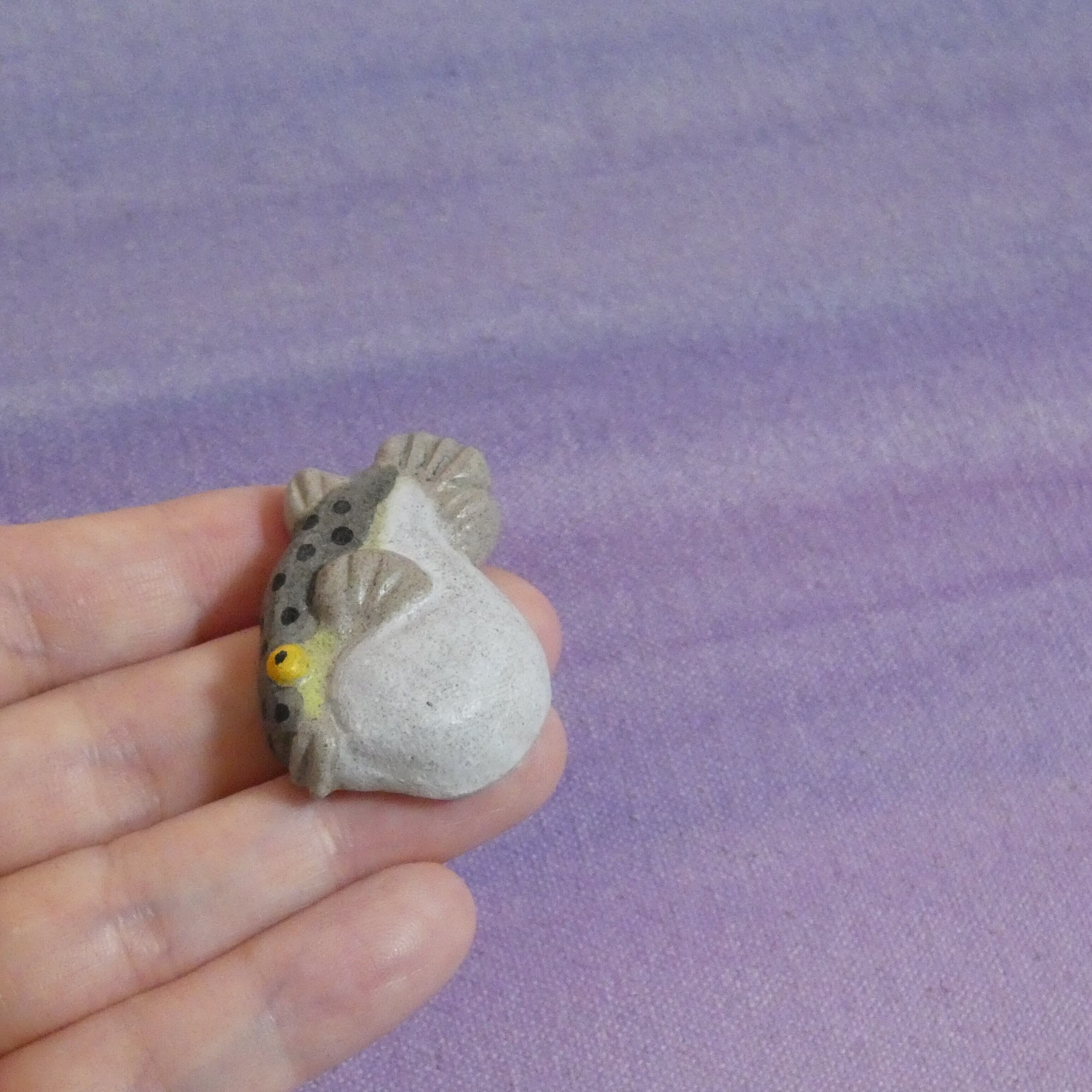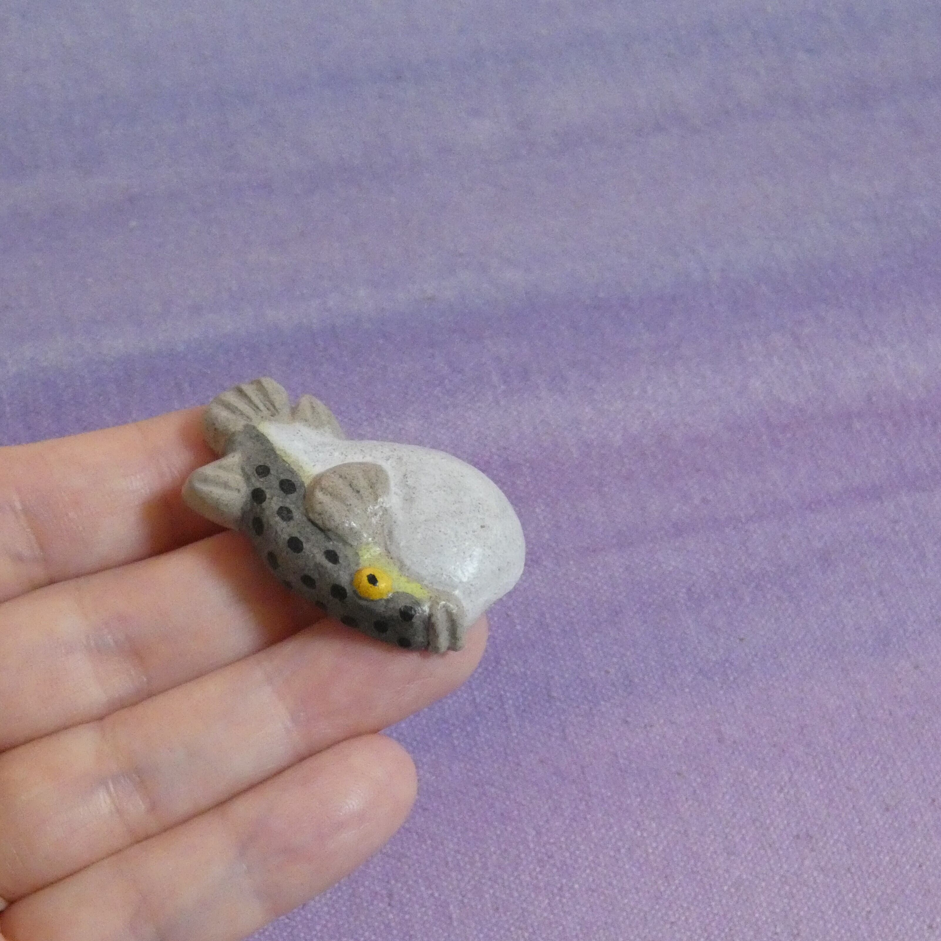 オーブン陶土で作った【フグ(とらふぐ)の帯留めとブローチ】です。