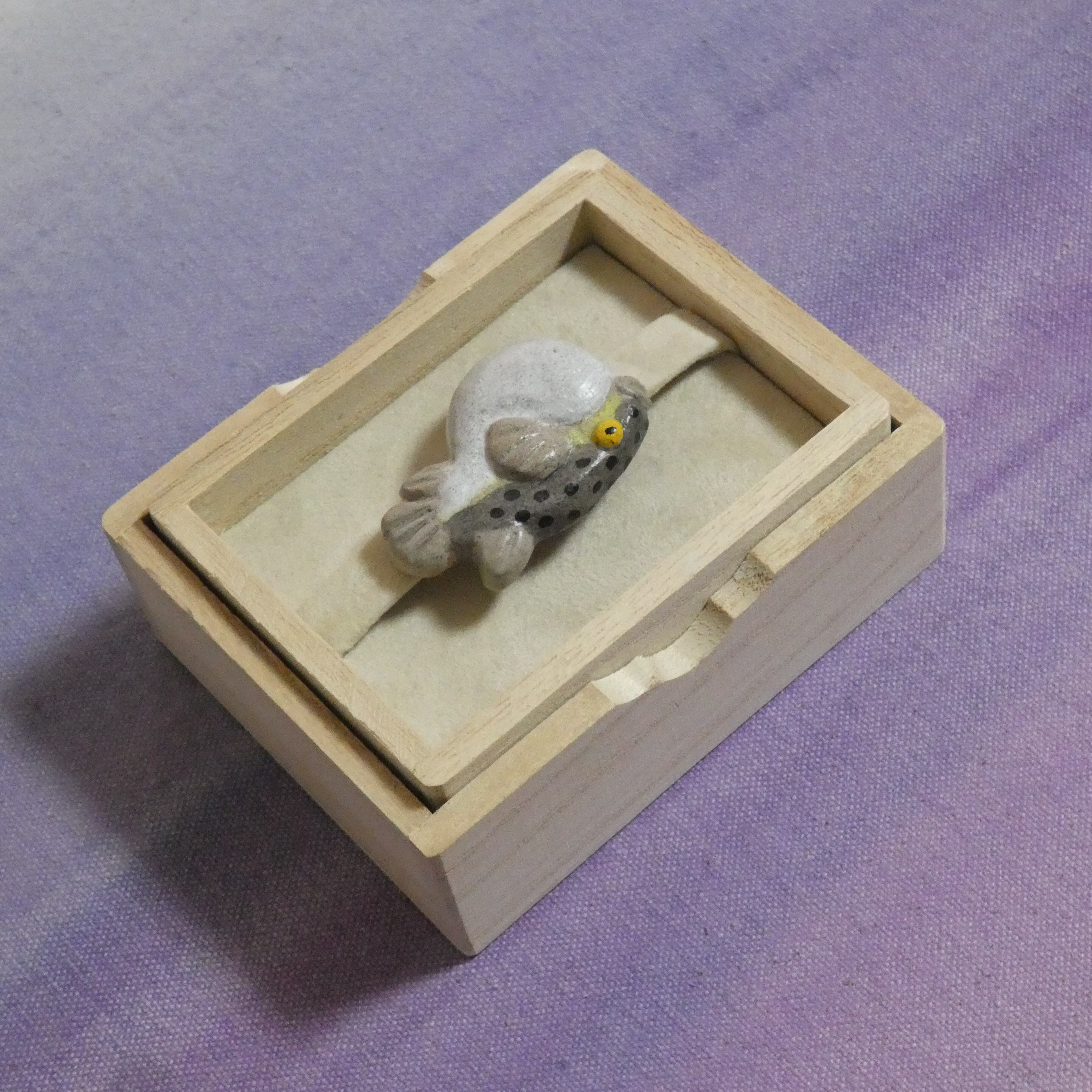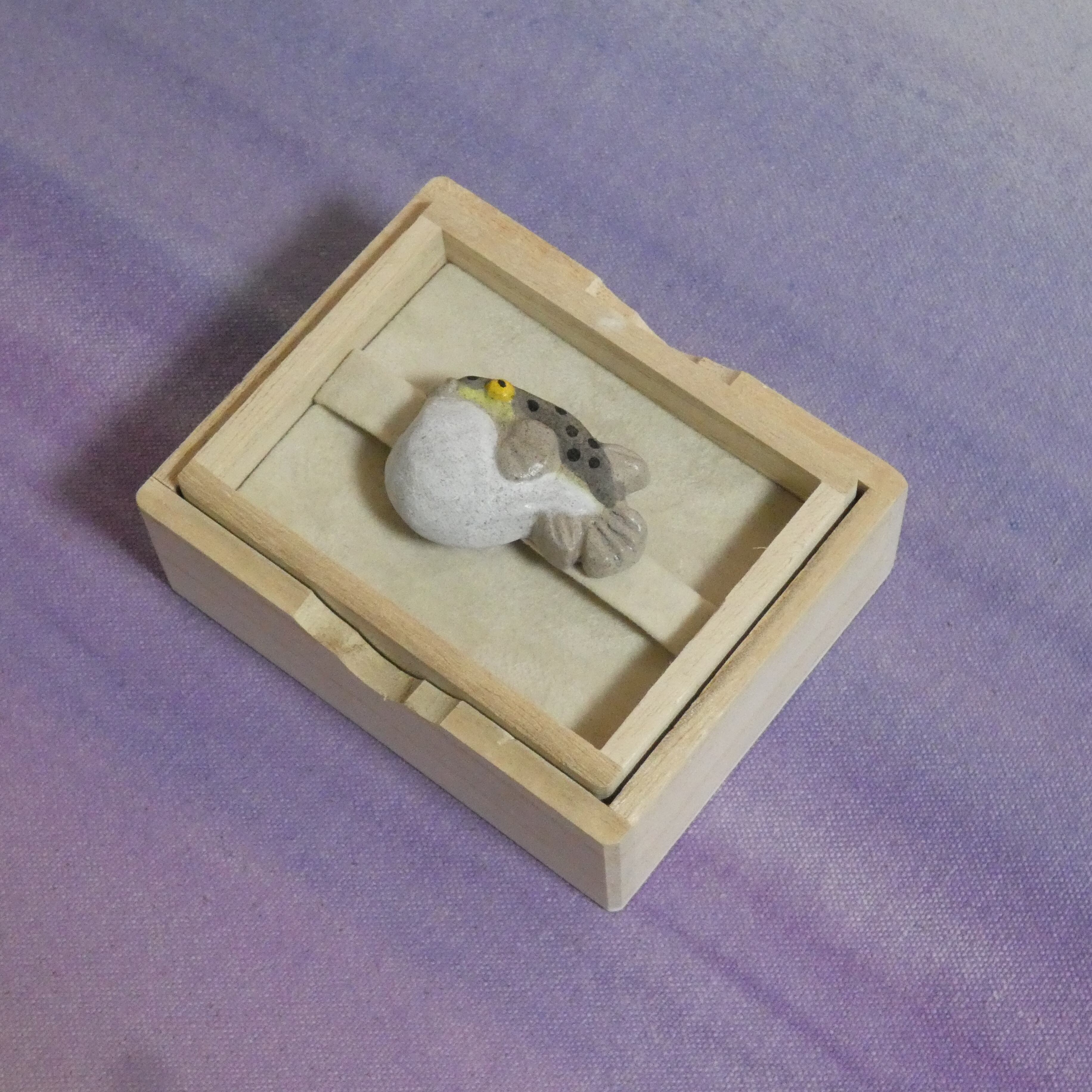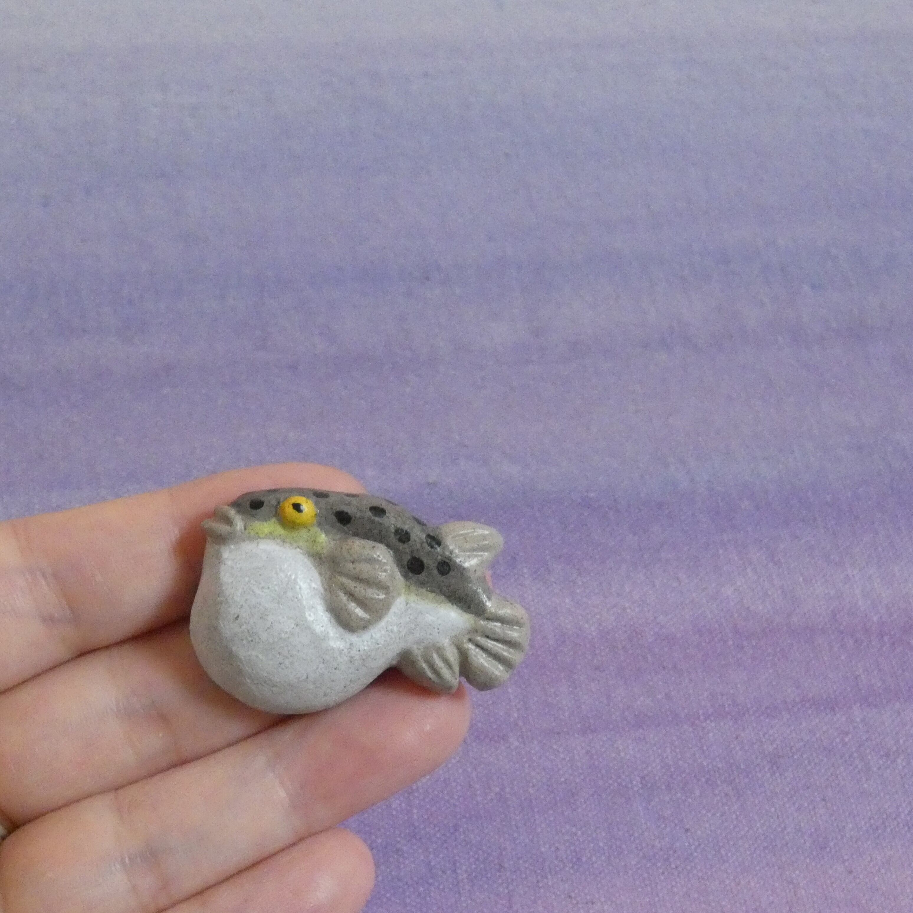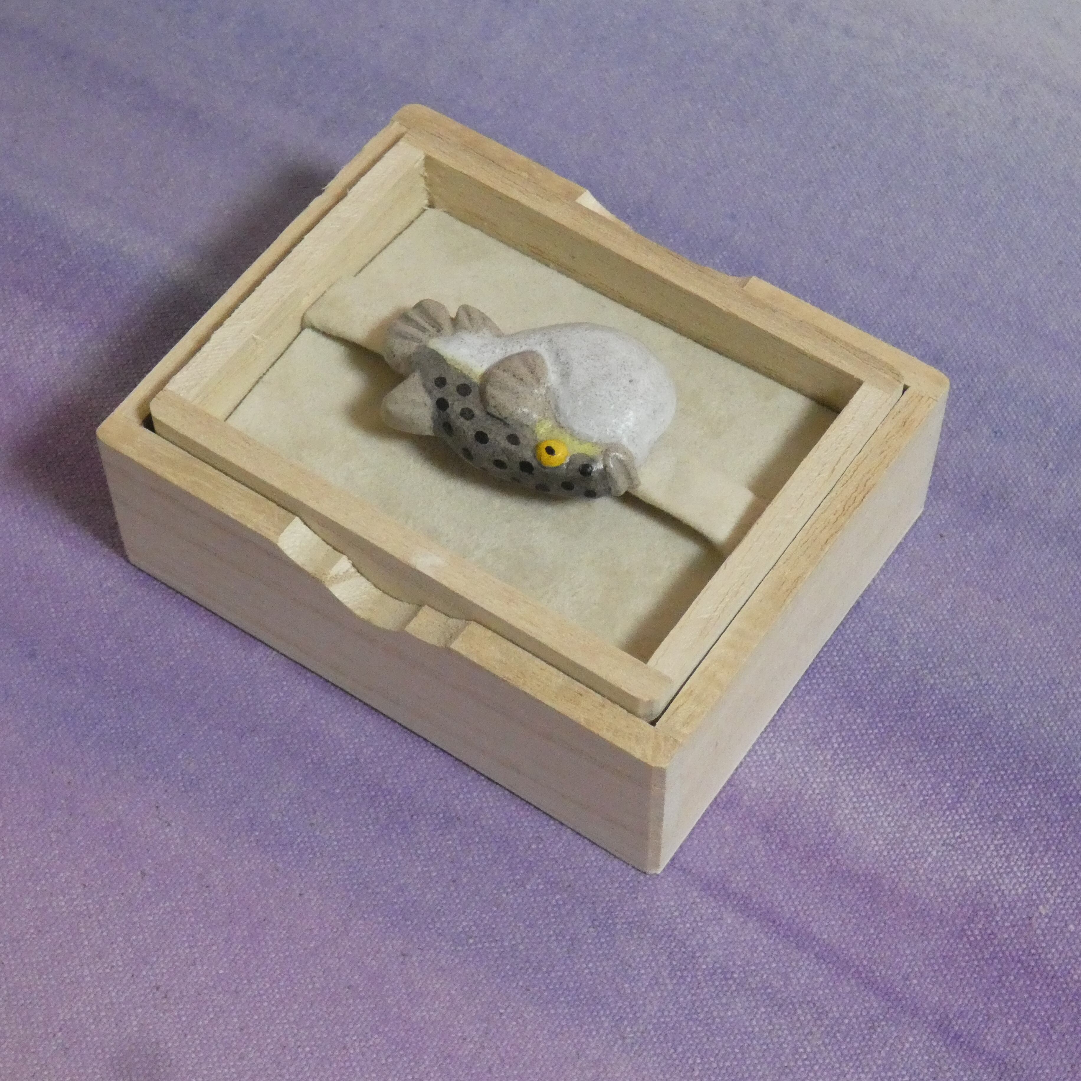 オーブン陶土で作った【フグ(とらふぐ)の帯留めとブローチ】です。