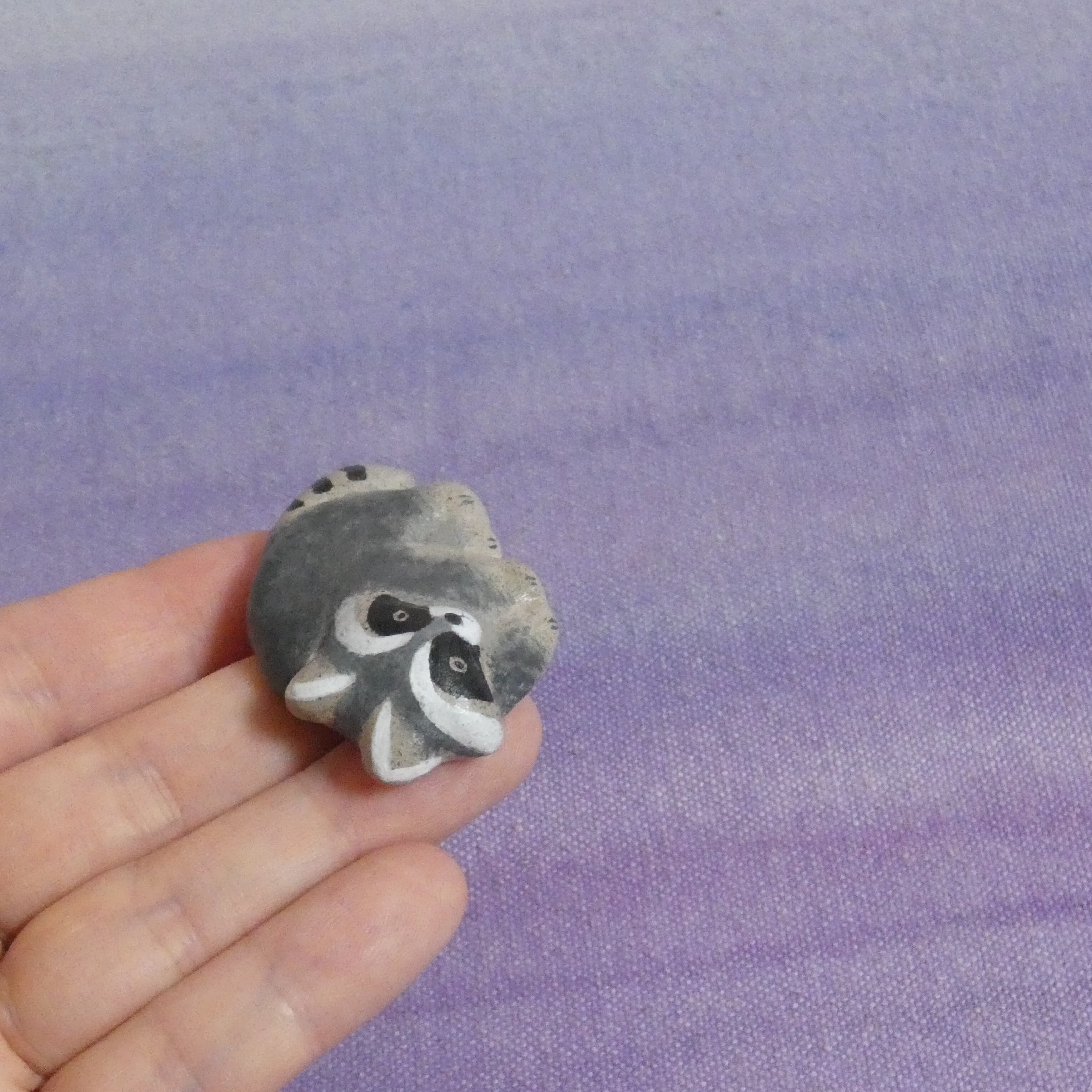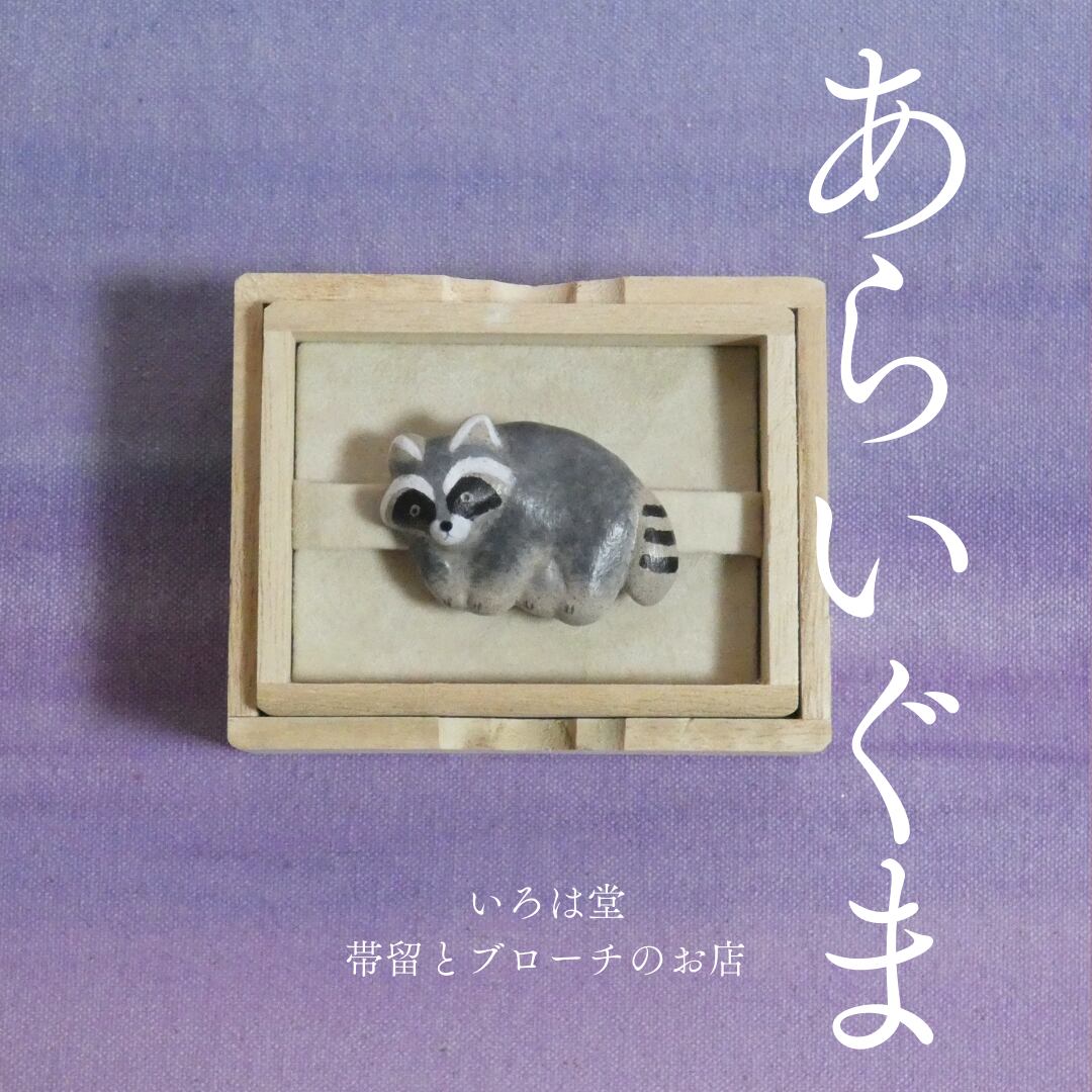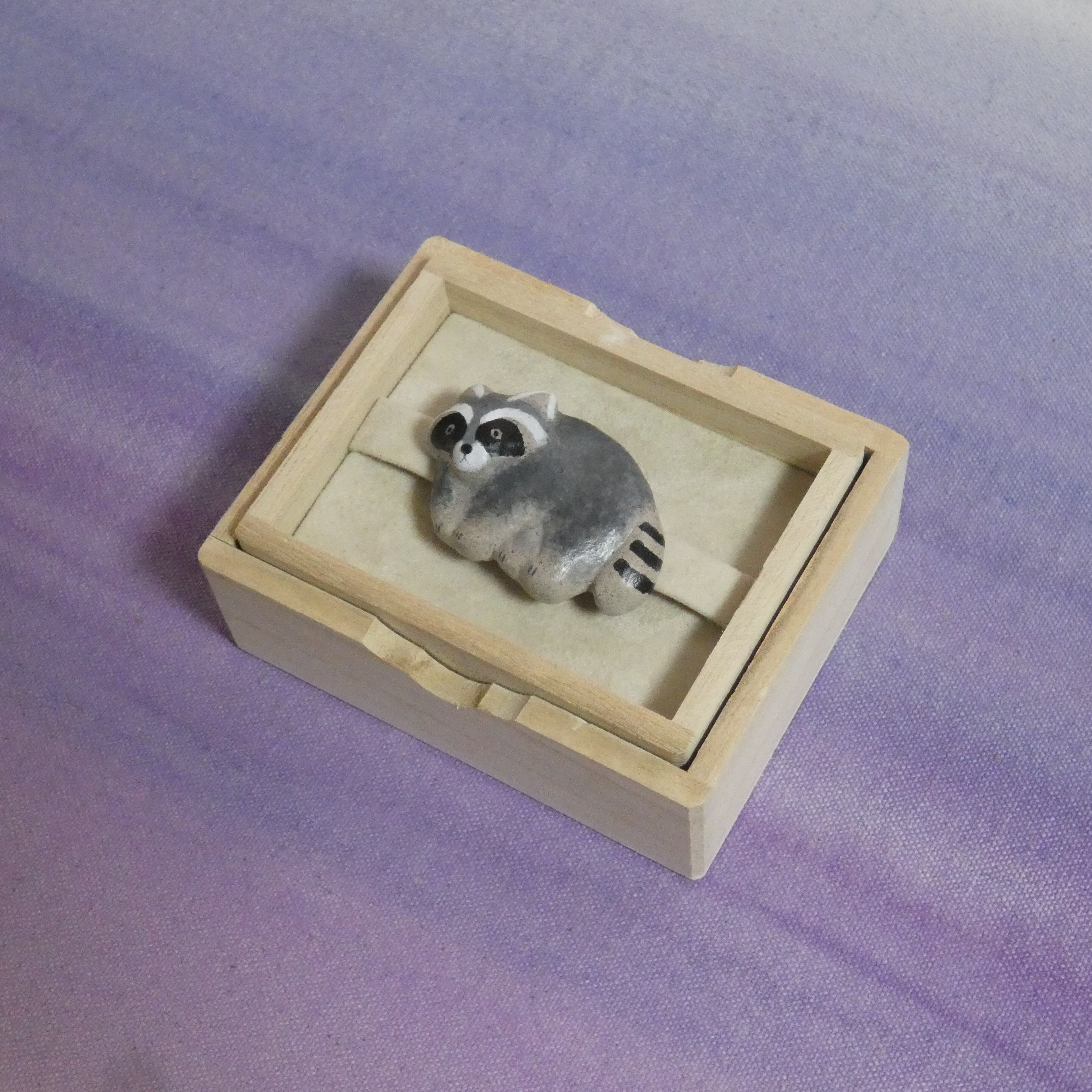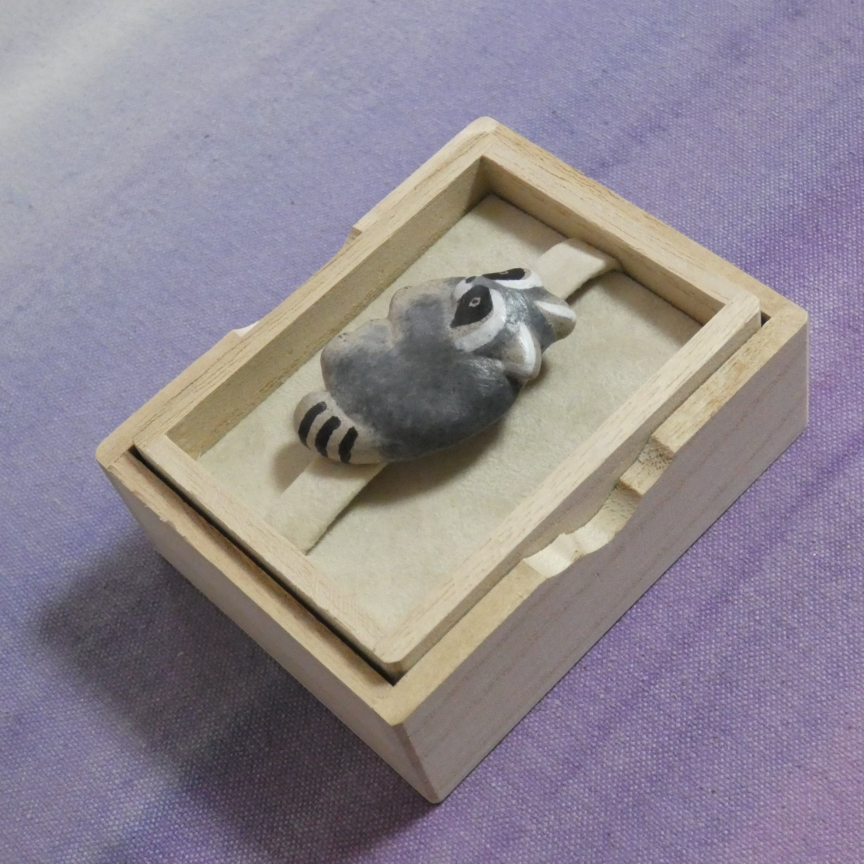 オーブン陶土で作った【アライグマ】の帯留めとブローチです。