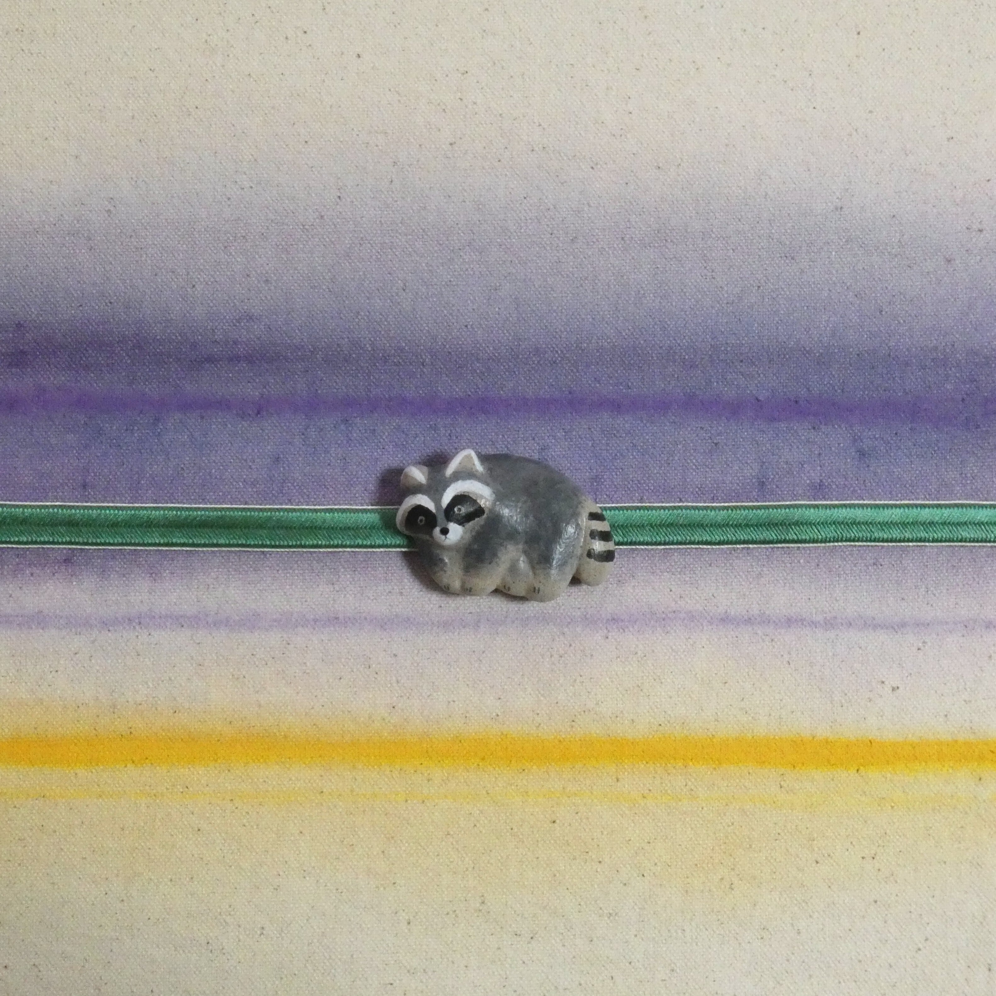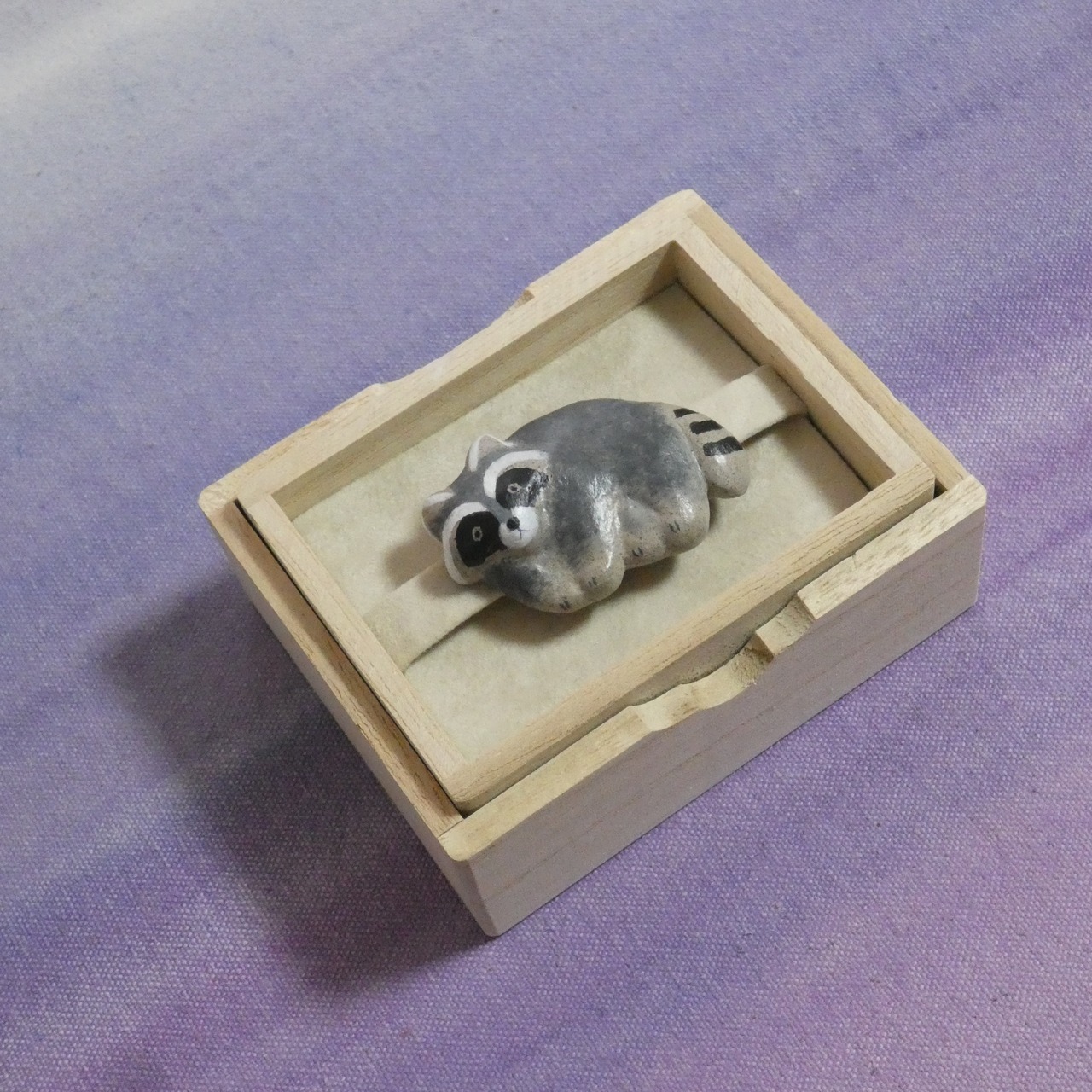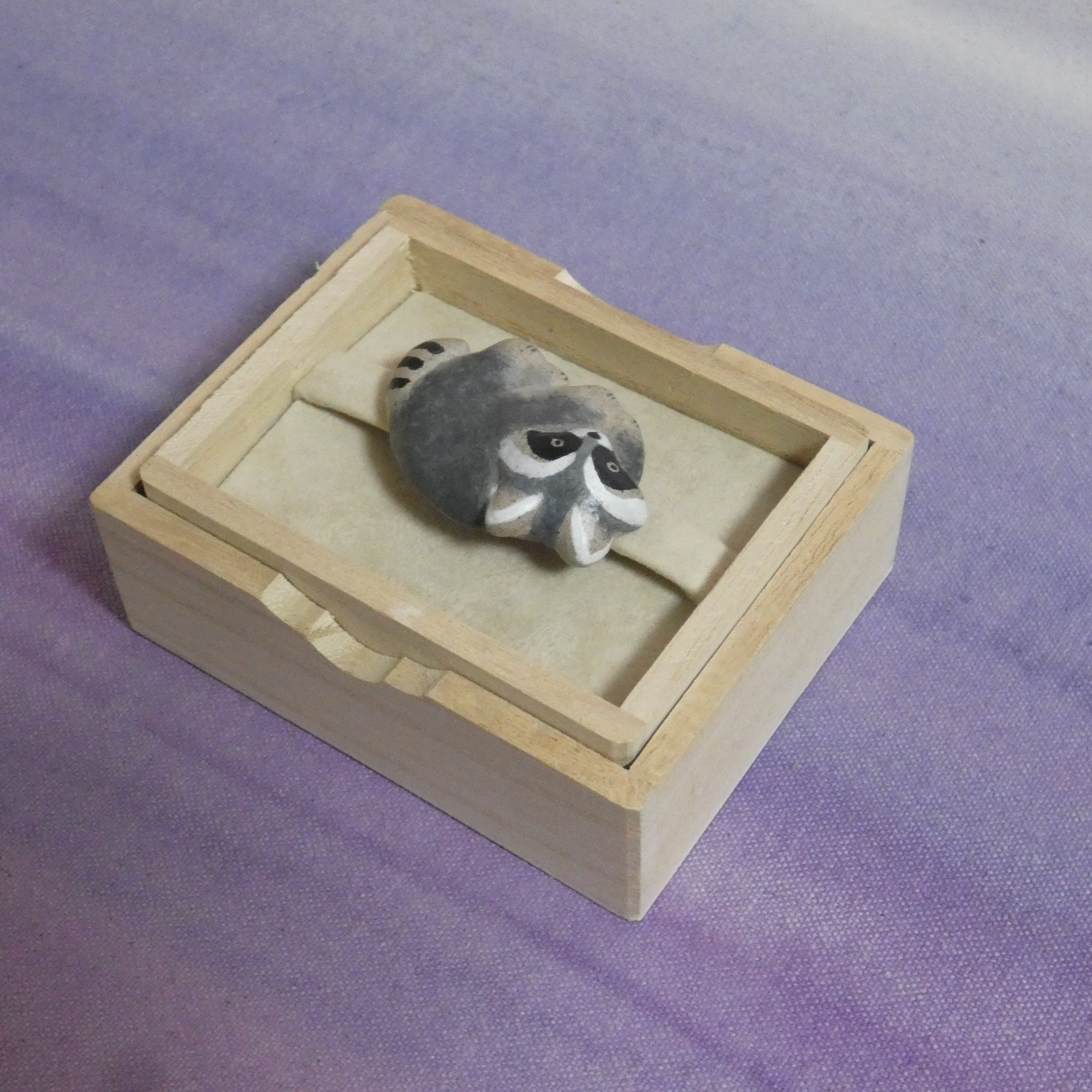 オーブン陶土で作った【アライグマ】の帯留めとブローチです。