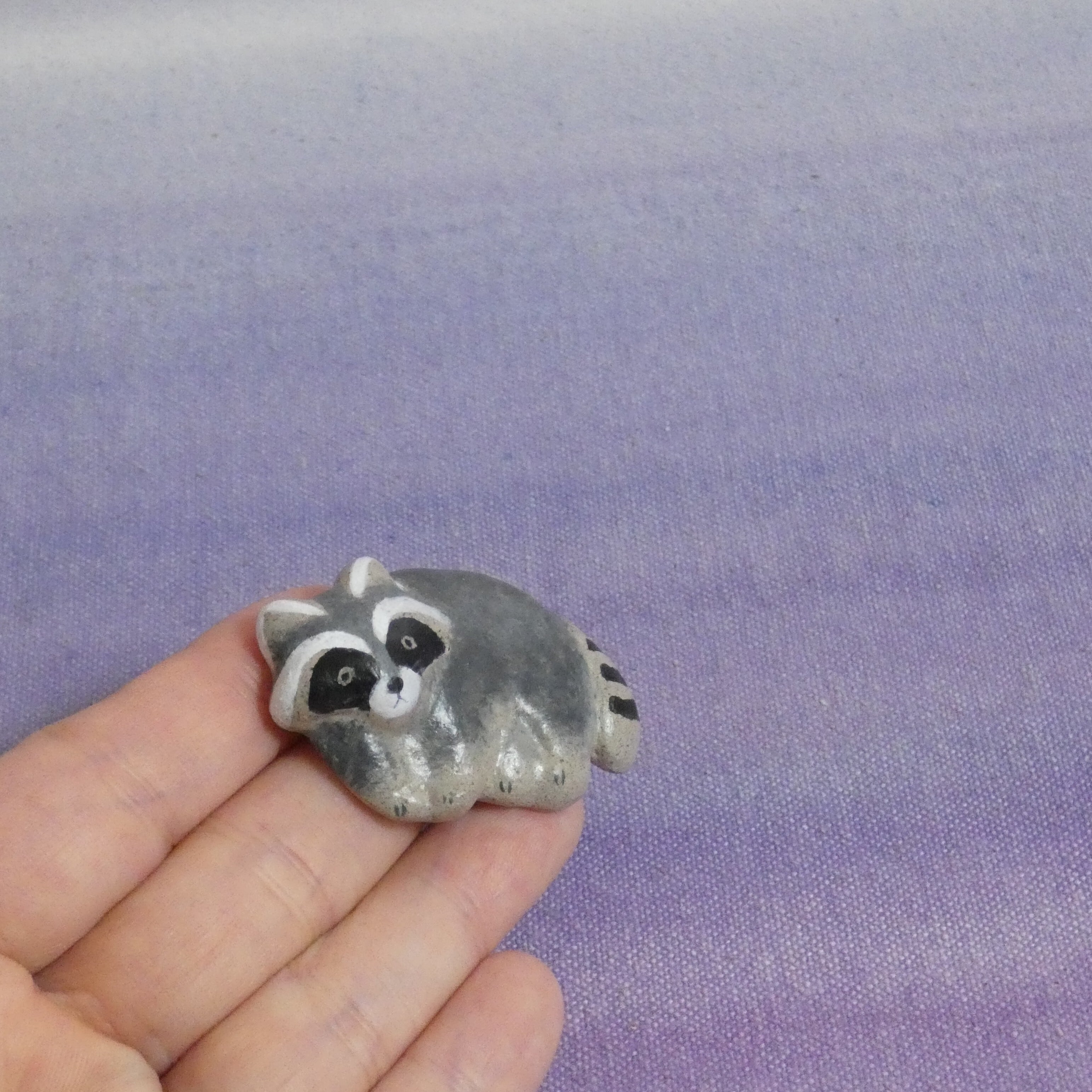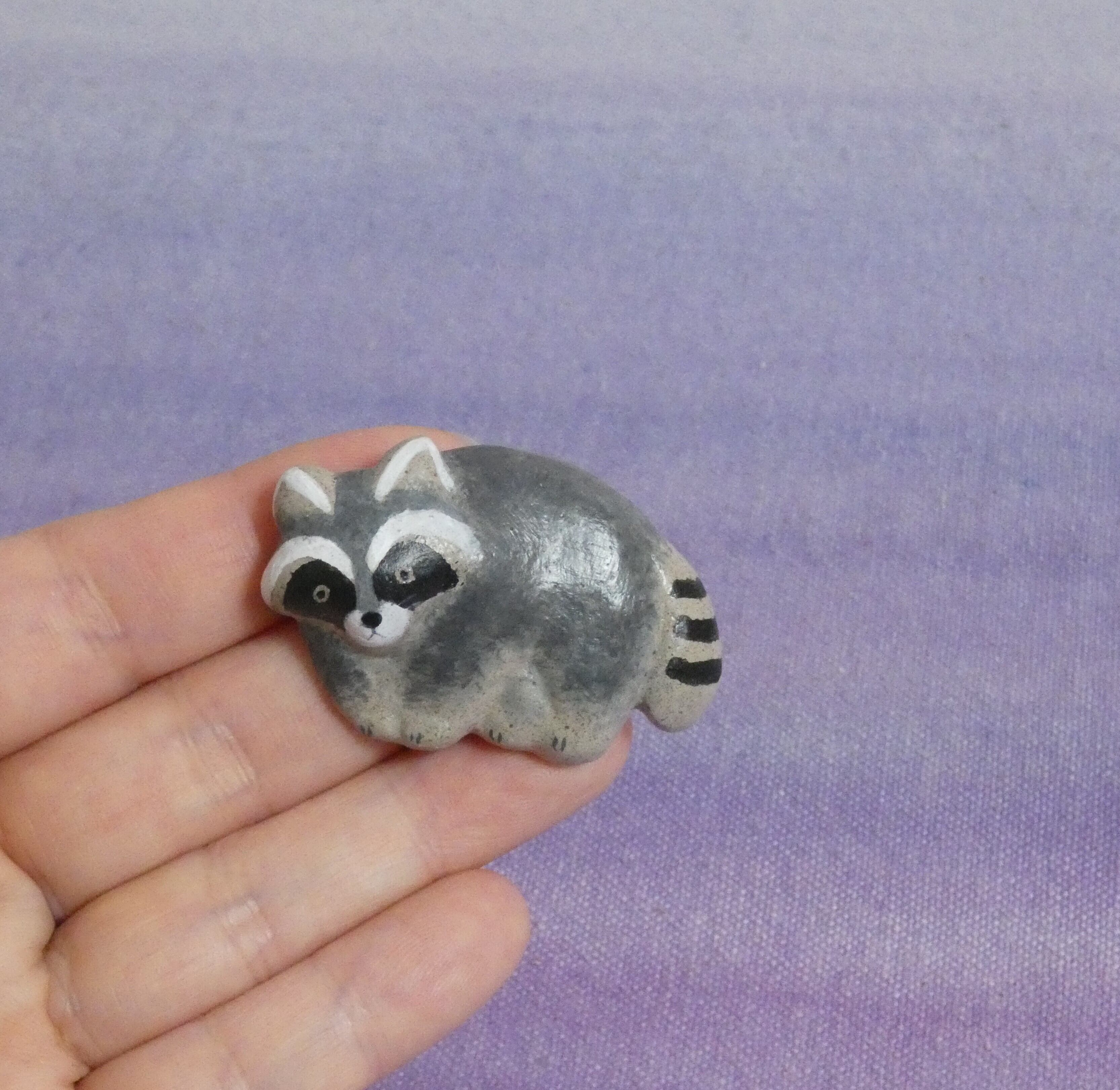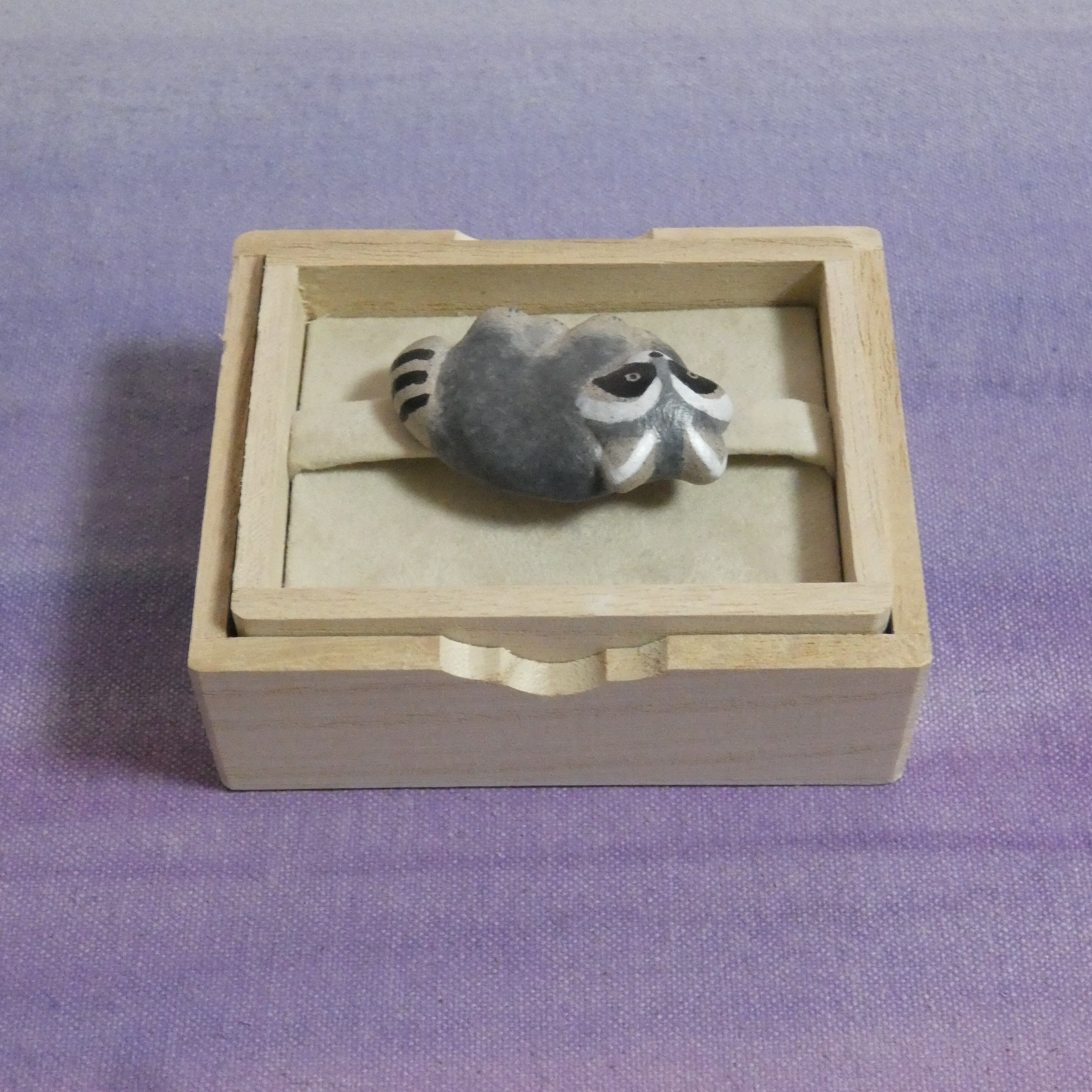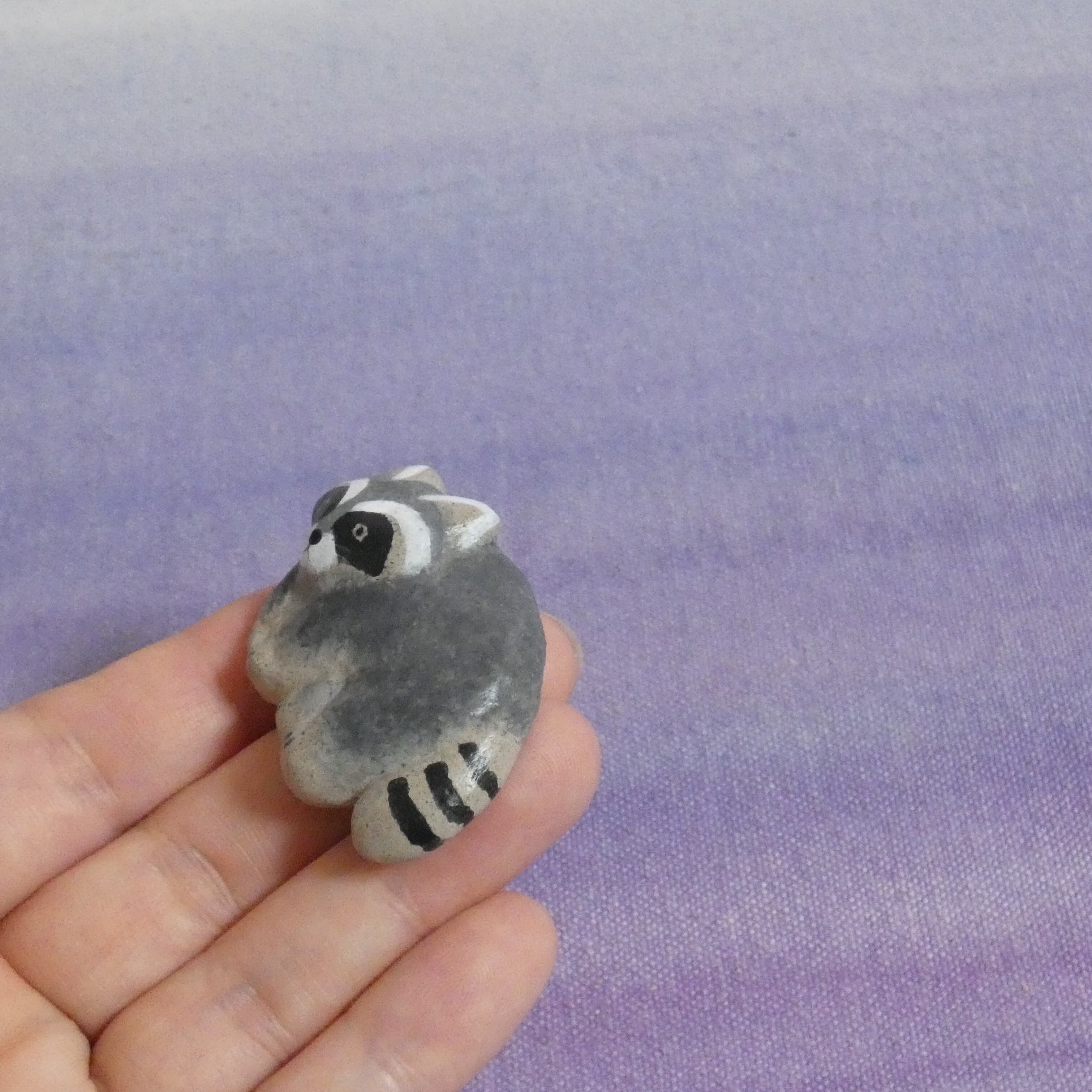 オーブン陶土で作った【アライグマ】の帯留めとブローチです。