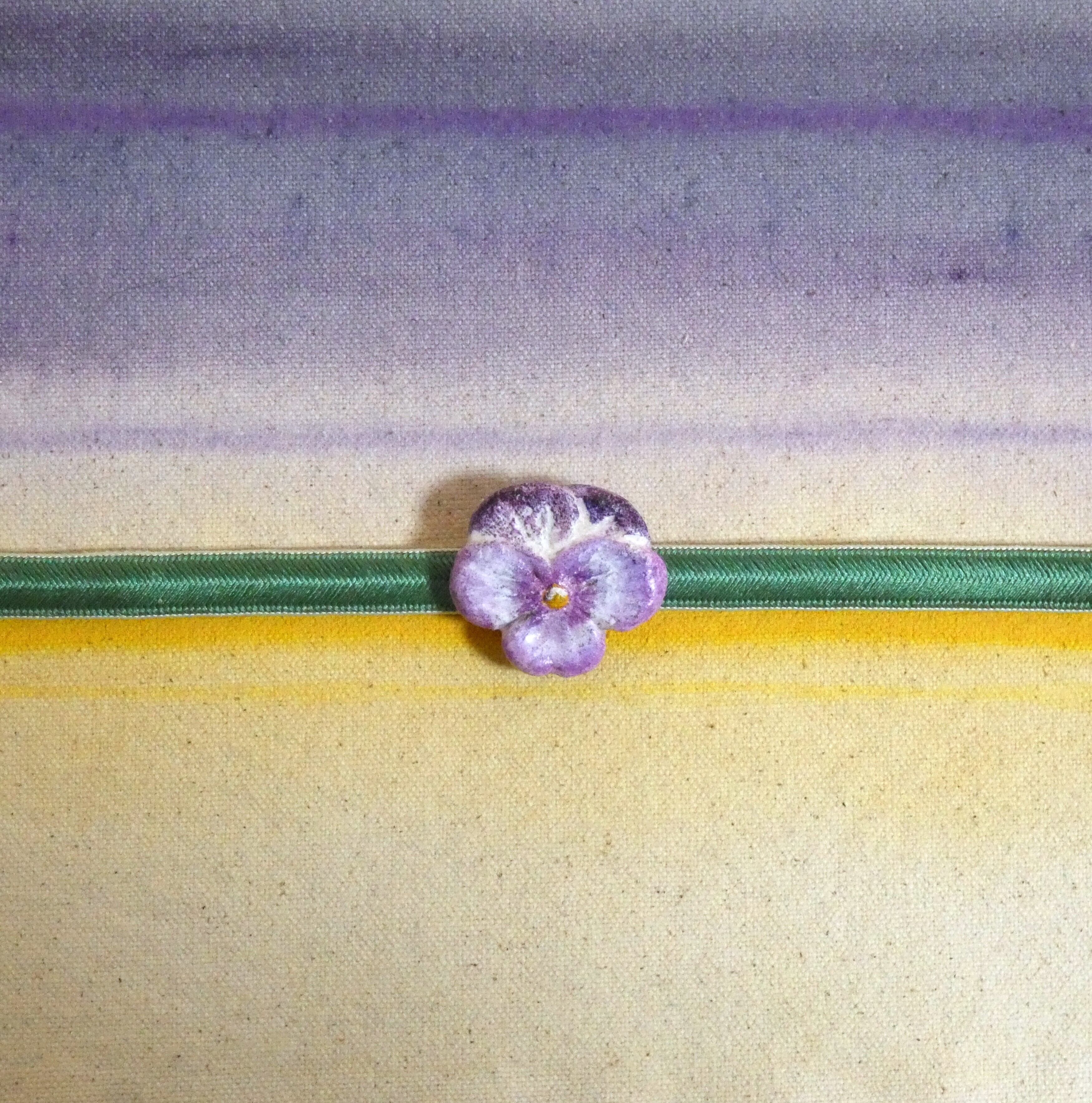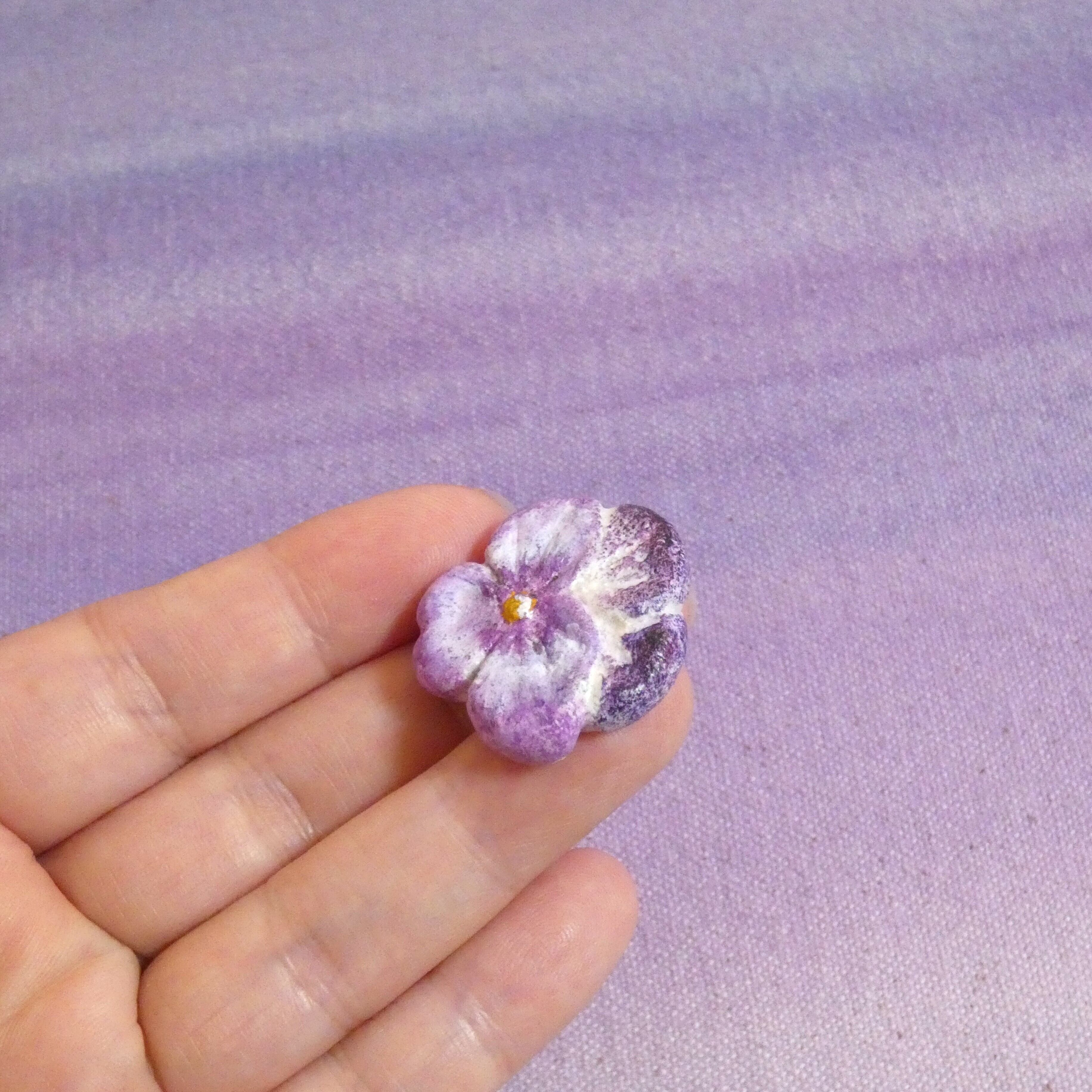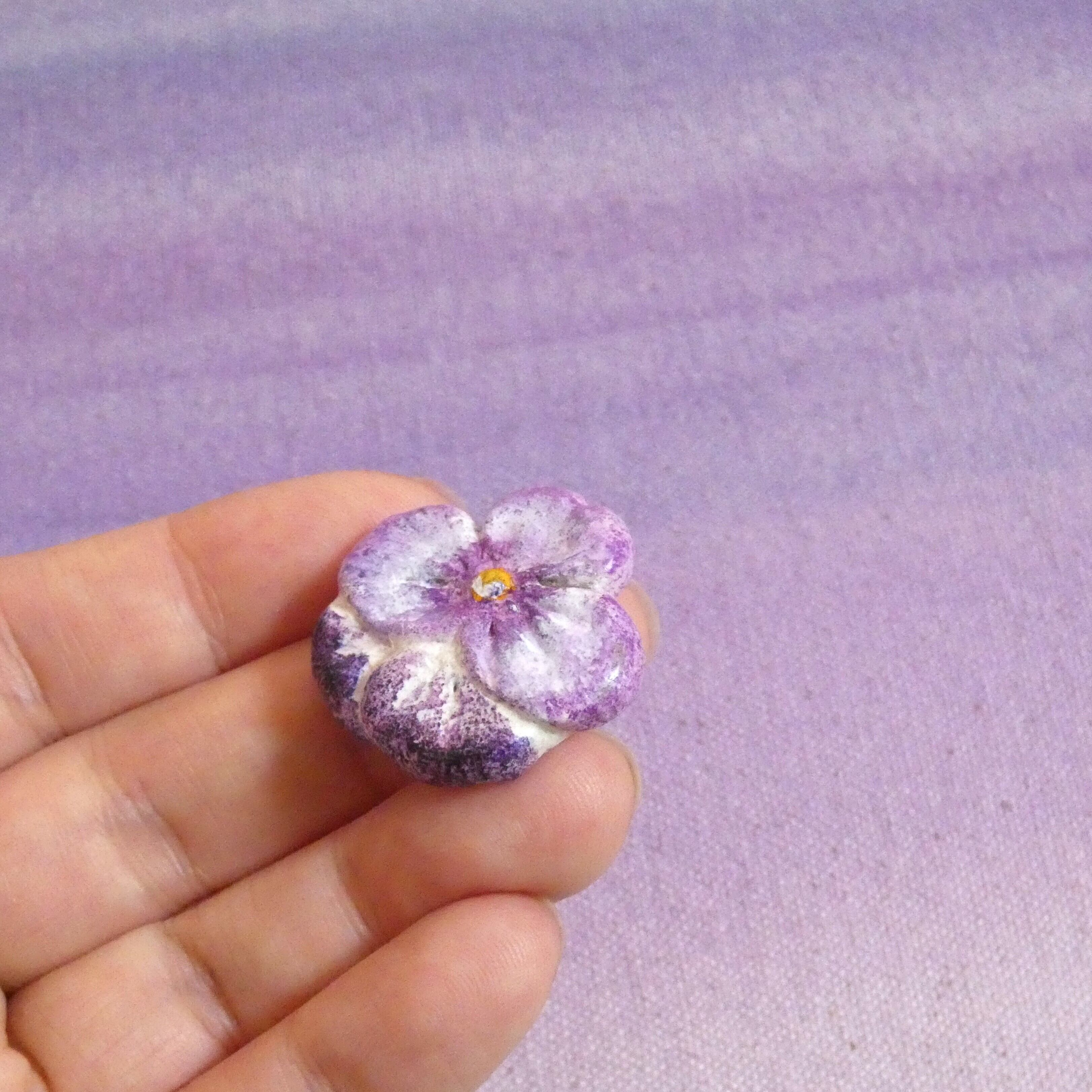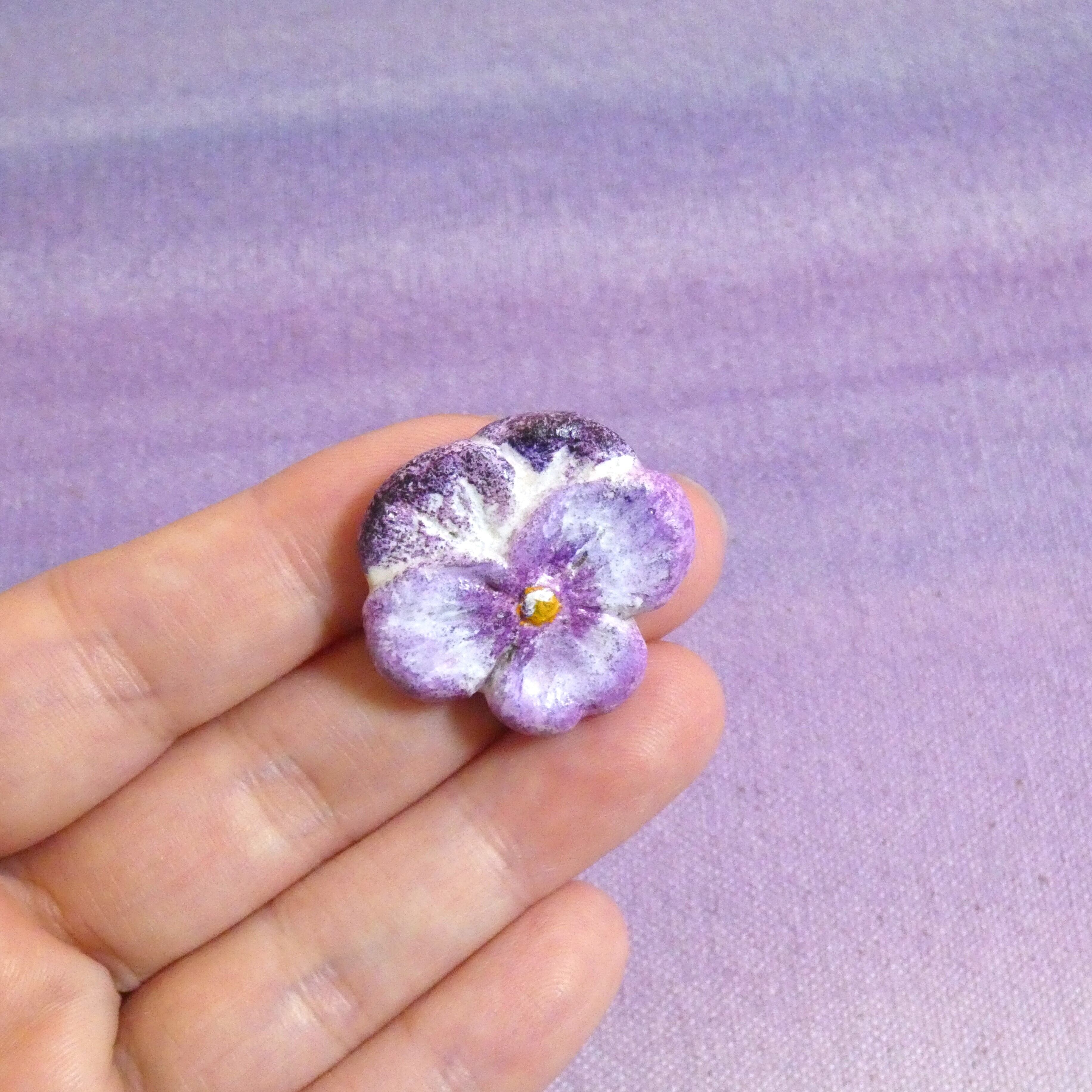 オーブン陶土で作った【パンジーの帯留めとブローチ】です。