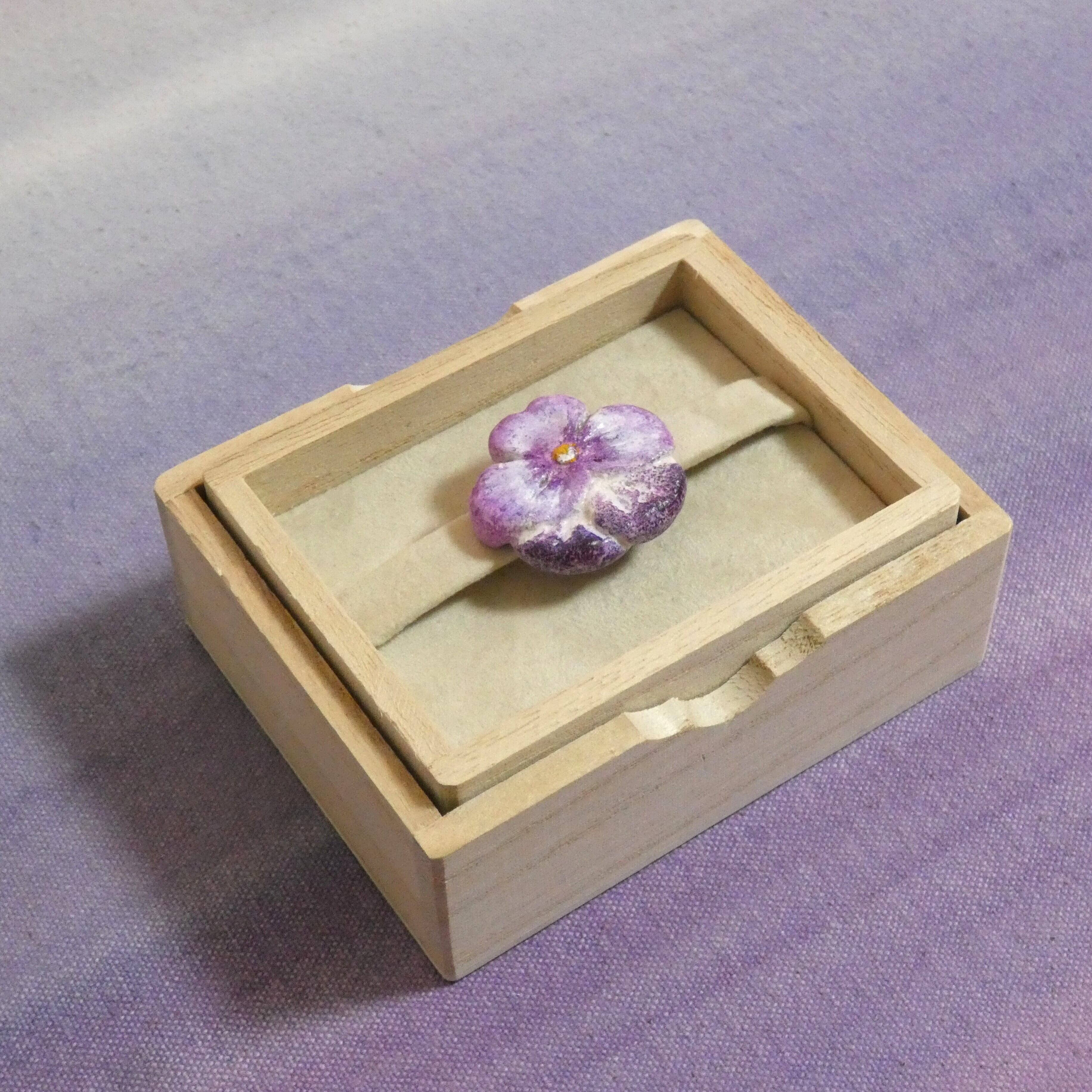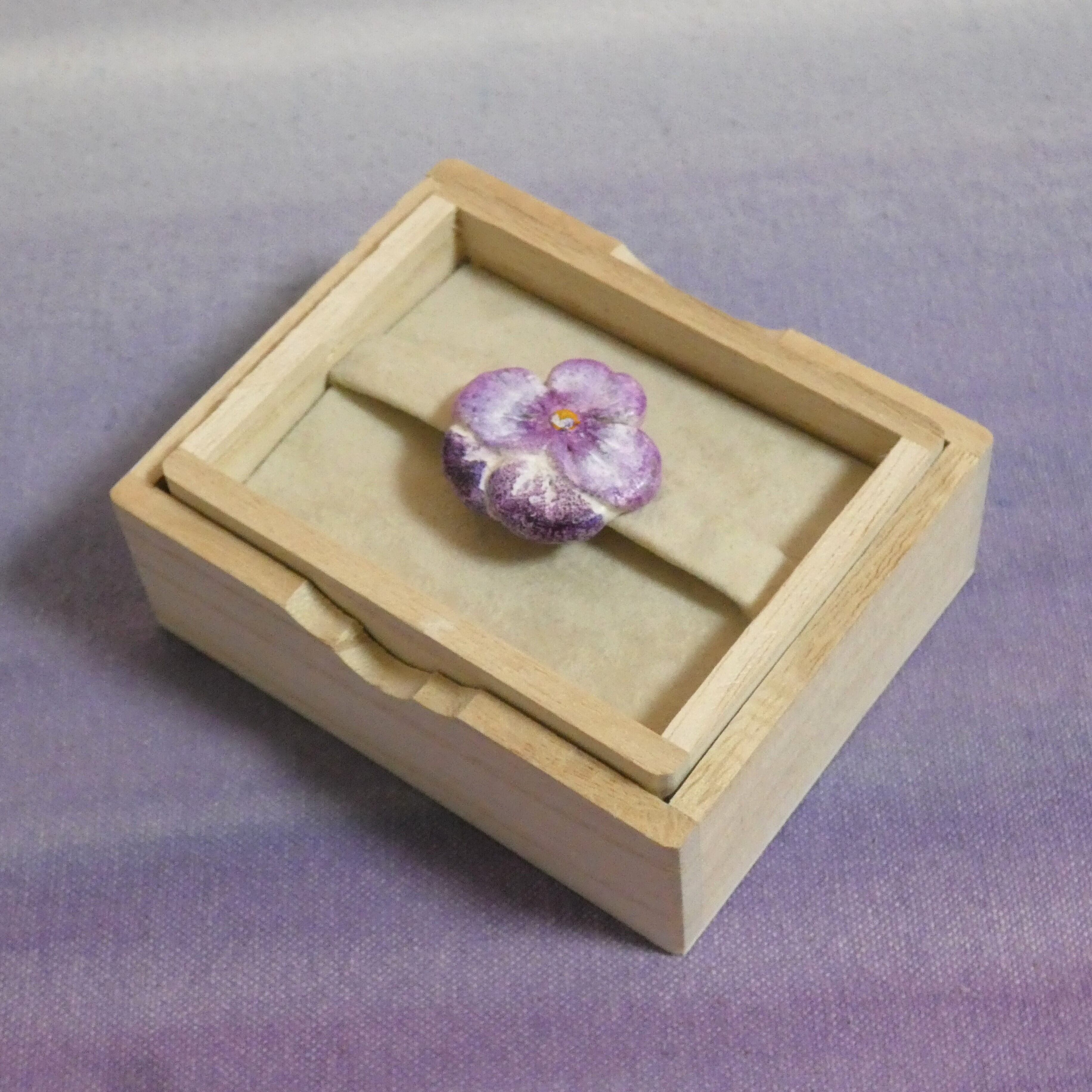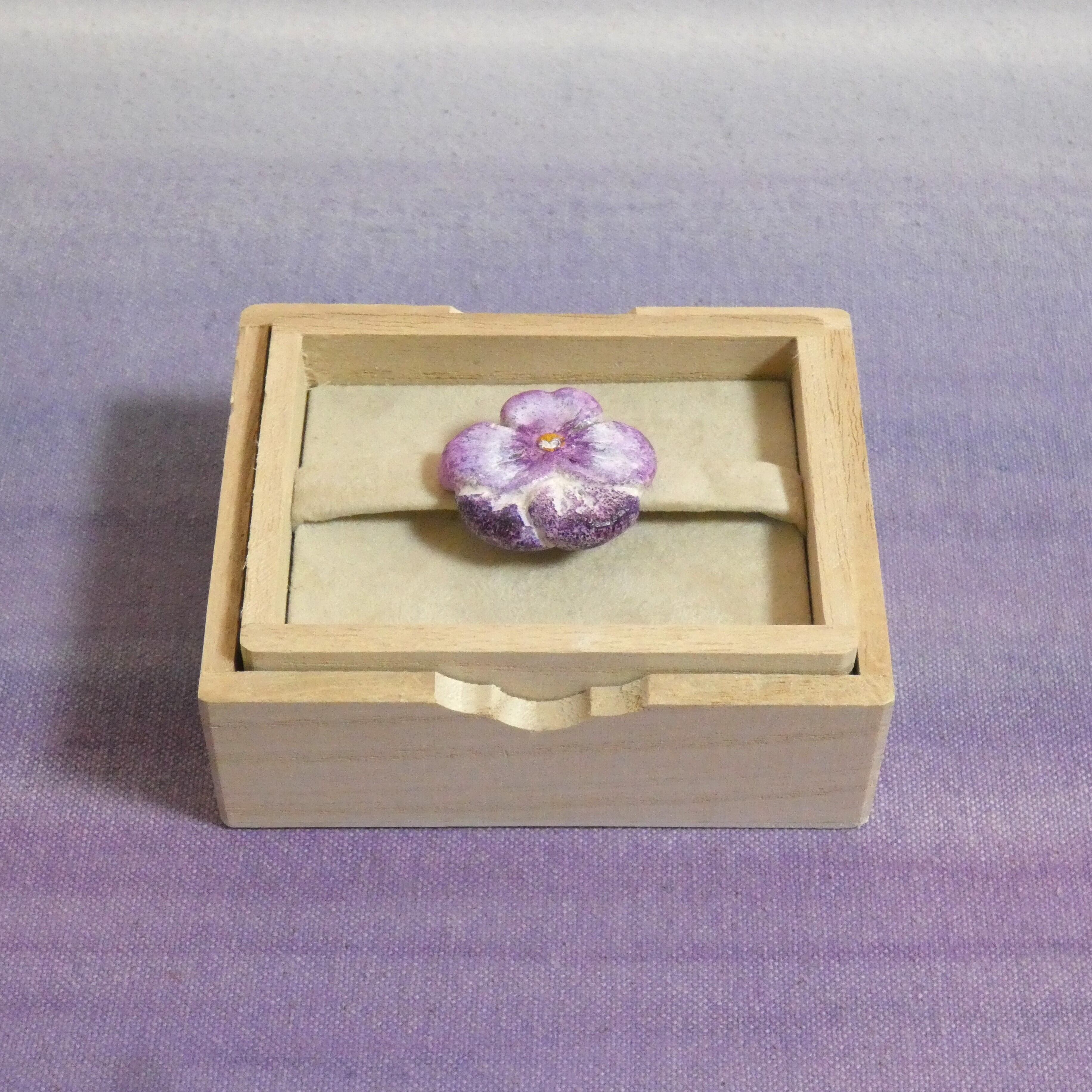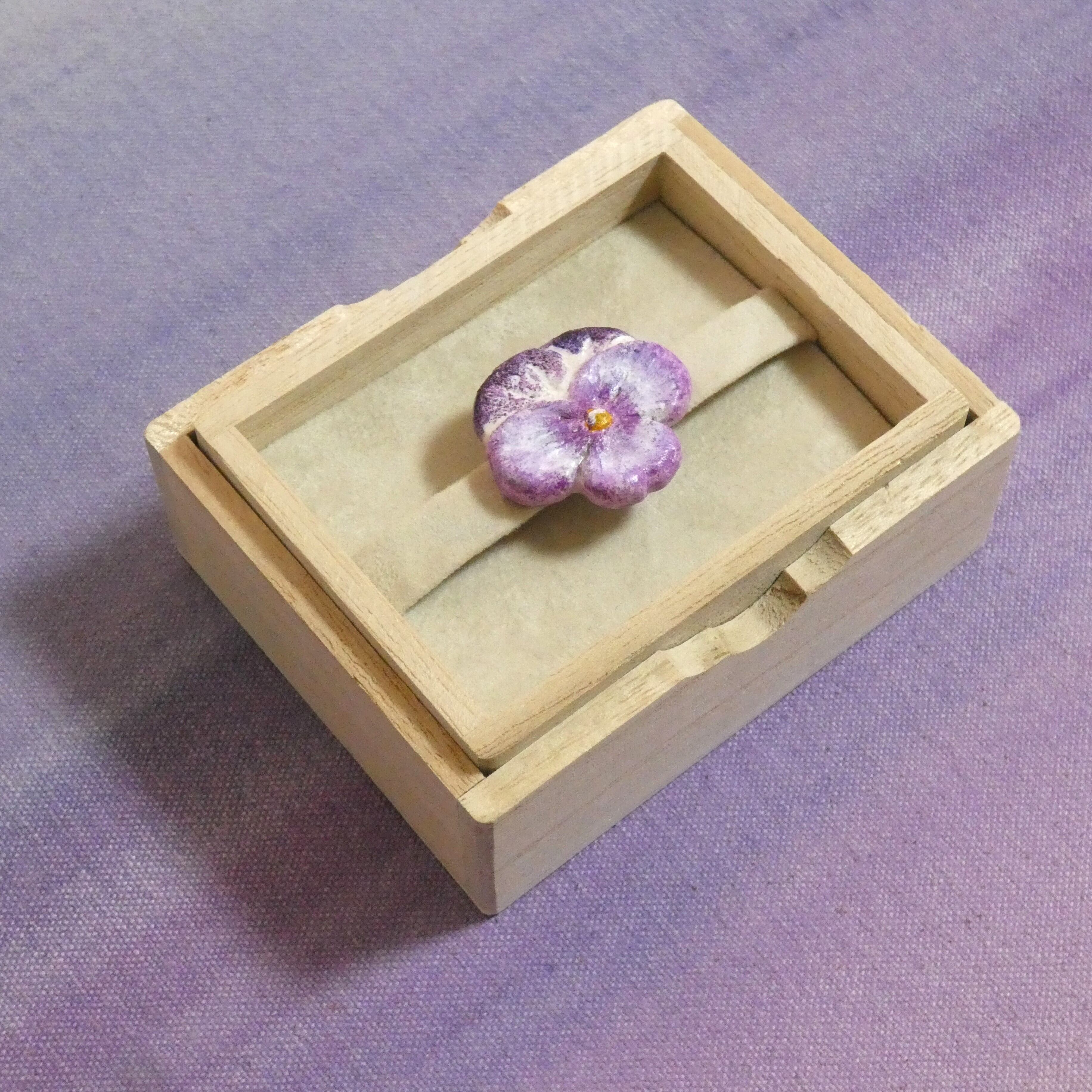 オーブン陶土で作った【パンジーの帯留めとブローチ】です。