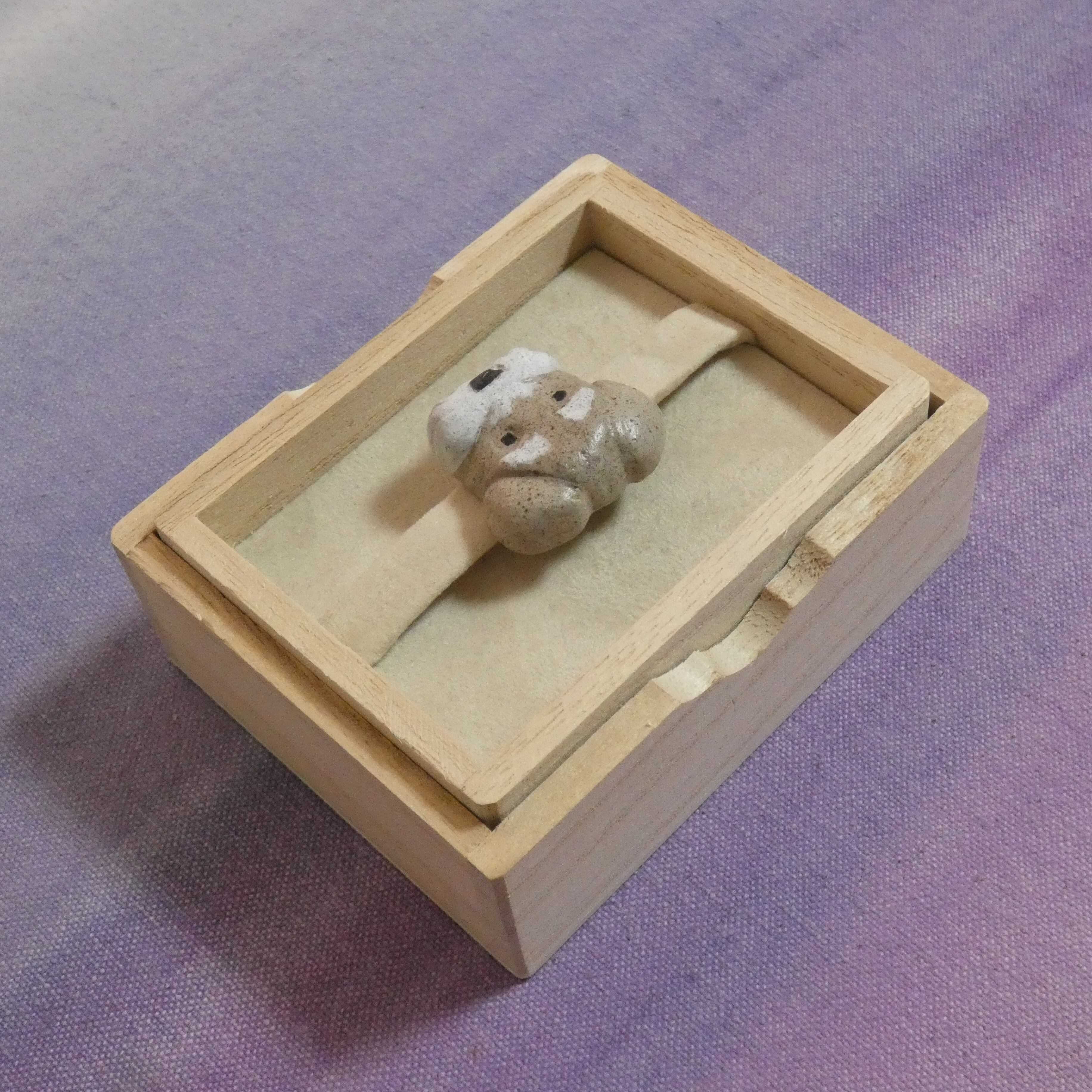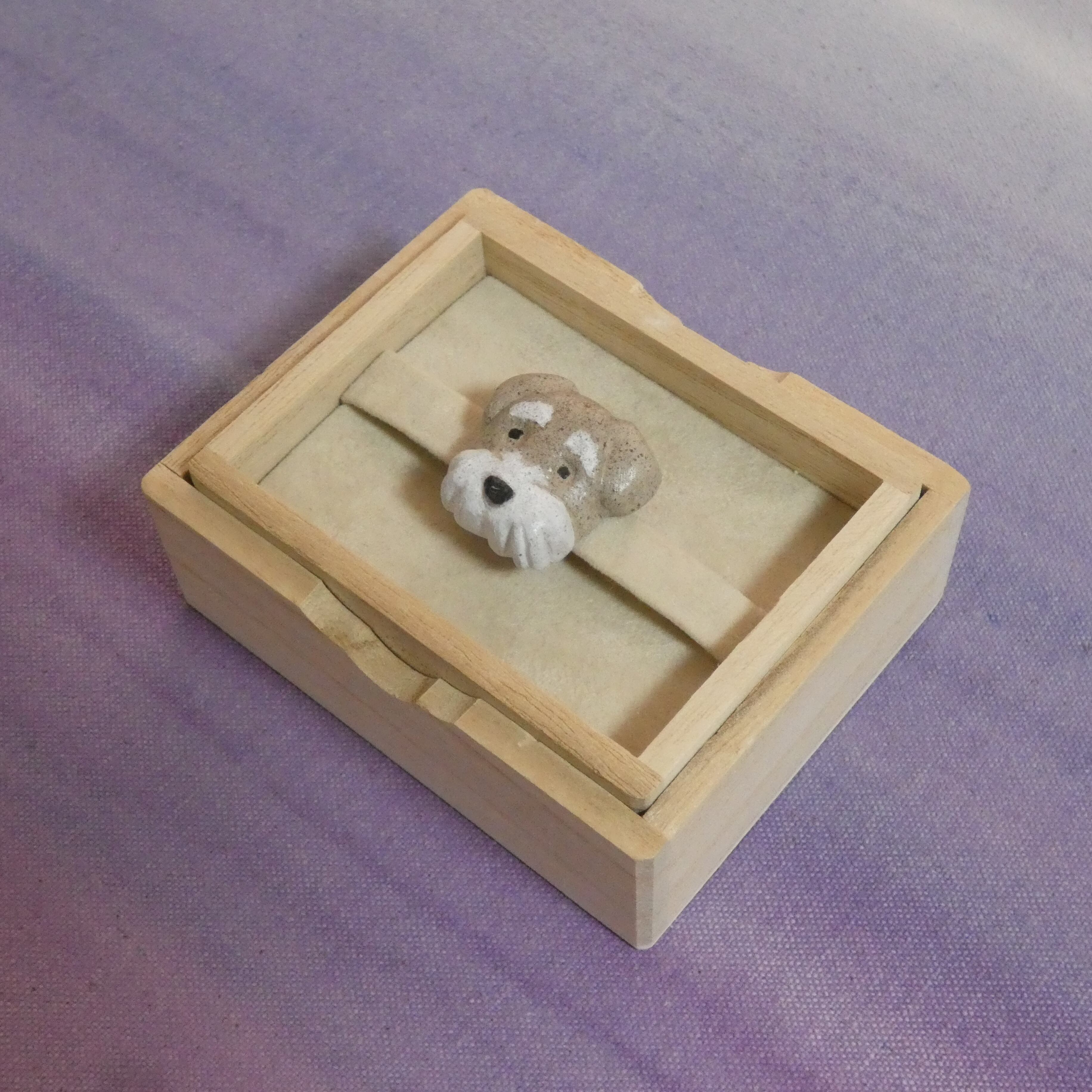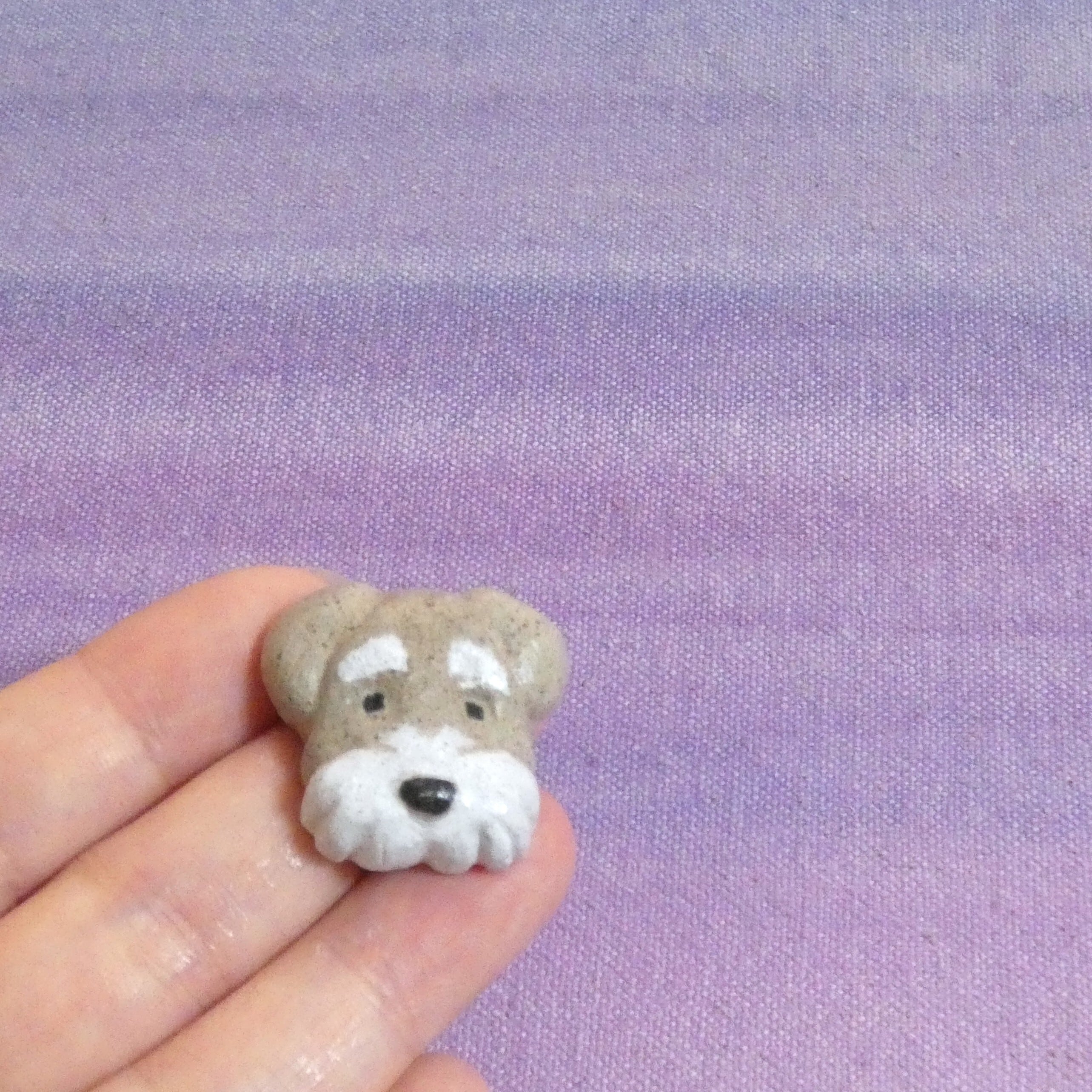 オーブン陶土で作った【犬(ミニチュアシュナウザー)の帯留めとブローチ】です。