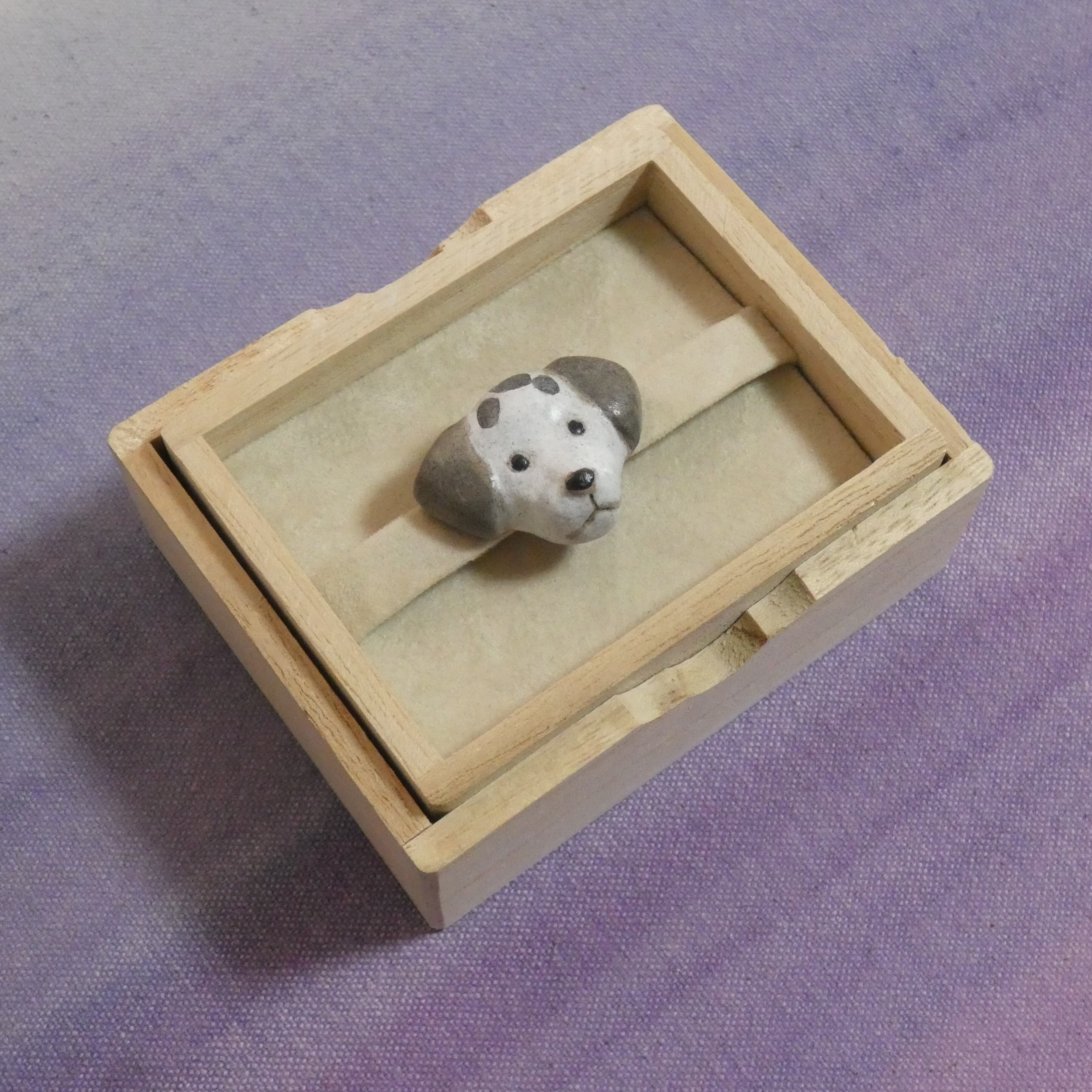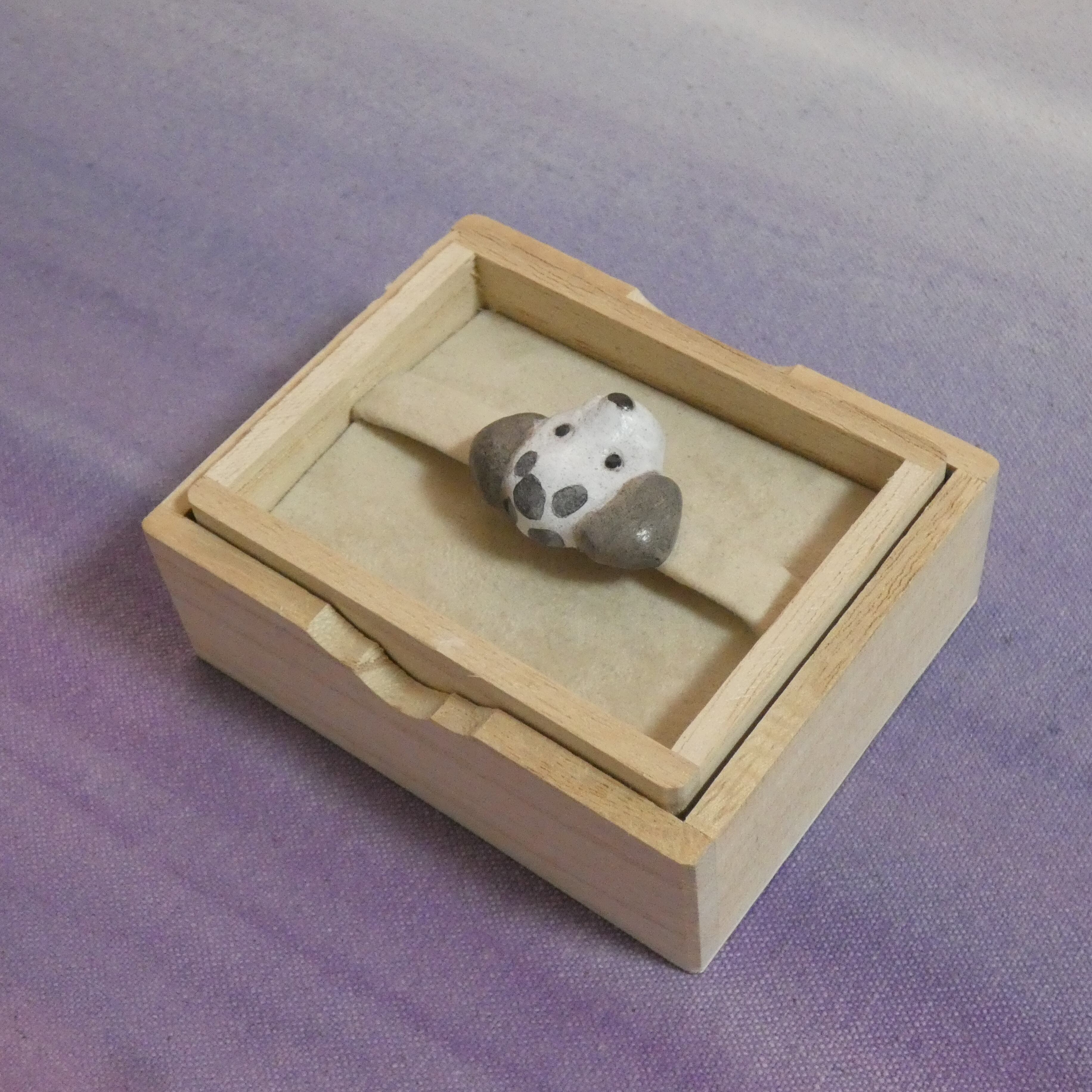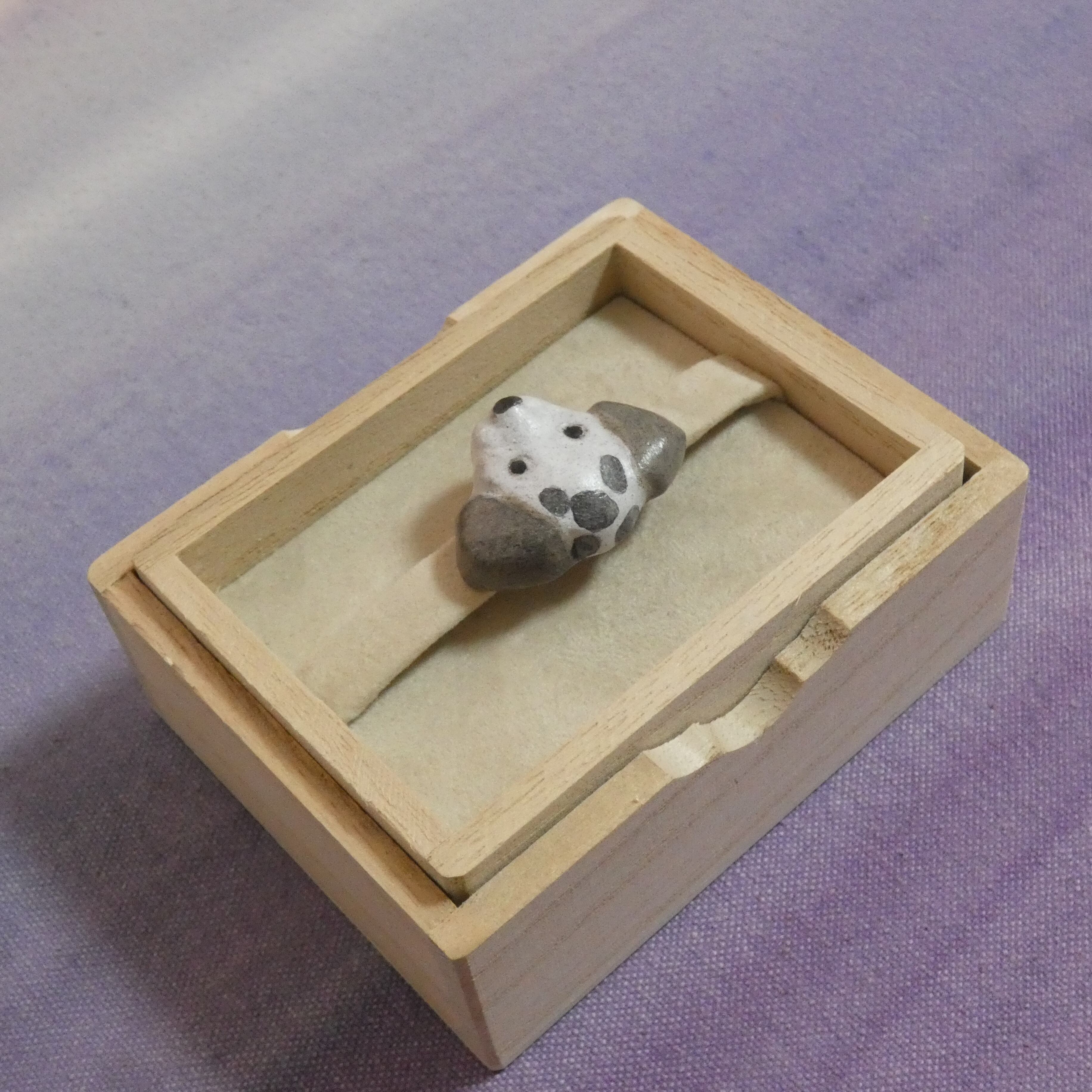 オーブン陶土で作った【犬(ダルメシアン)の帯留めとブローチ】です。